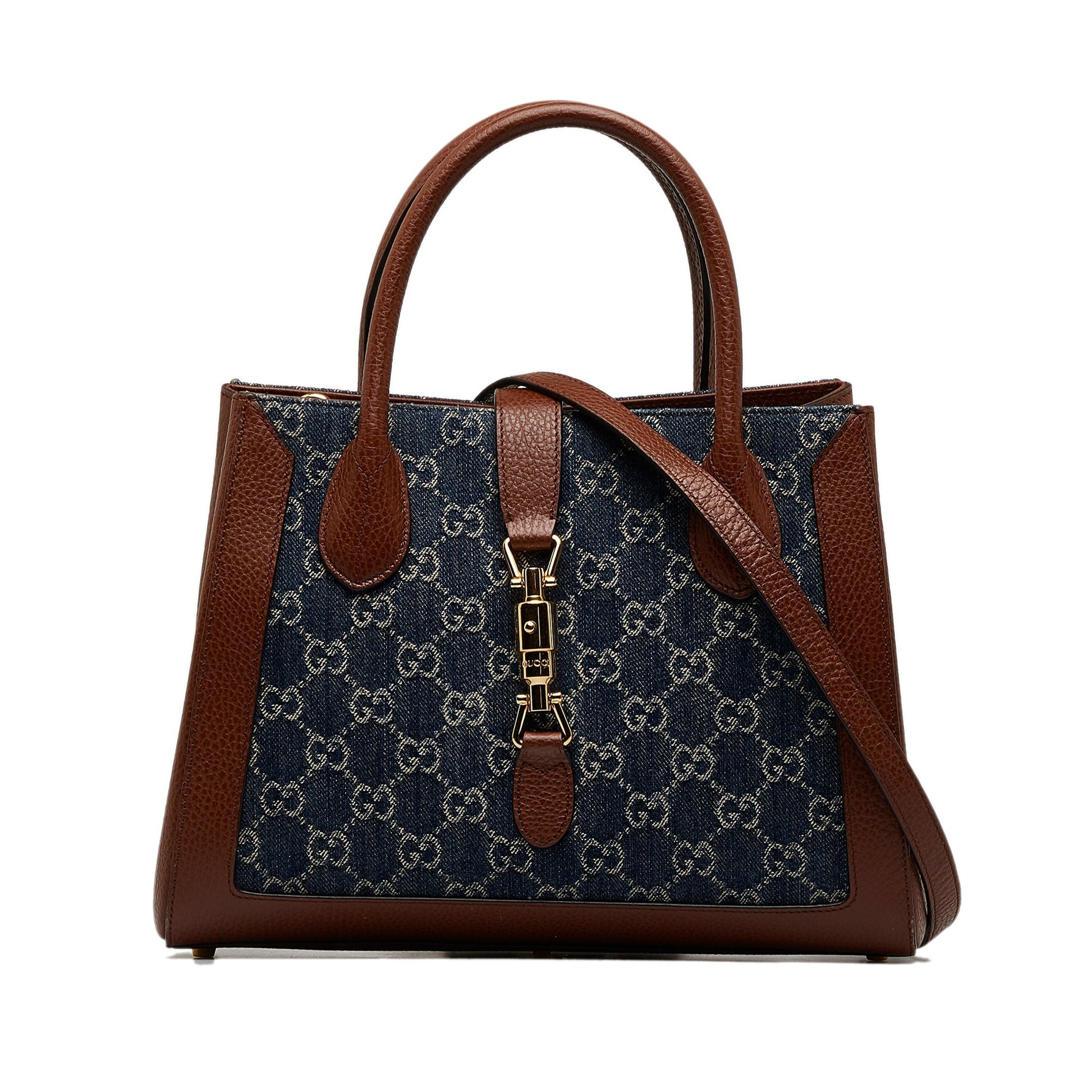 Blue Gucci Medium GG Denim Jackie 1961 Tote Satchel
