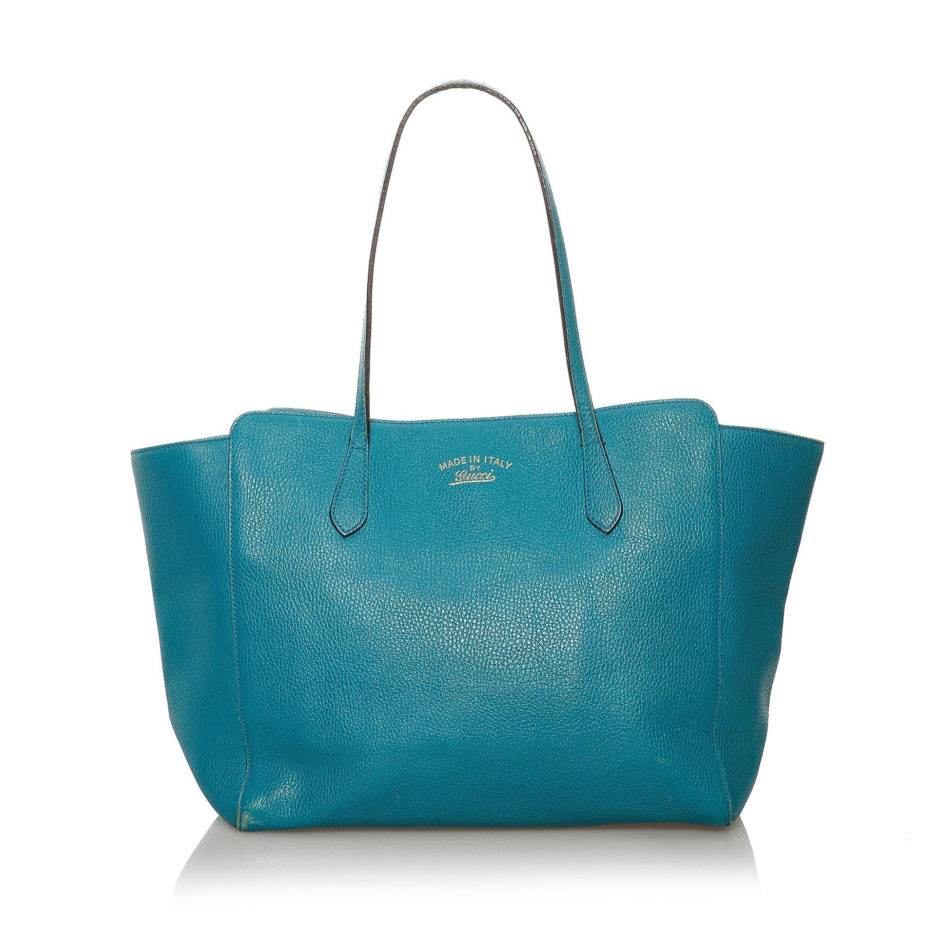 Please note this is a item that may display signs of wear consistent with the condition listed above and shown in photos. Designer Revival this is an Blue Gucci Medium Swing Leather Tote Bag or . Learn more about our ation process.