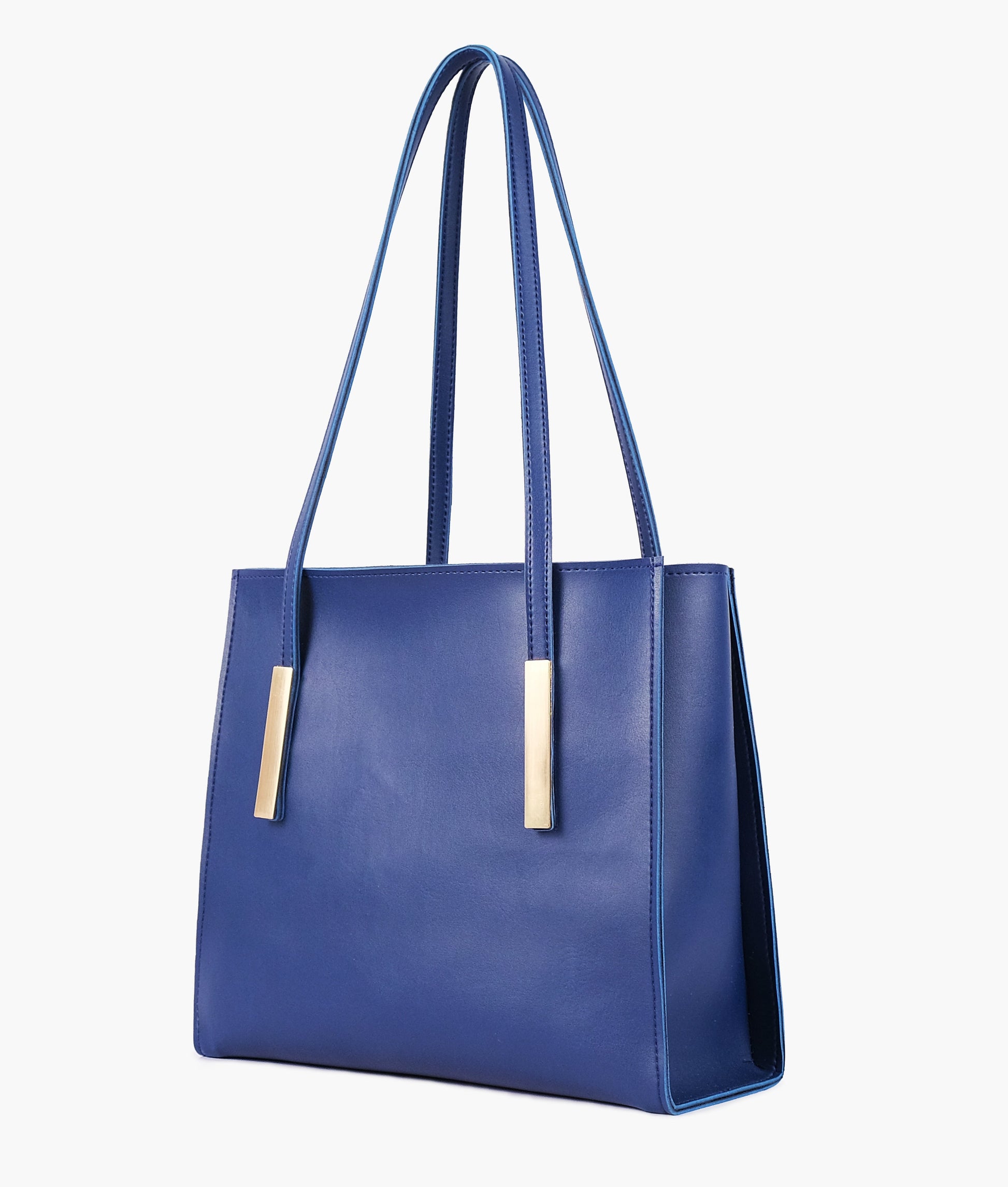 Blue zipper shoulder bag with long handle