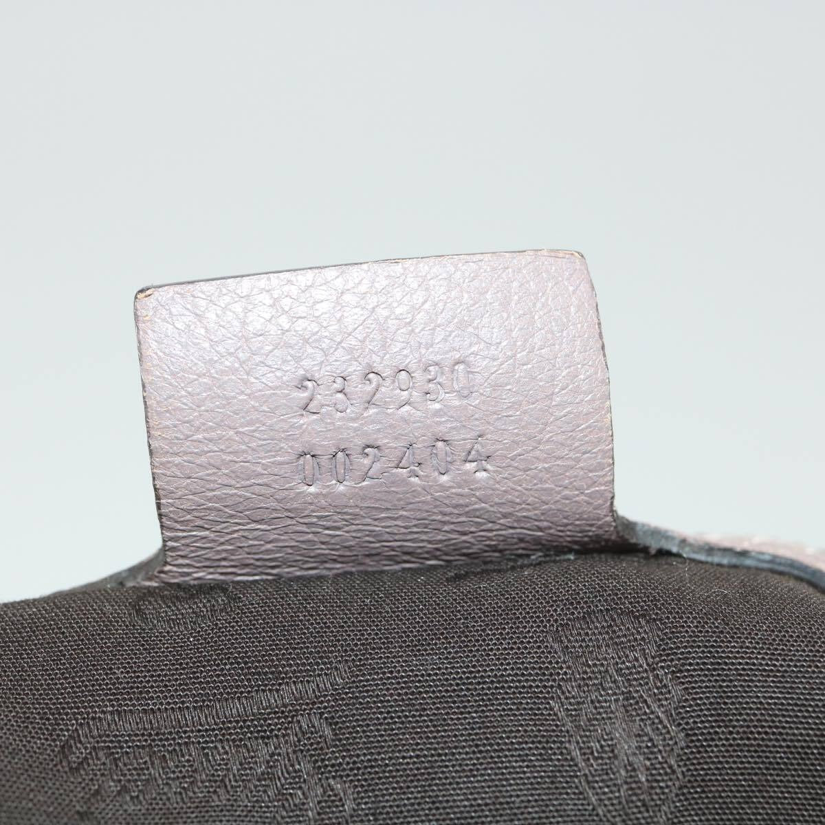 The interior is lined with light matching fabric that is very clean- see pictures. Inside, you will find a back zip pocket and small pouch pocket, plus room for all your belongings and then some! There is an embossed leather tag that reads, 'Gucci, made in italy' on the front and is stamped with the serial #232930 002404