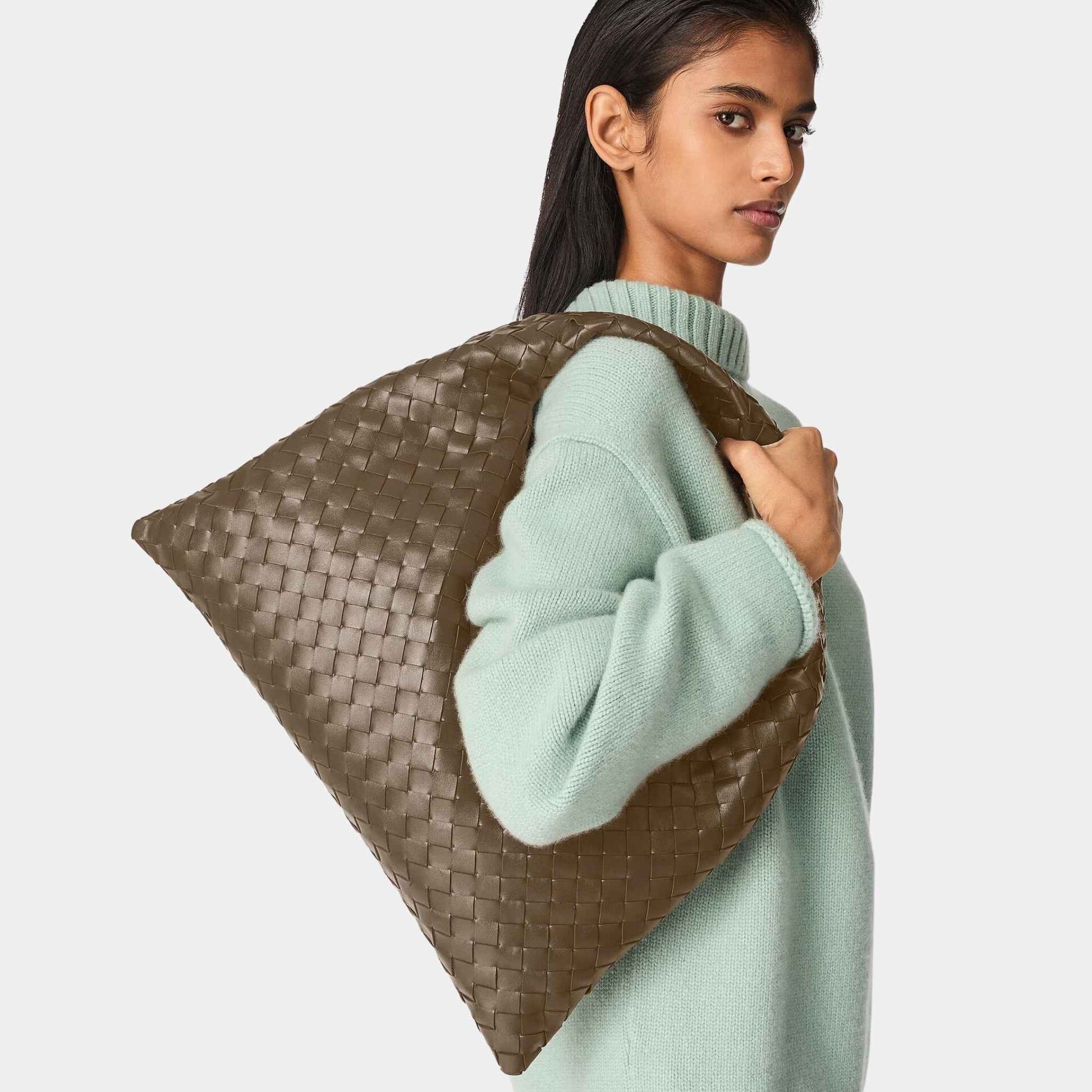 Signature Intrecciato Leather – Handwoven calfskin for a soft, supple, and luxurious finish