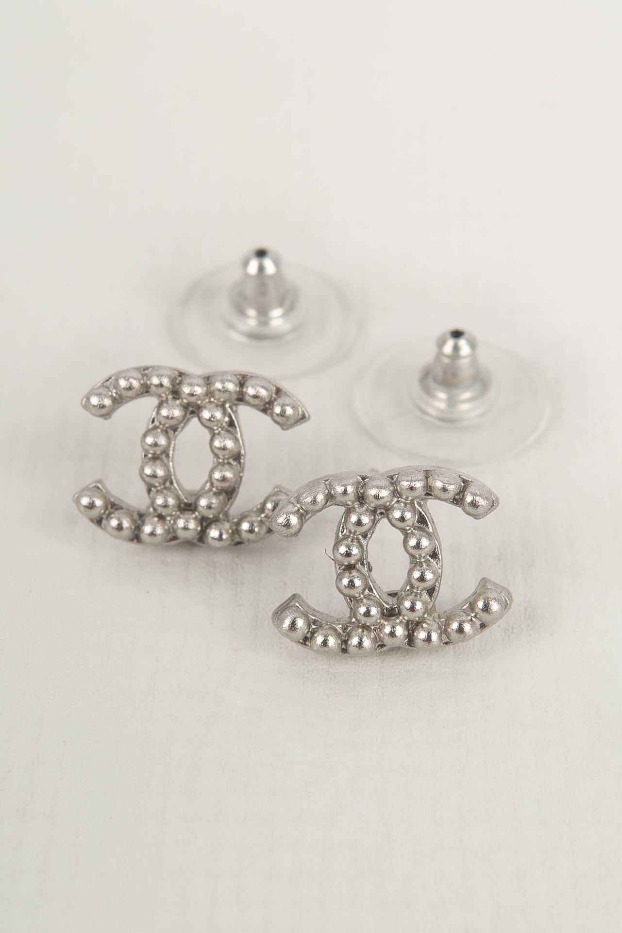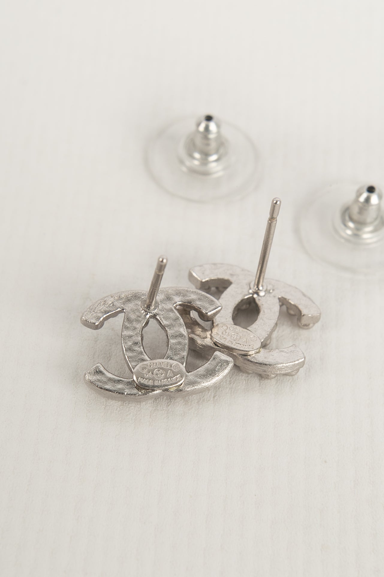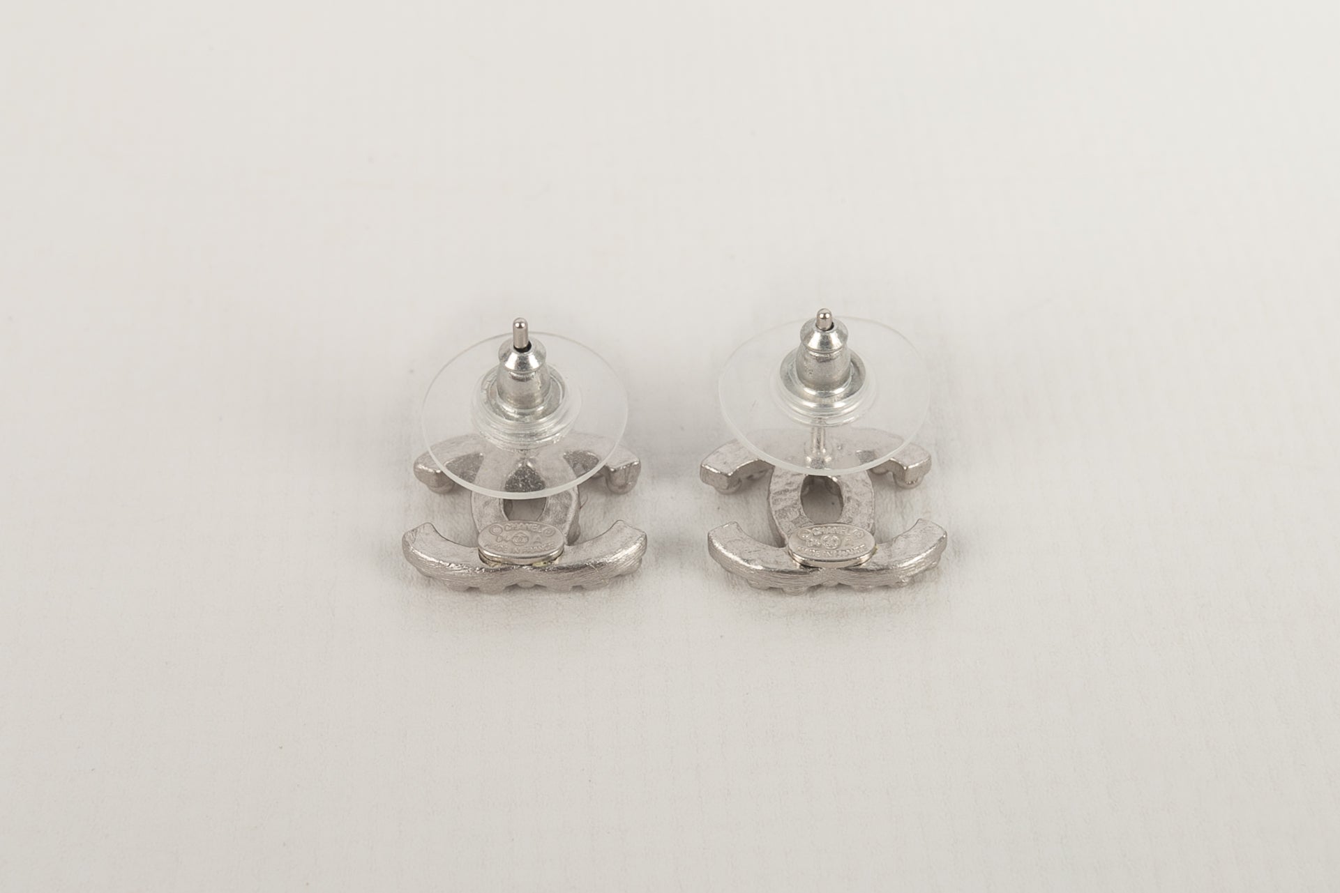 CHANEL - (Made in France) Boucles d'oreilles cc en métal argenté. Collection Automne-Hiver 2004.