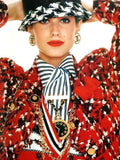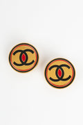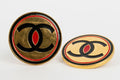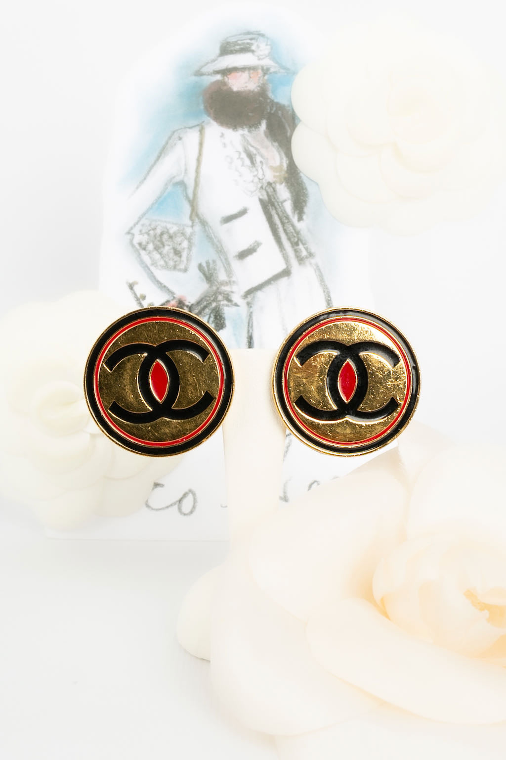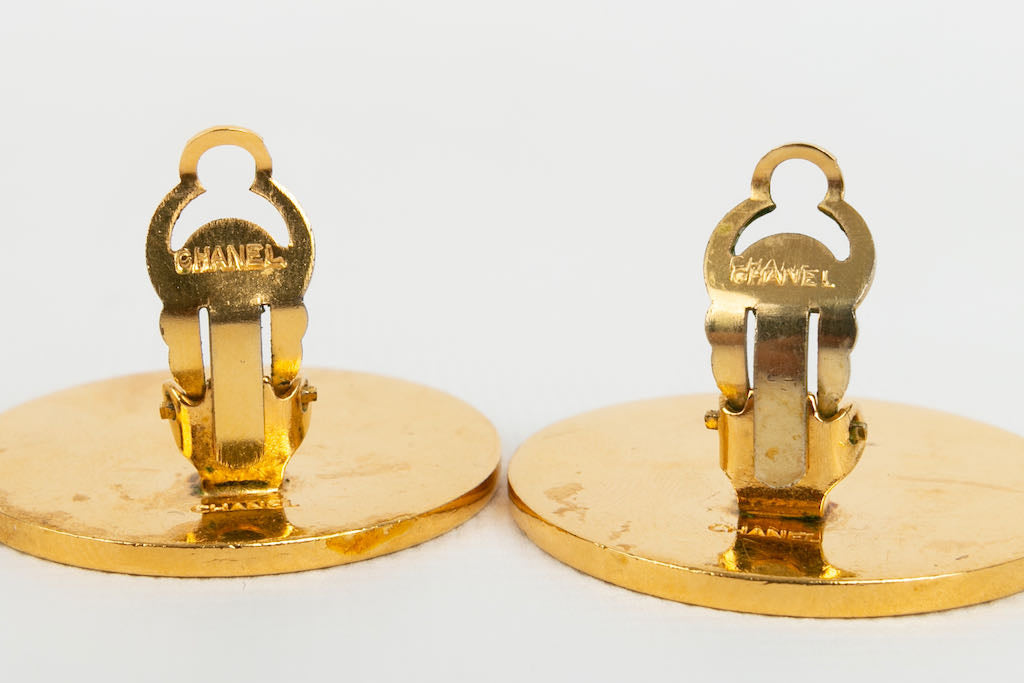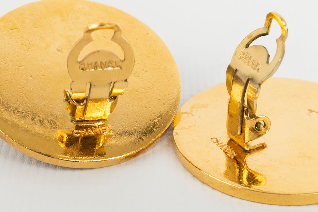 CHANEL -Boucles d'oreilles clips en m�tal dor� �maill�. Pr�sence de rayures sur le m�tal.