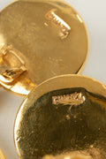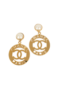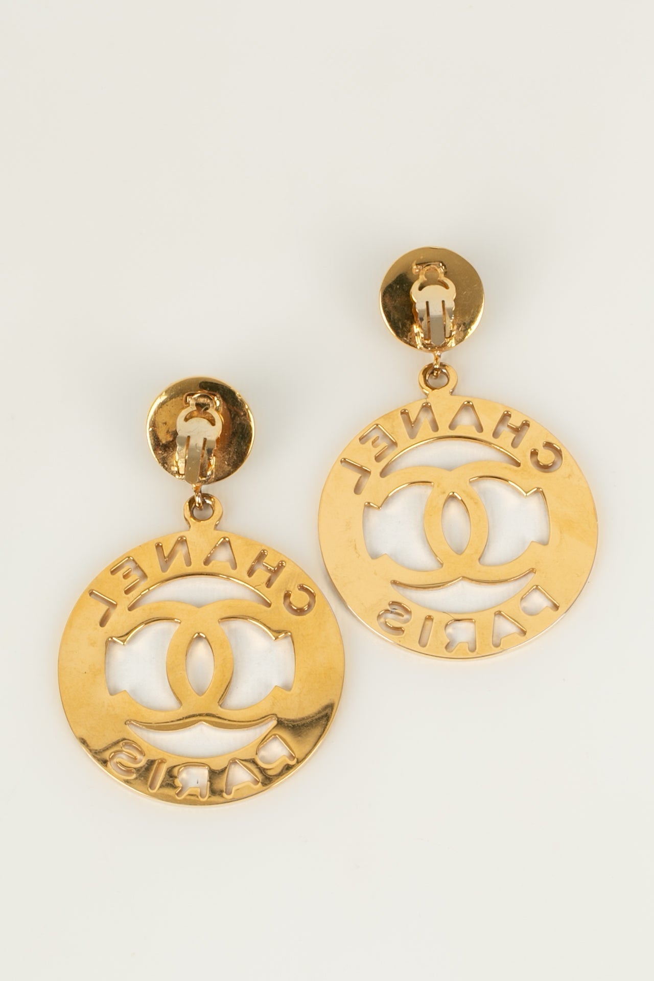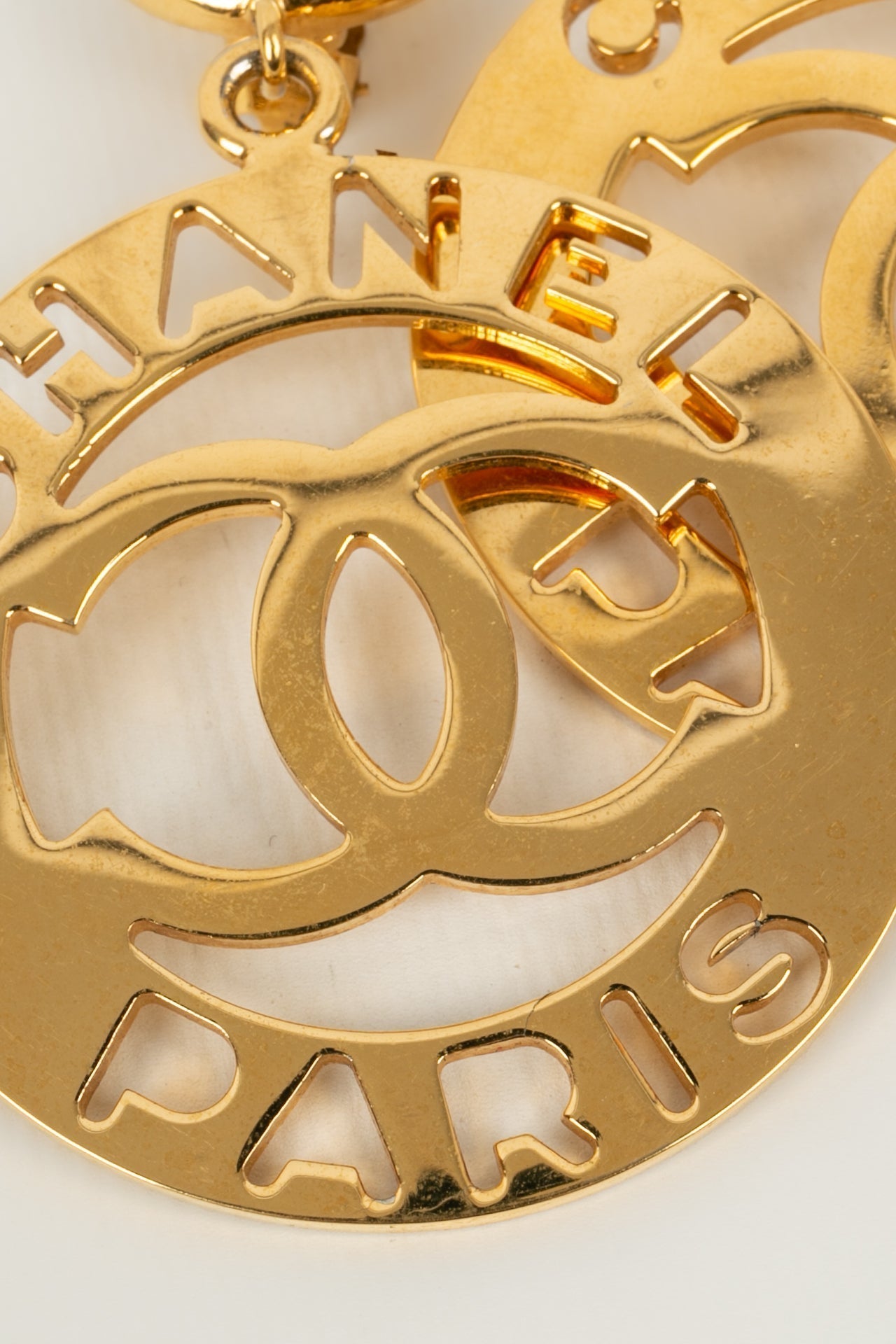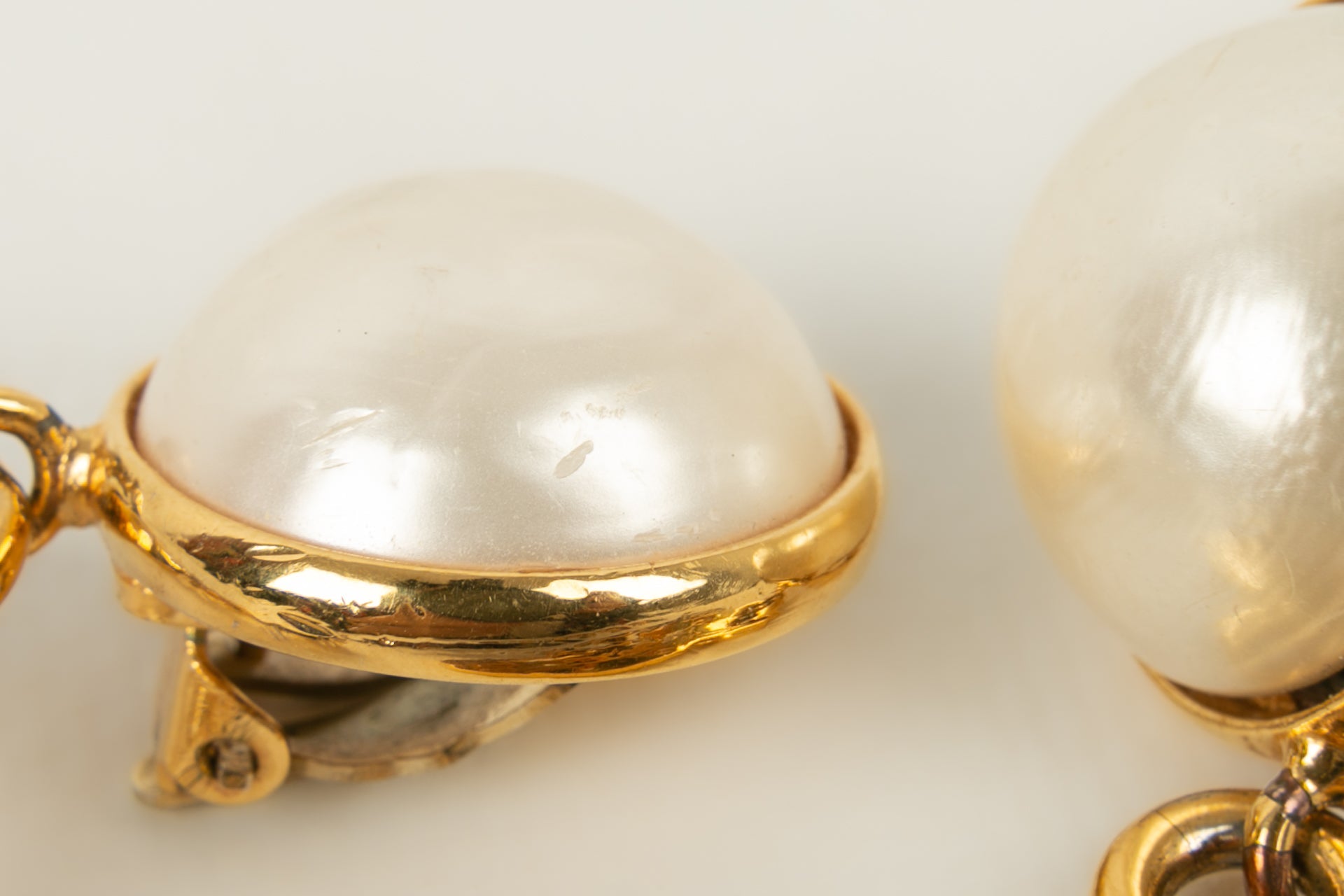 CHANEL - Boucles d'oreilles en m�tal dor� ajour� et cabochon nacr�.