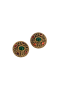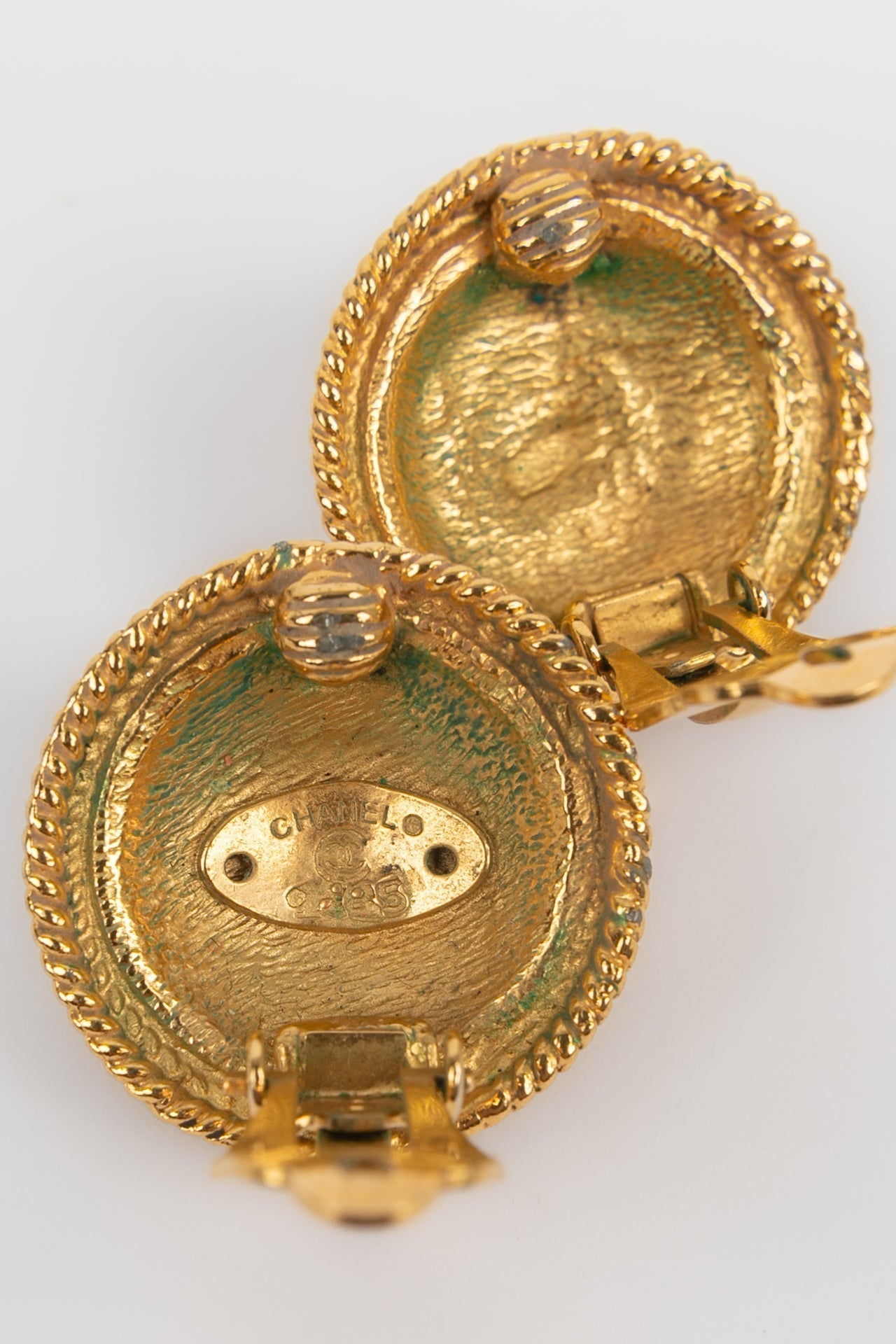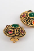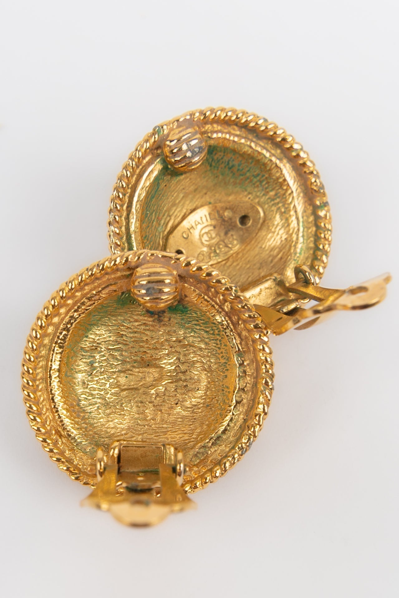 CHANEL - Boucles d'oreilles en m�tal dor� et p�te de verre. Collection 1985.
