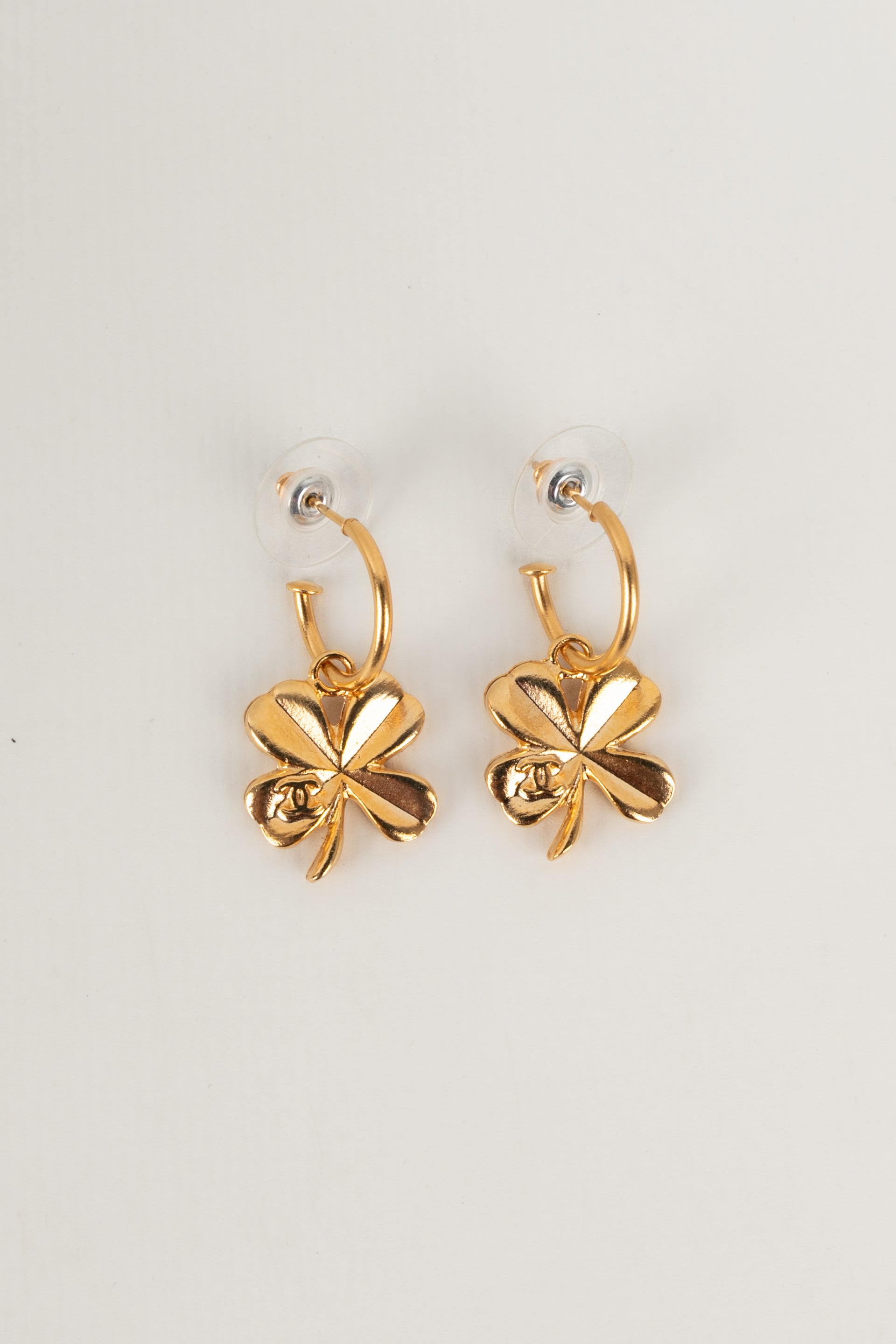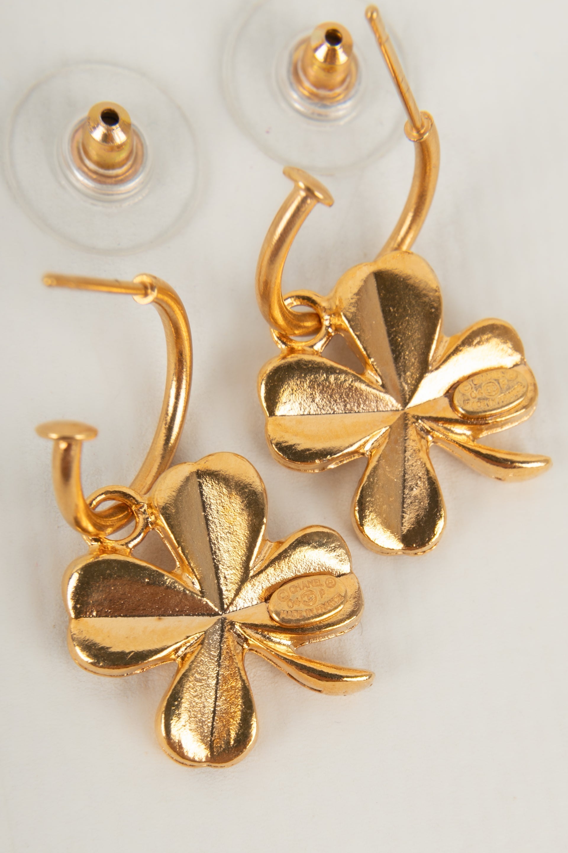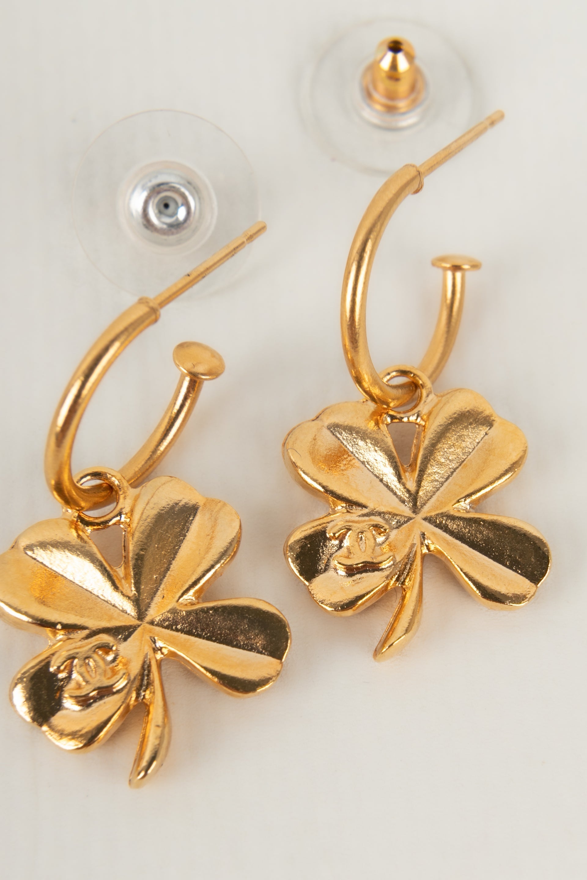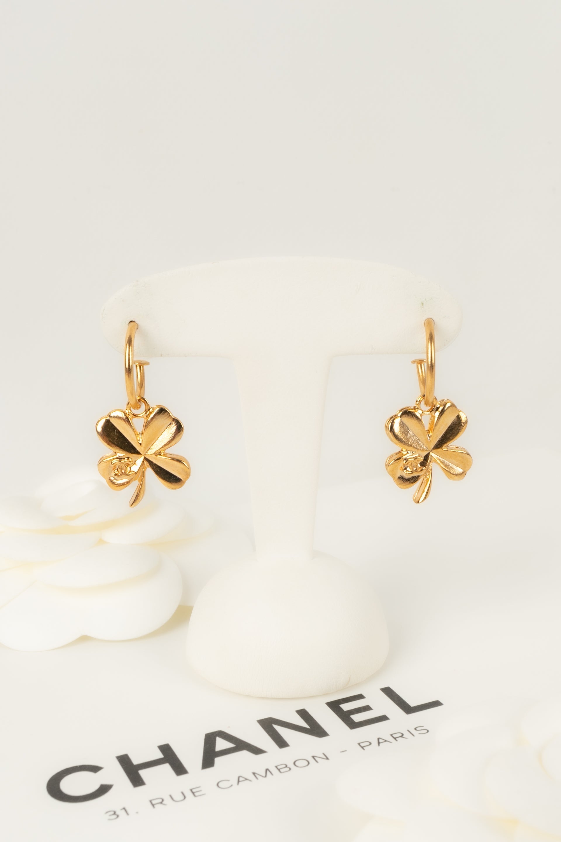 CHANEL - (Made in France) Boucles d'oreilles en métal doré figurant un trèfle à quatre feuilles. Collection Printemps-Eté 2004.