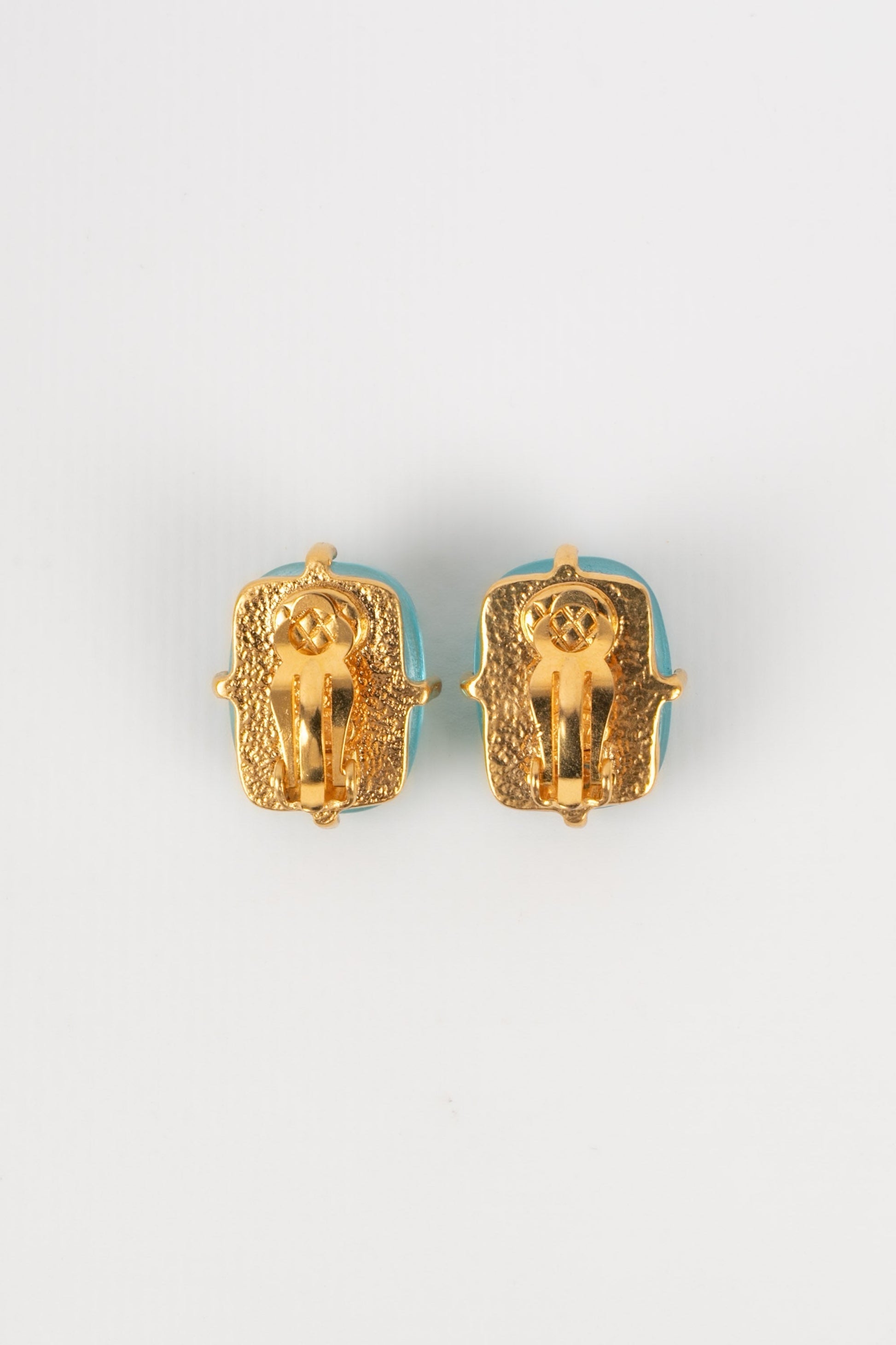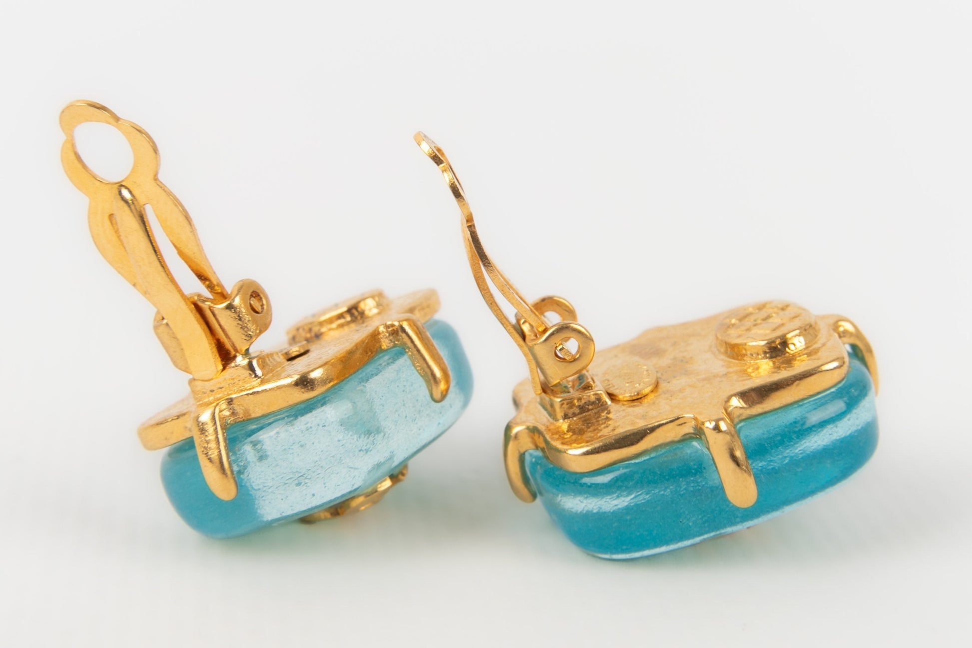 Note: Our Items are totally New High quality Brand Inspired Refurbished. Please make sure you are well aware of it before buying any of the Item. T&C's Apply in case of refunds.Please send us message on below chat to confirm availability. We will send the Refurbished Model in case you place an order with us. Enjoy Shopping.Always Send Us message to confirm availability before buying, In case of refund the transaction fee remains non refundable.�Thank�you. Boucles d'oreilles en m�tal dor� et p�te de verre bleu clair. Collection Automne-Hiver 1997.