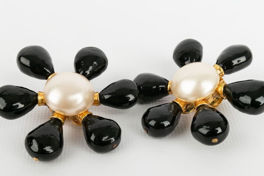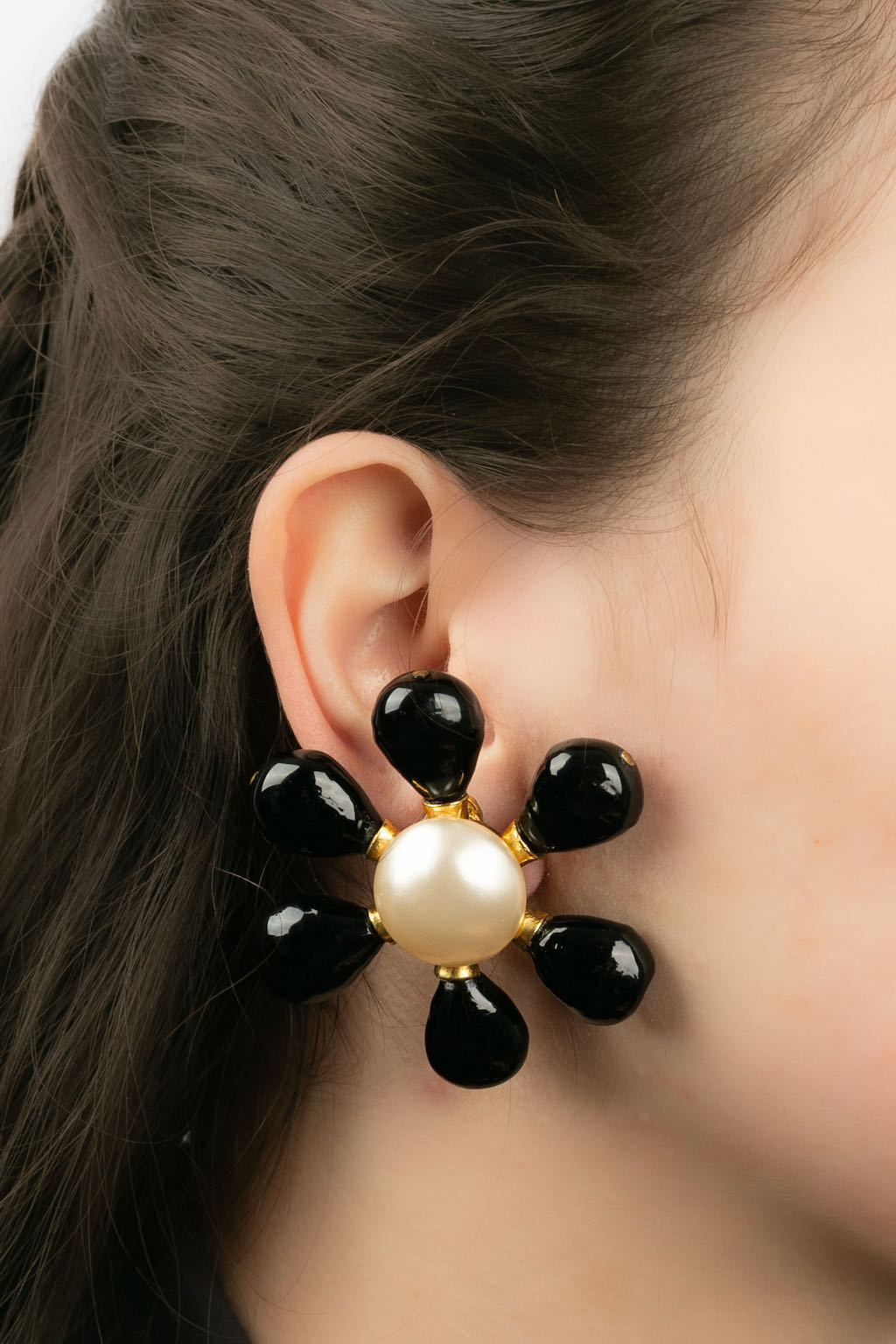 Note: Our Items are totally New High quality Brand Inspired Refurbished. Please make sure you are well aware of it before buying any of the Item. T&C's Apply in case of refunds.Please send us message on below chat to confirm availability. We will send the Refurbished Model in case you place an order with us. Enjoy Shopping.Always Send Us message to confirm availability before buying, In case of refund the transaction fee remains non refundable.�Thank�you. Boucles d'oreilles clips en m�tal dor�, p�te de verre noire et cabochon nacr�. Collection Automne-Hiver 1992.