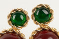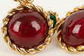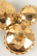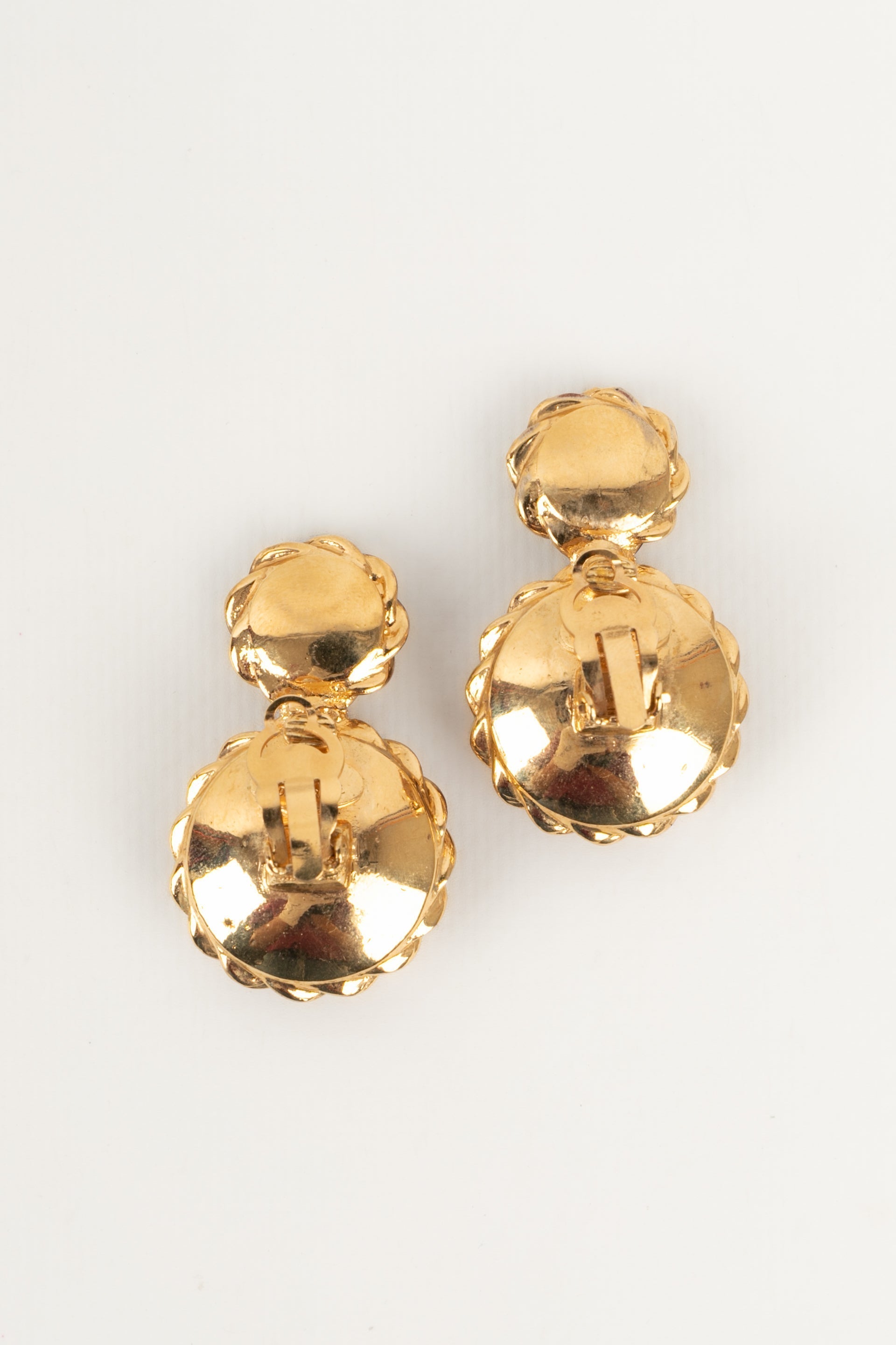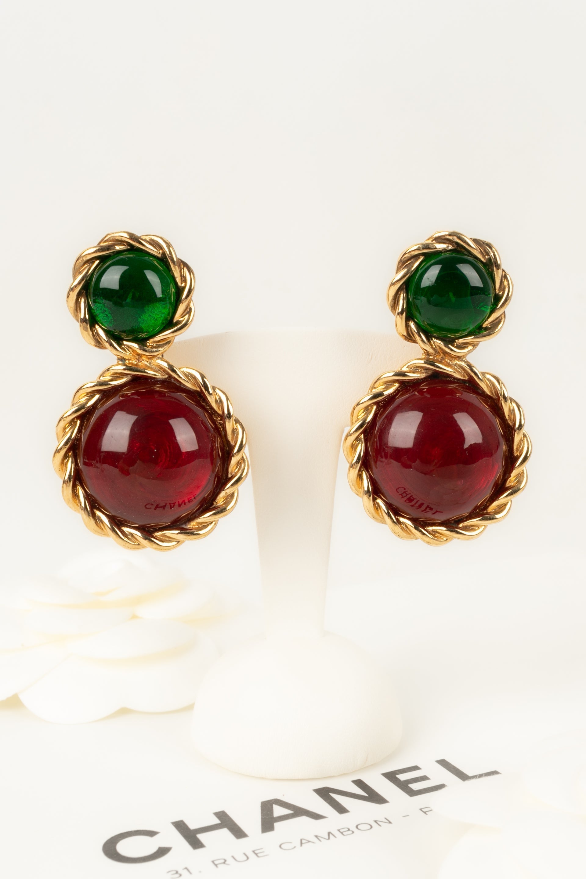 CHANEL - (Made in France) Boucles d'oreilles en métal doré et cabochons en pâte de verre.