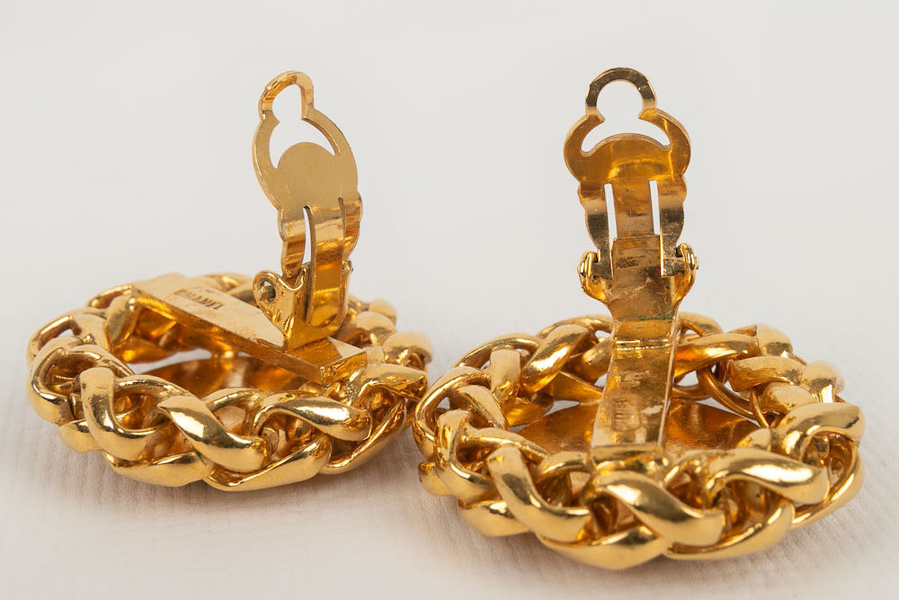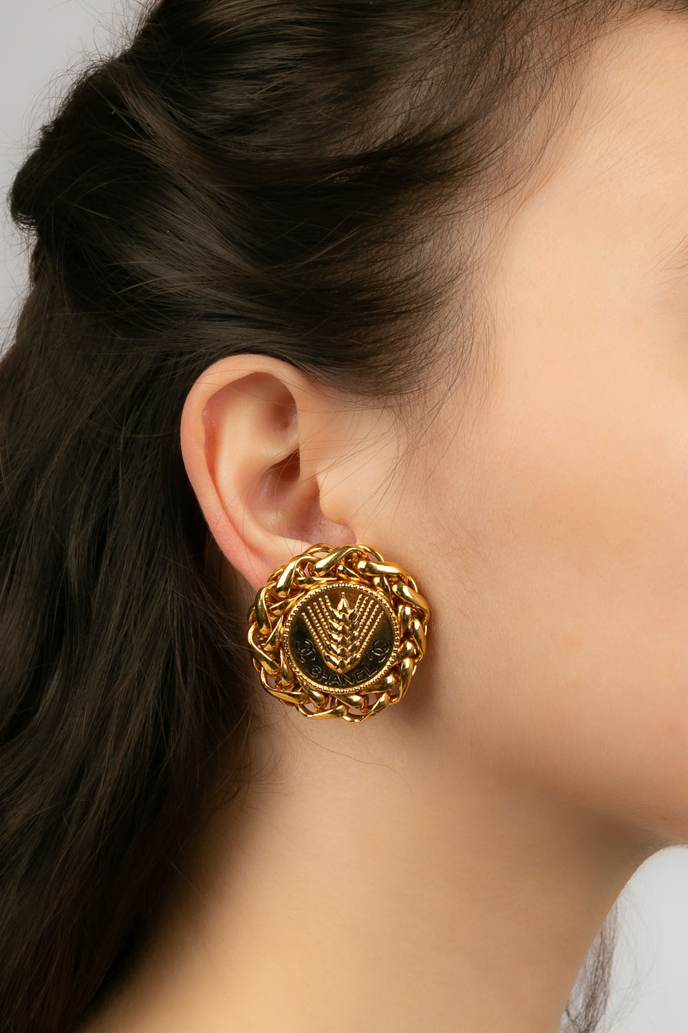 CHANEL -Boucles d'oreilles clip en m�tal dor� figurant un �pis de bl�. Collection Haute Couture Automne-Hiver 1986/1987.