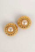 CHANEL -Boucles d'oreilles clips en m�tal dor� et cabochon nacr�.