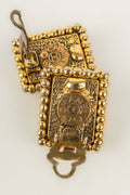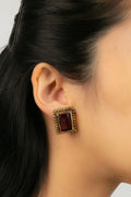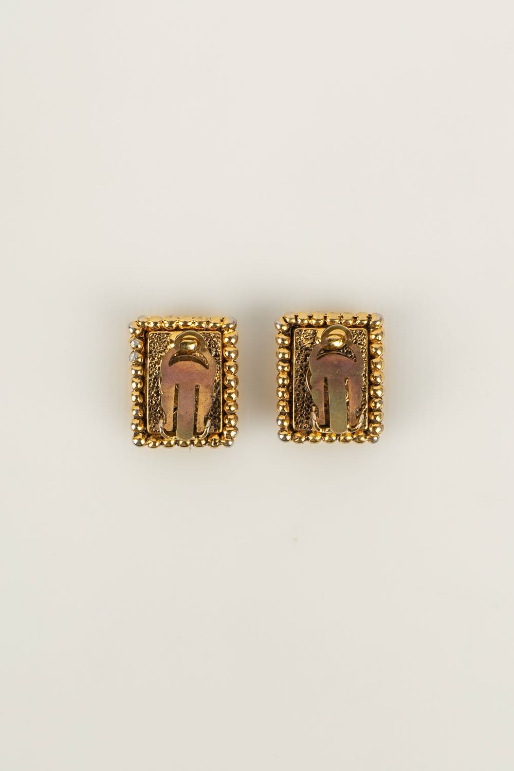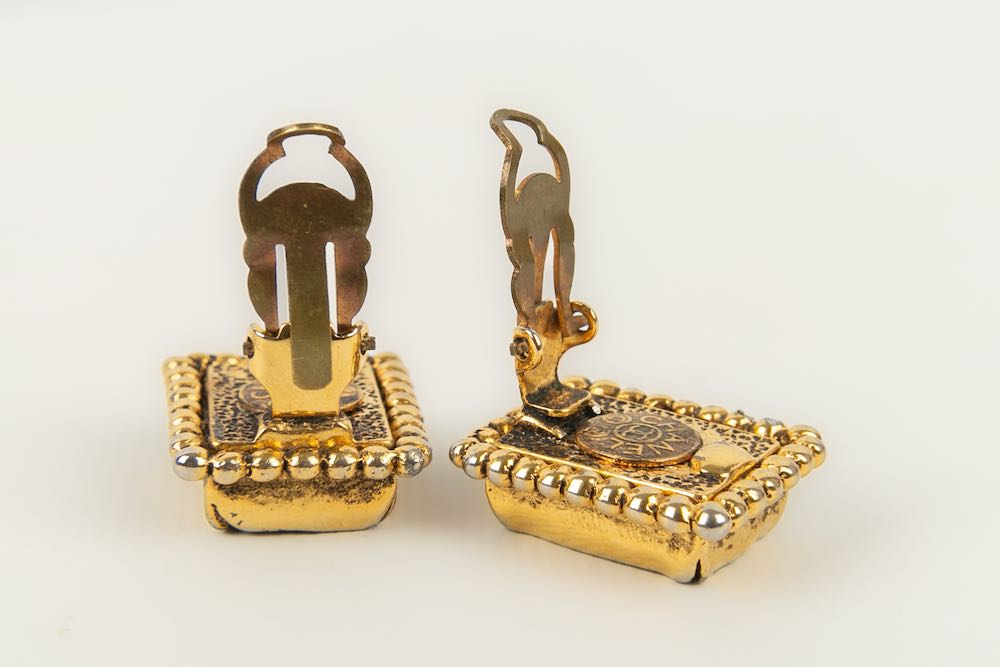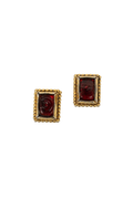 CHANEL - Boucles d'oreilles en m�tal dor� et p�te de verre rouge.