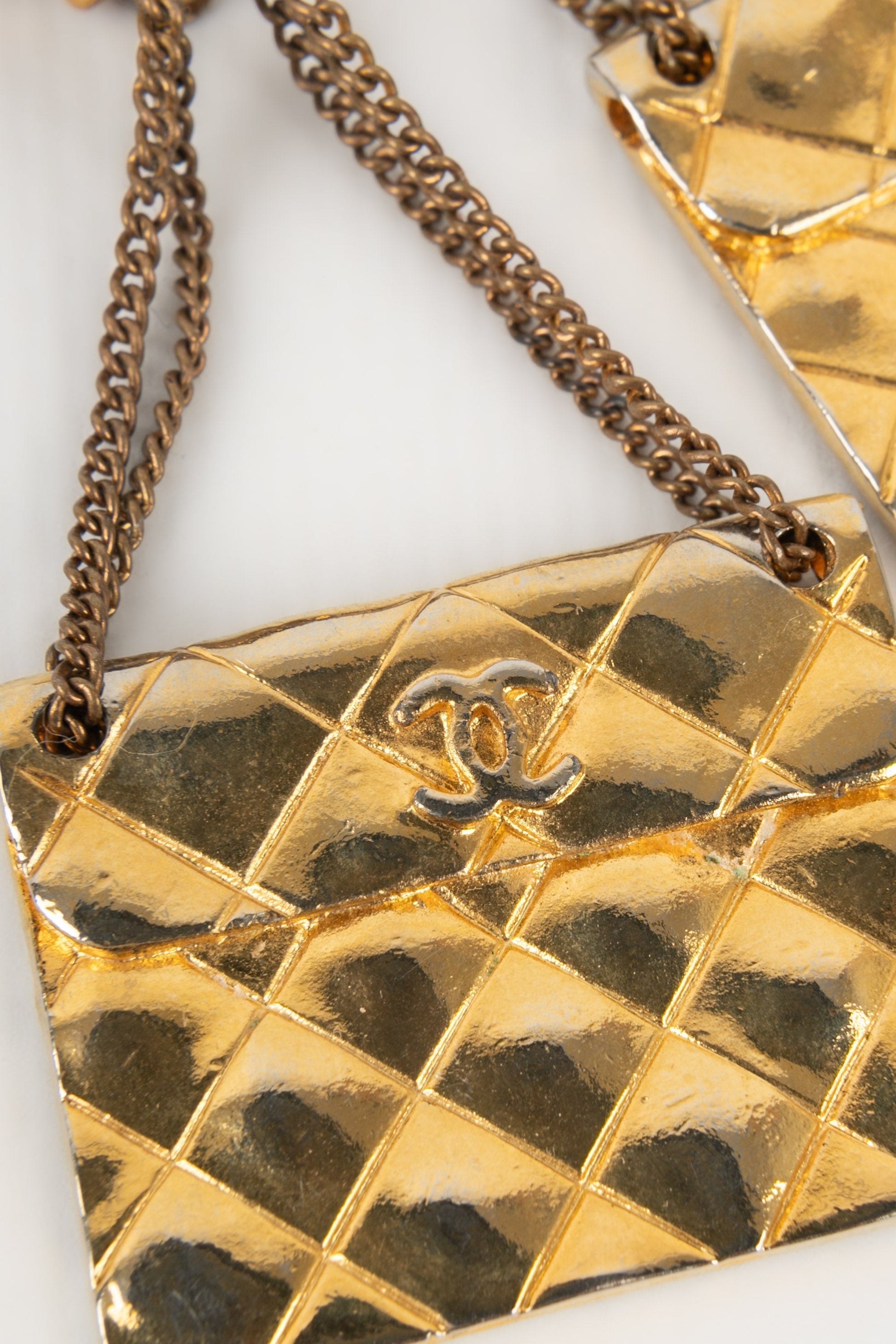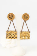 CHANEL - Boucles d'oreilles en m�tal dor�.