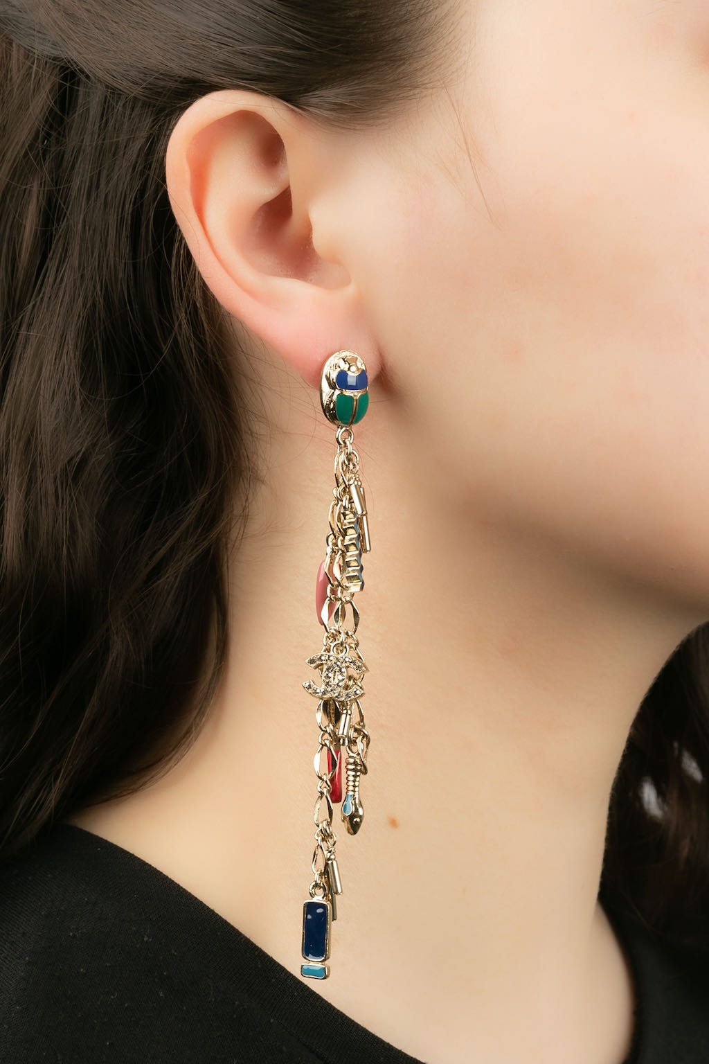 CHANEL -Boucles d'oreilles en m�tal champagne d�cor� de charms. Collection Pre-Fall 2019.