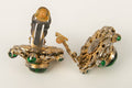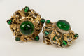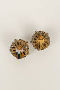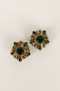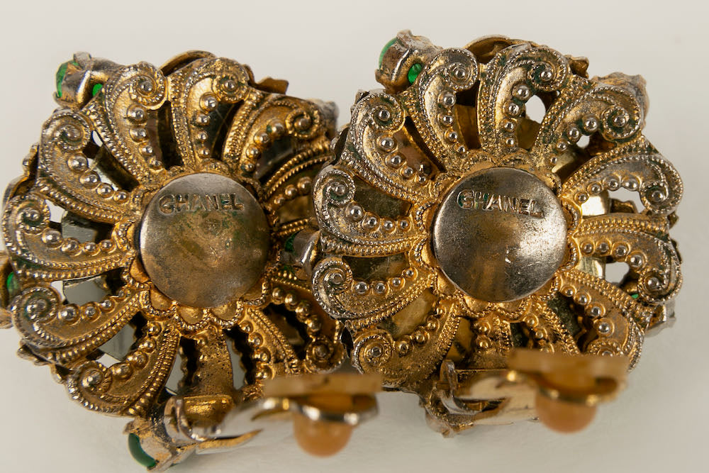 CHANEL -Boucles d'oreilles clips en m�tal dor� et cabochon en p�te de verre. Bijoux de l'�poque Coco Chanel. A signaler, l�ger manque de dorure.