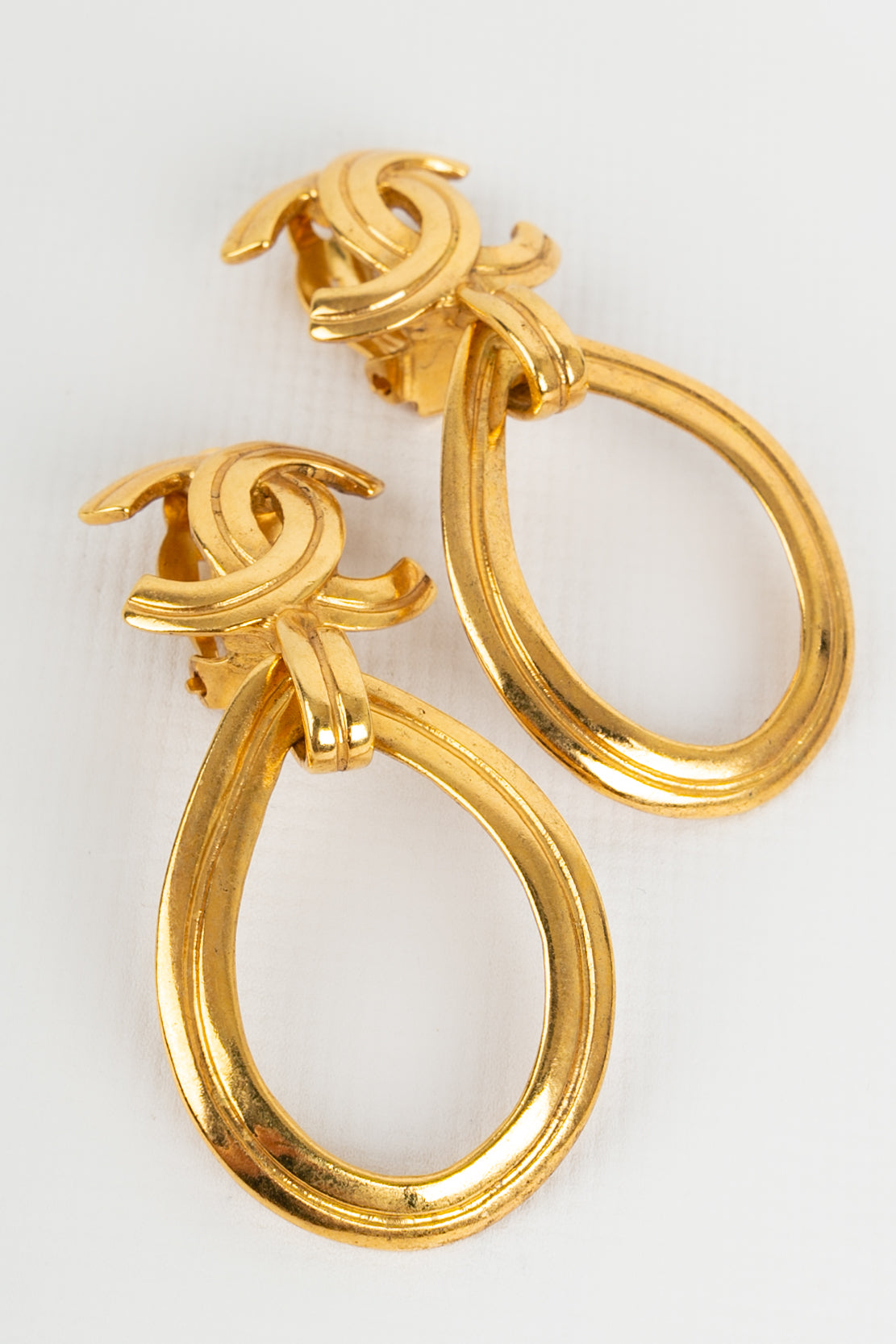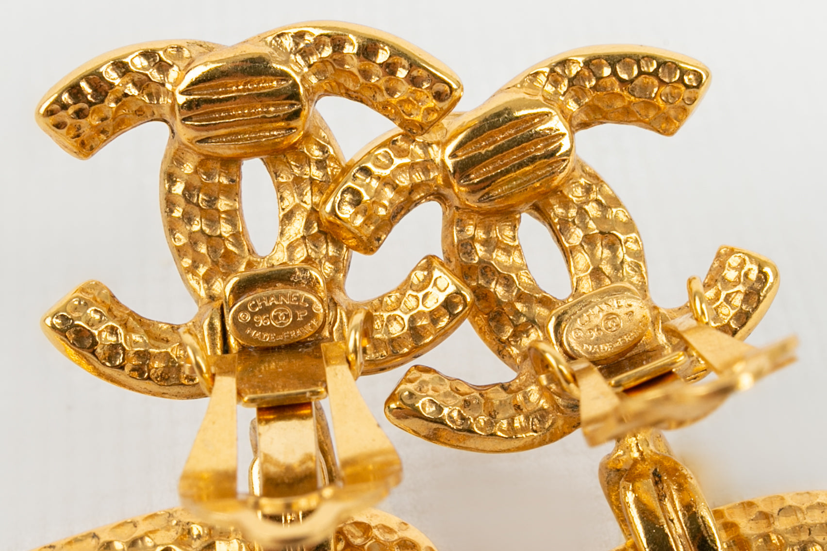 CHANEL - (Made in France) Boucles d'oreilles clips en métal doré. Collection Printemps-Eté 1996.