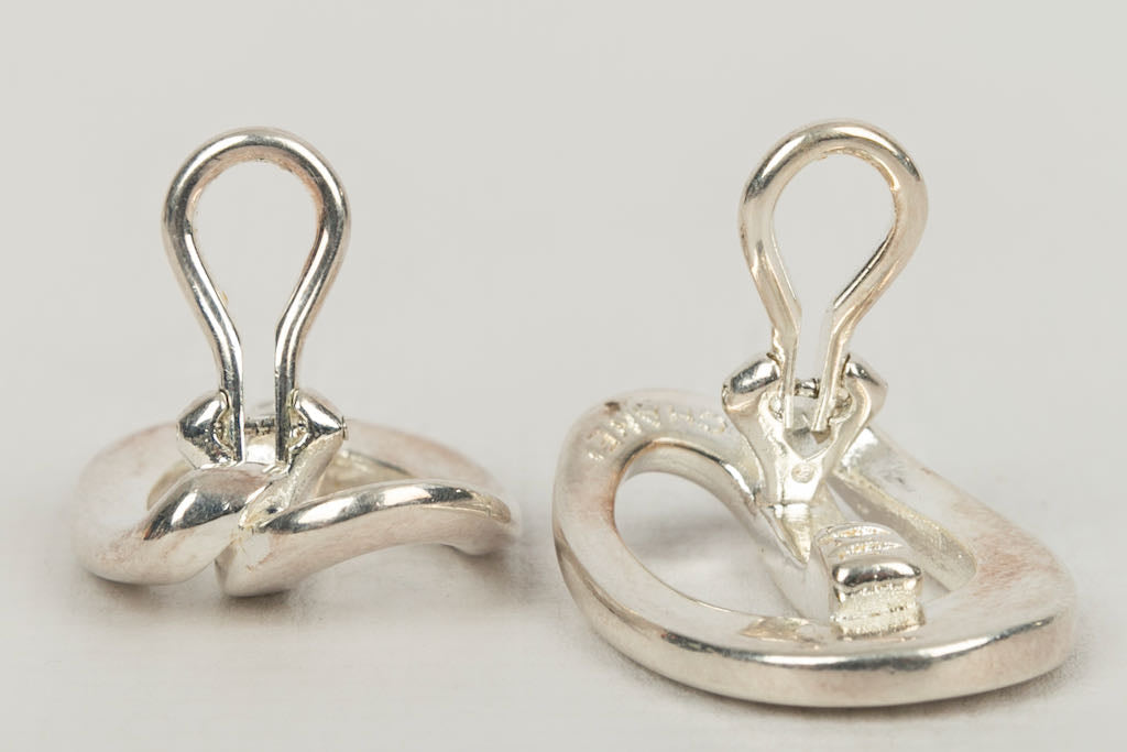 CHANEL -Boucles d'oreilles clips en argent. A signaler, rares rayures.