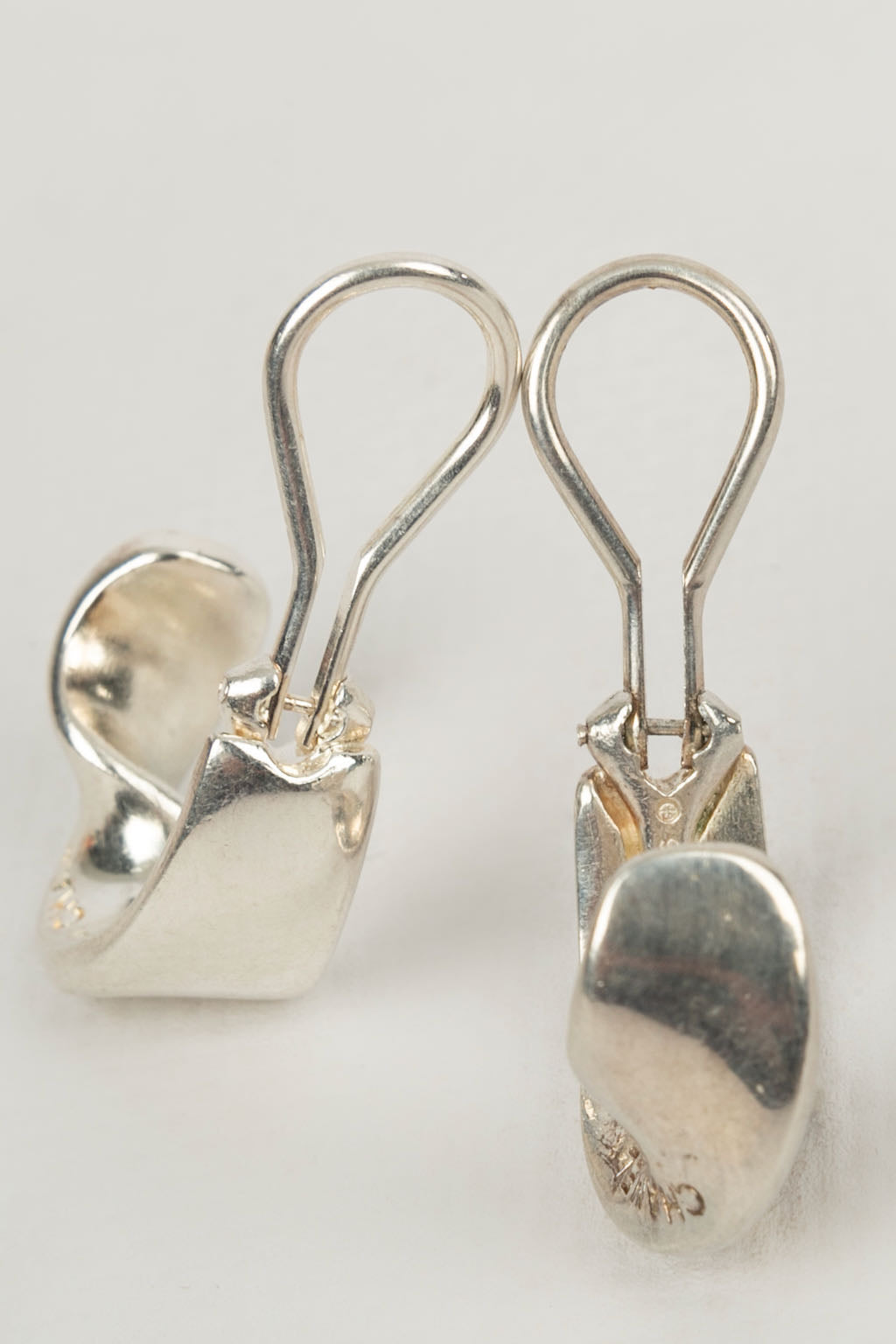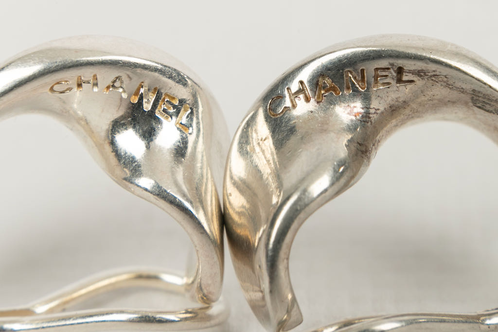 CHANEL -Boucles d'oreilles clips en argent. Rares rayures.
