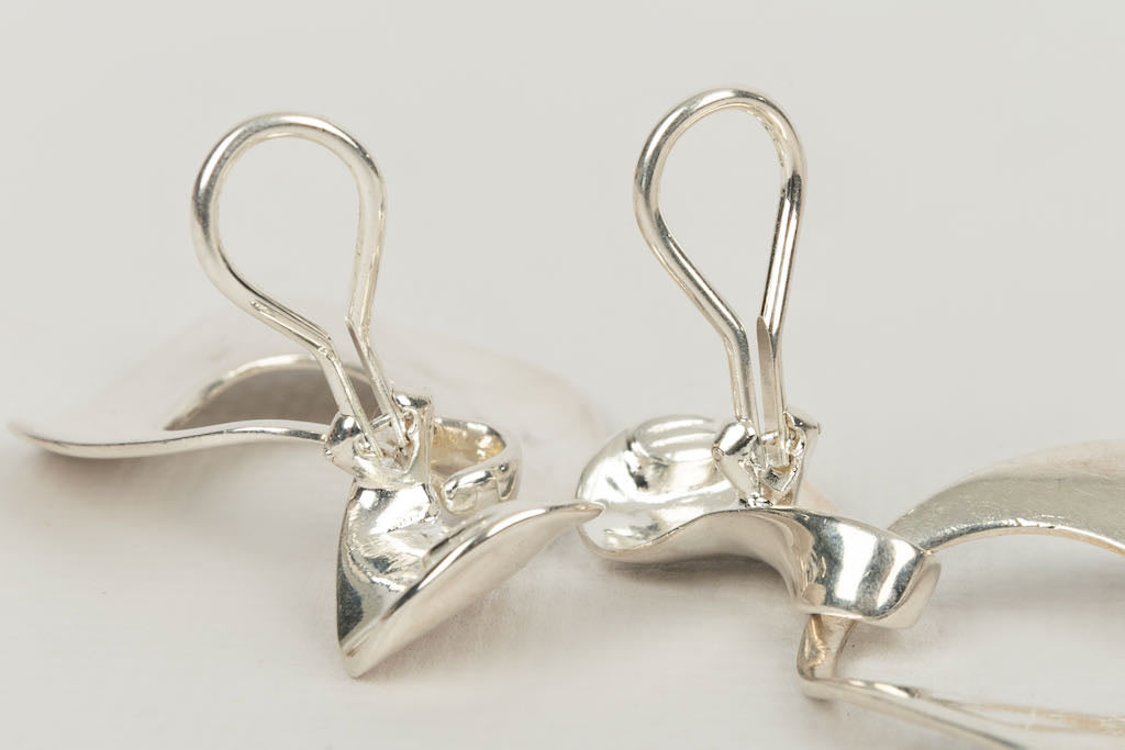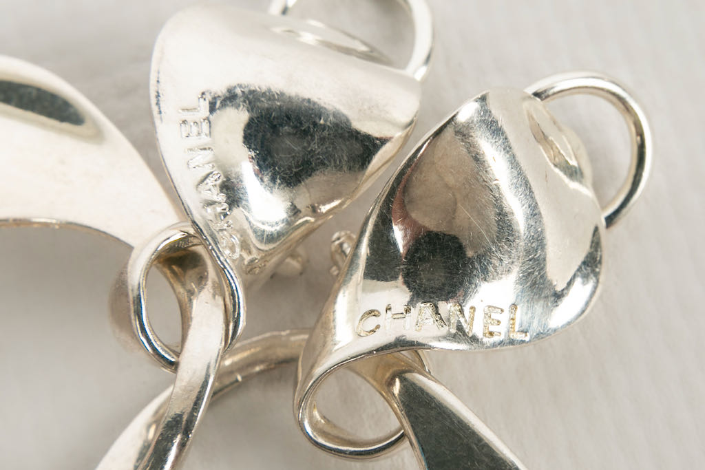 CHANEL -Boucles d'oreilles clips en m�tal argent�. Pr�sence de marques.