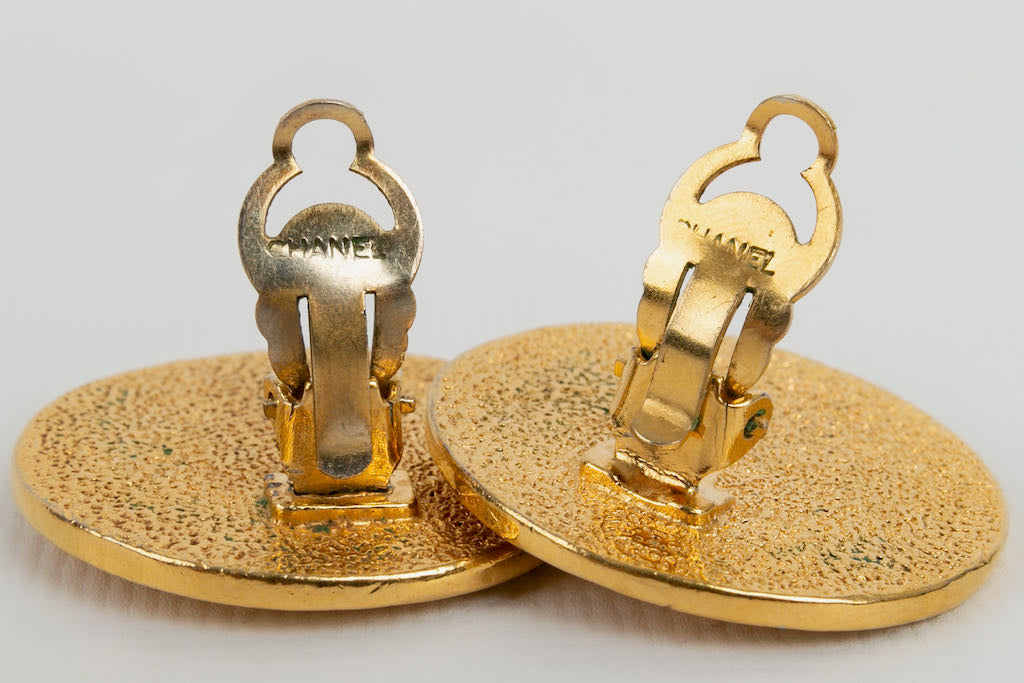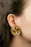 CHANEL - Boucles d'oreilles clips en m�tal dor� figurant un tr�fle a quatre feuilles.