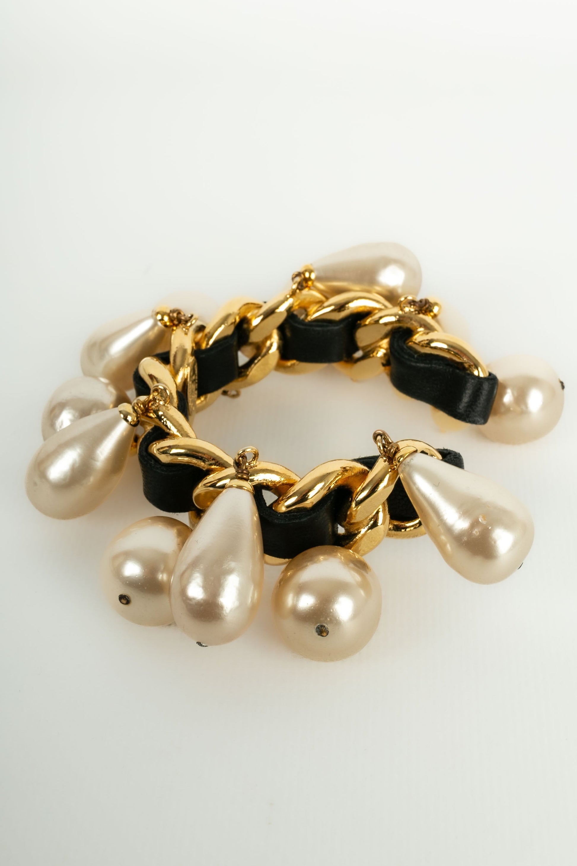 Note: Our Items are totally New High quality Brand Inspired Refurbished. Please make sure you are well aware of it before buying any of the Item. T&C's Apply in case of refunds.Please send us message on below chat to confirm availability. We will send the Refurbished Model in case you place an order with us. Enjoy Shopping.Always Send Us message to confirm availability before buying, In case of refund the transaction fee remains non refundable.�Thank�you. Bracelet en m�tal dor� et cuir noir, retenant des perles nacr�es fantaisies. Collection 2cc3.