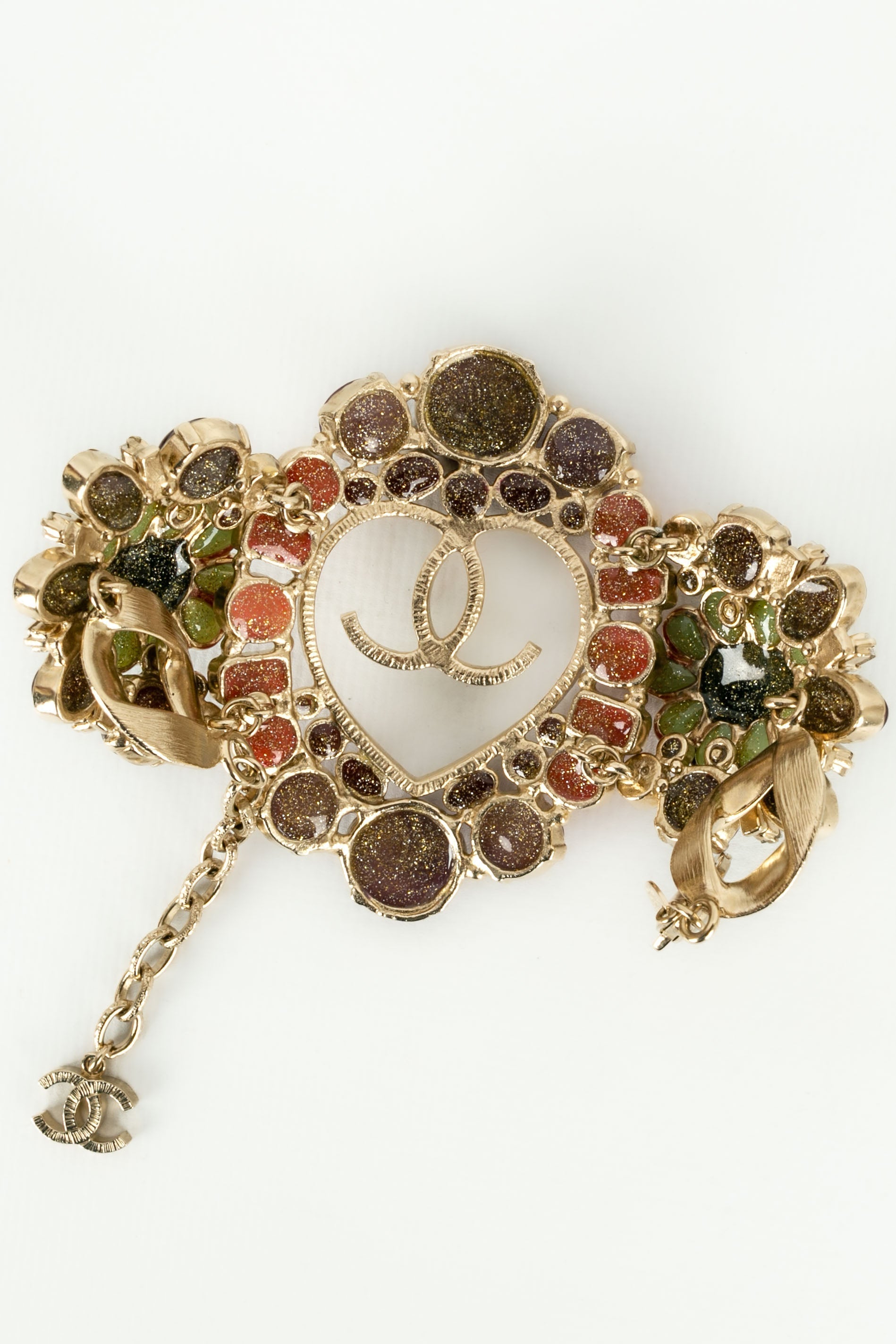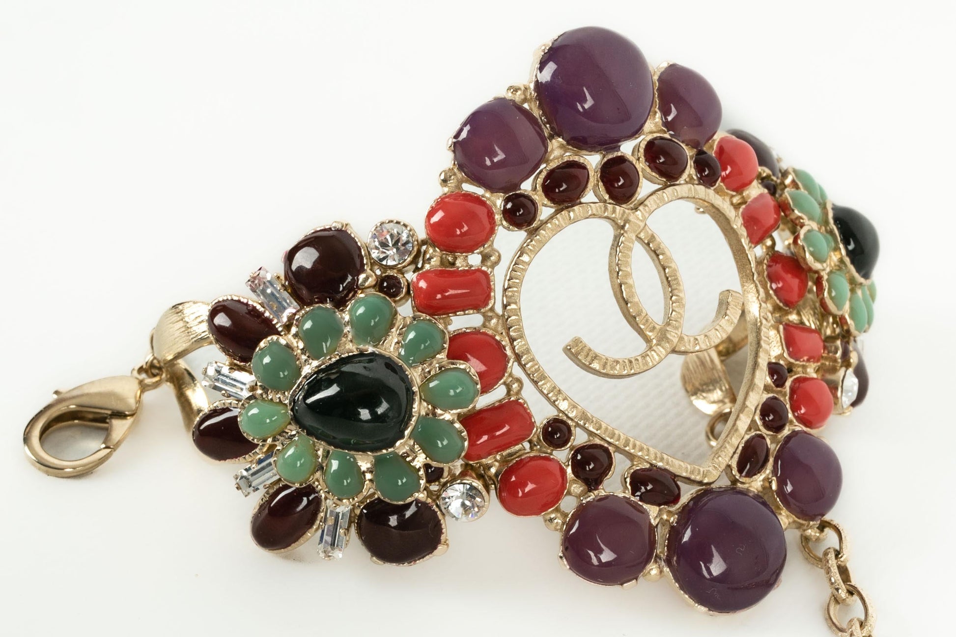 CHANEL - (Made in Italy) Bracelet en m�tal champagne, r�sine et strass. Collection Croisi�re 2009
