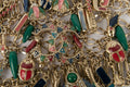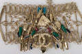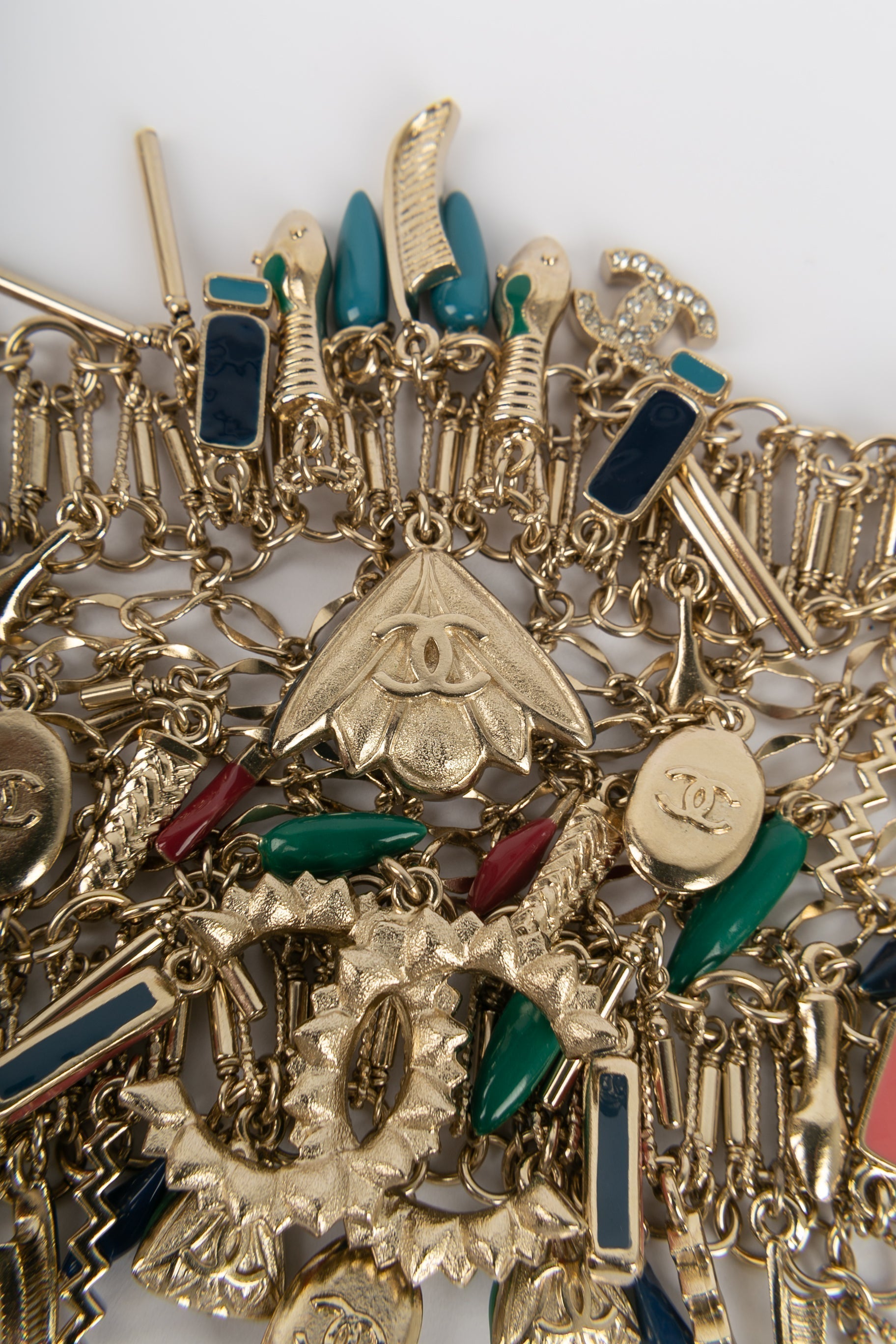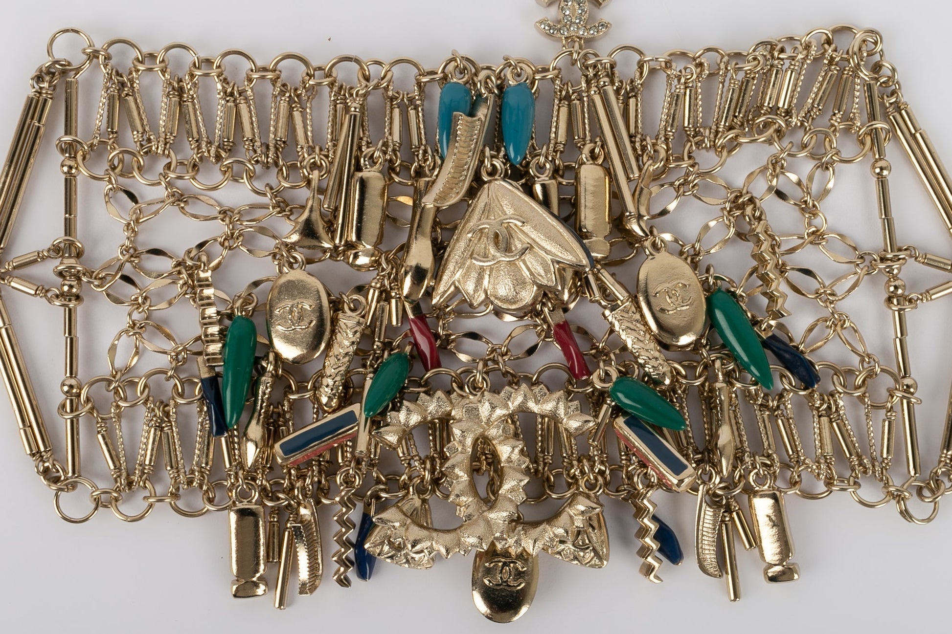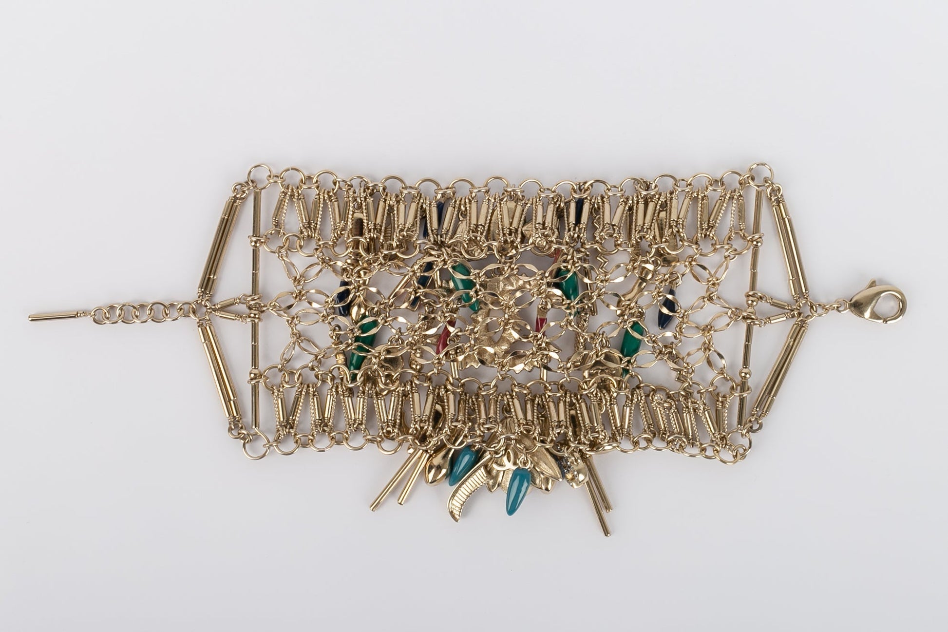 CHANEL - Bracelet en m�tal champagne et breloque en r�sine multicolore. Bijou de d�fil�, non sign�.