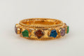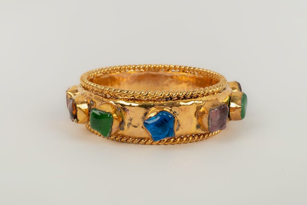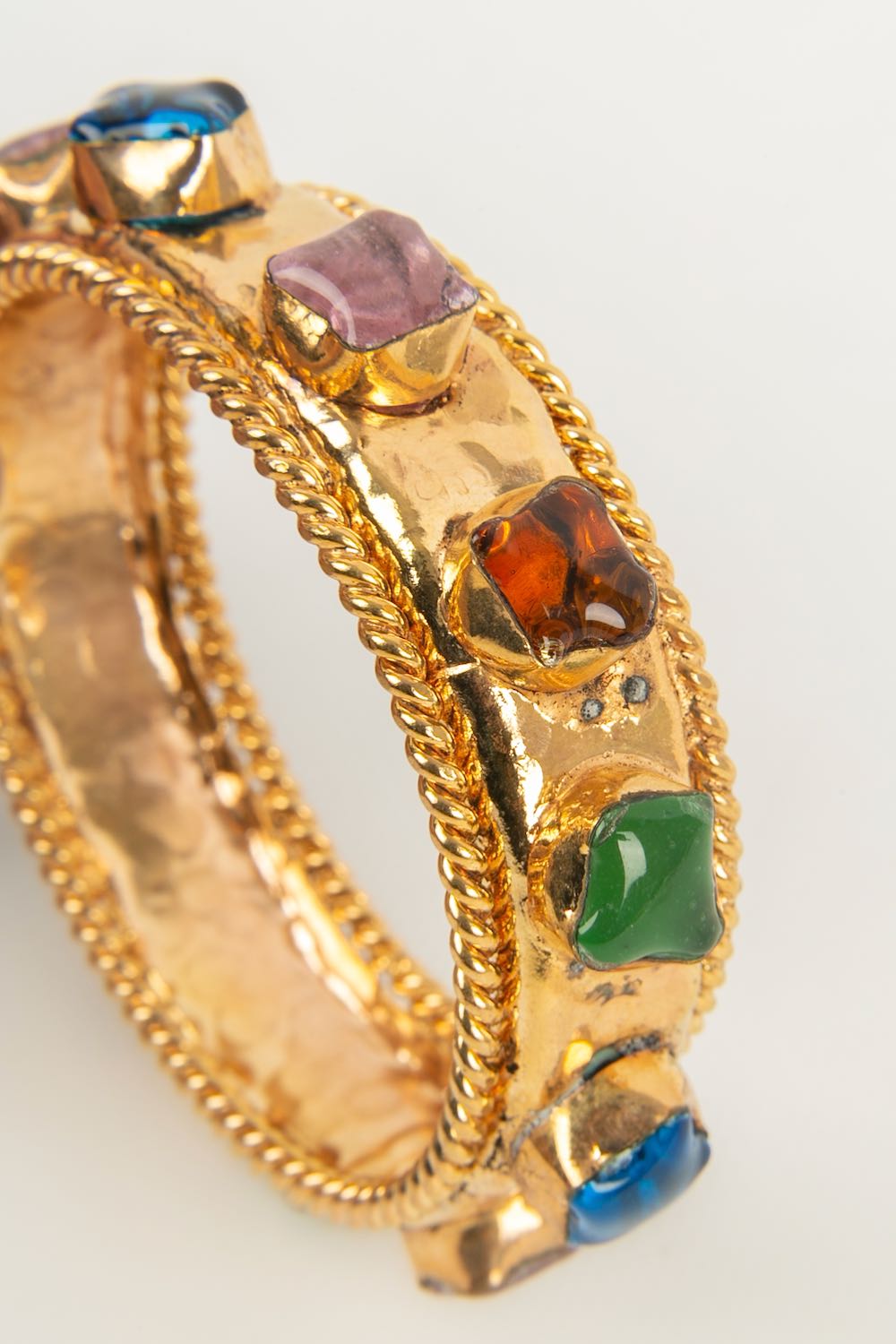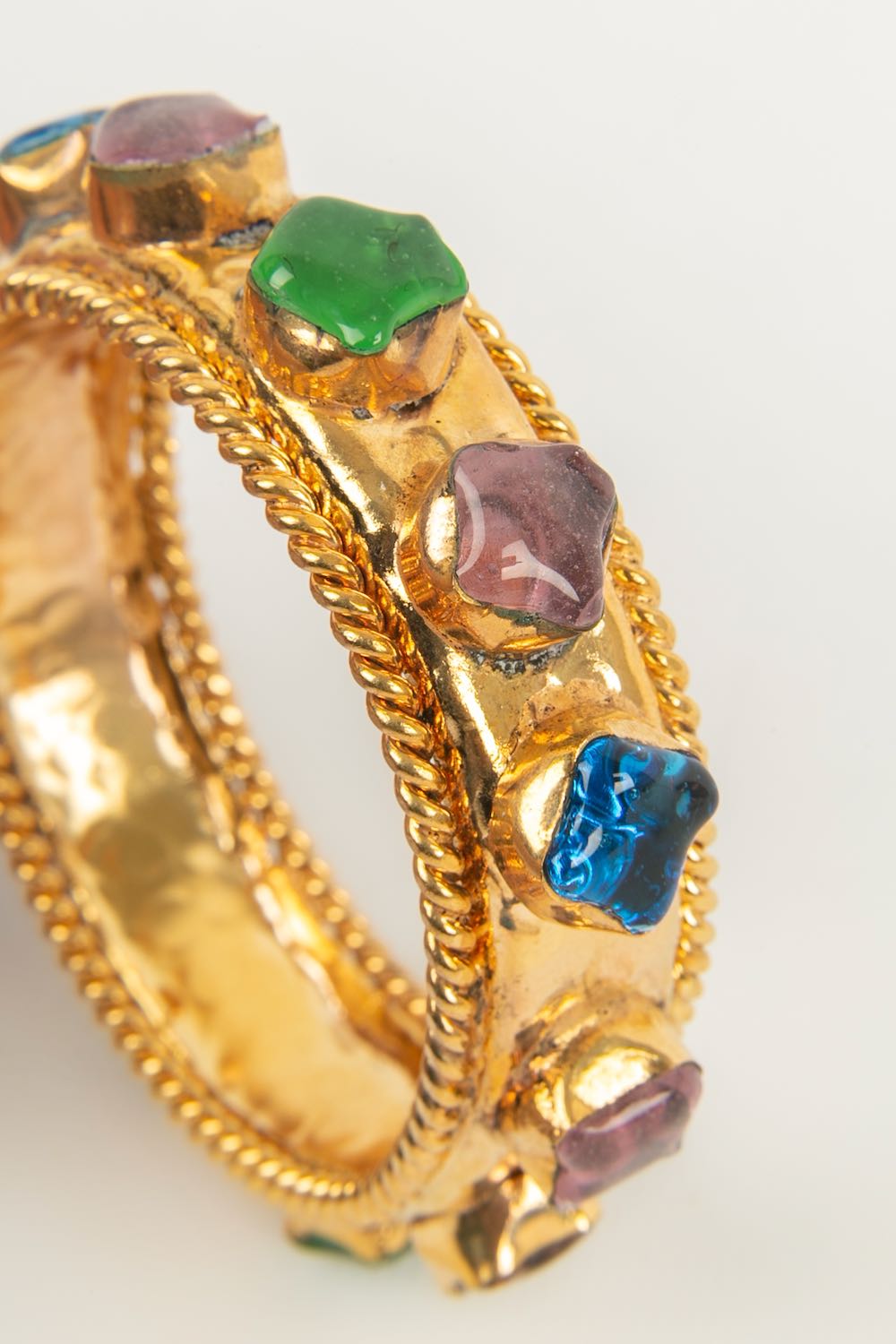 CHANEL - Bracelet Haute Couture en m�tal dor� et p�te de verre multicolore. Bijou de d�fil�, non sign�.