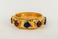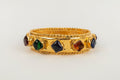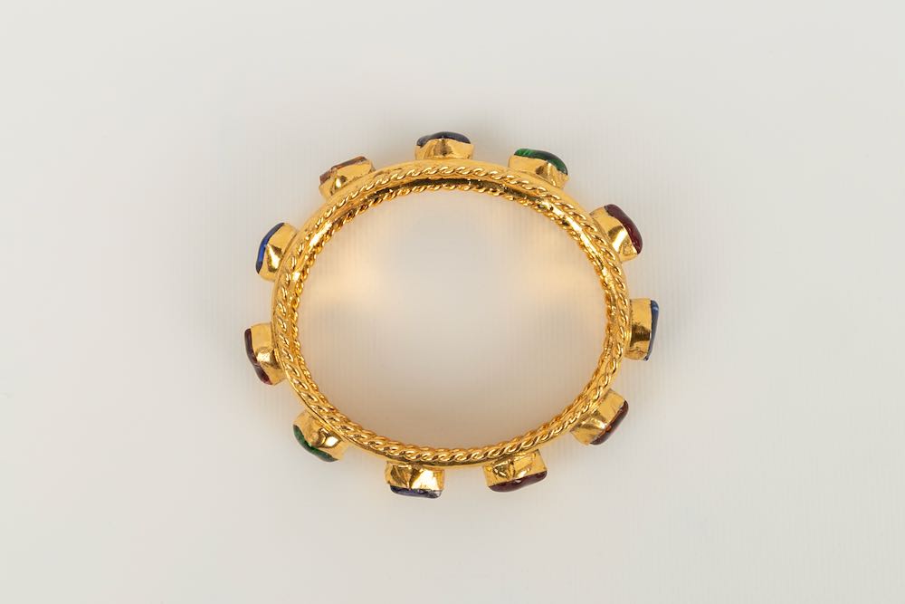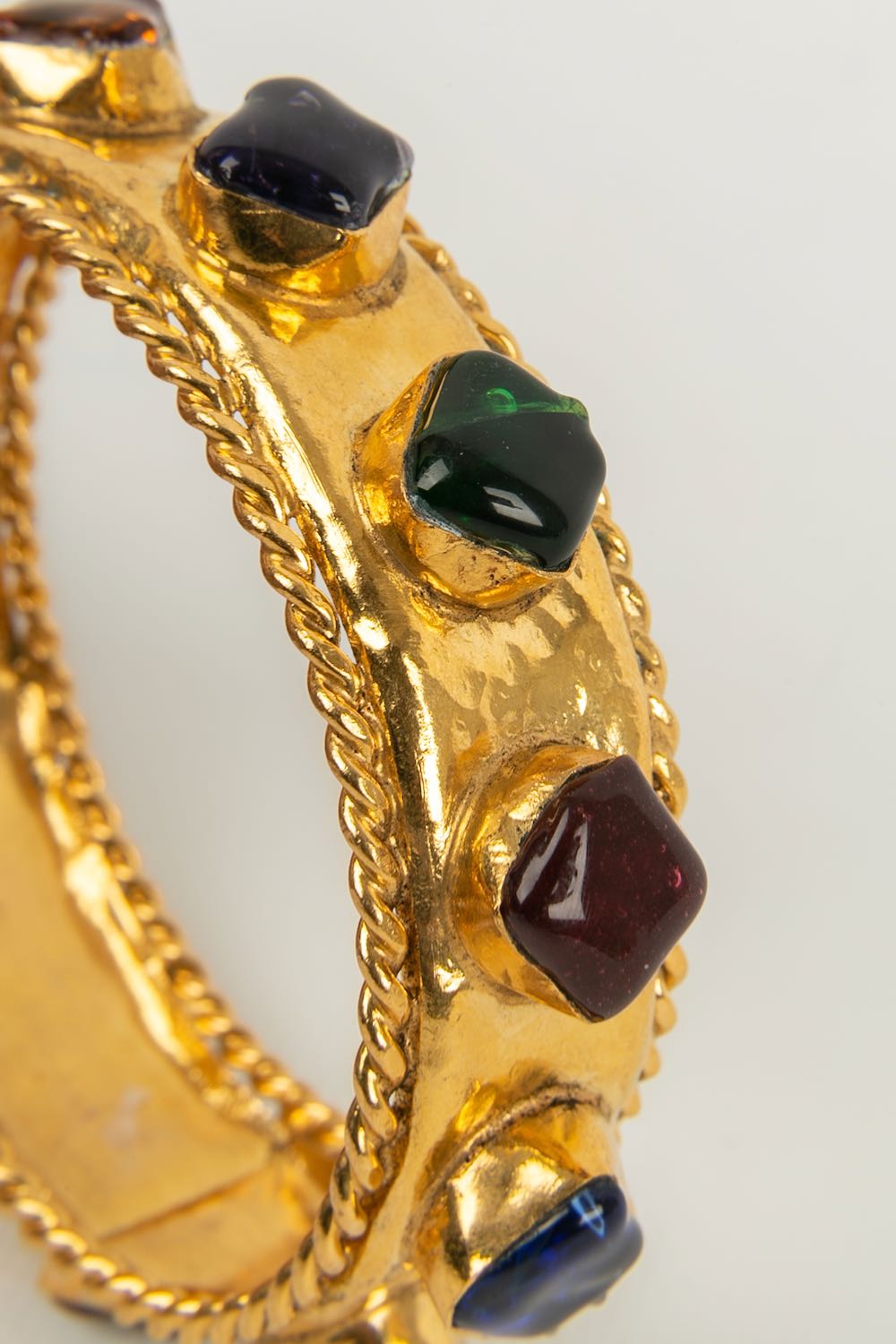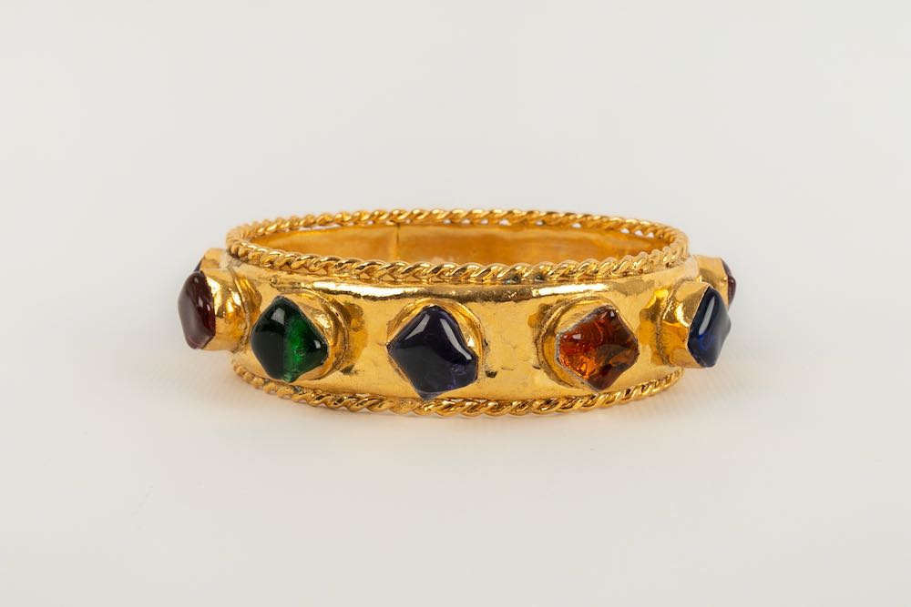 CHANEL - Bracelet Haute Couture en m�tal dor� et p�te de verre multicolore. Bijou de d�fil�, non sign�.