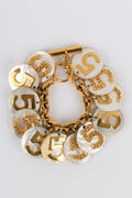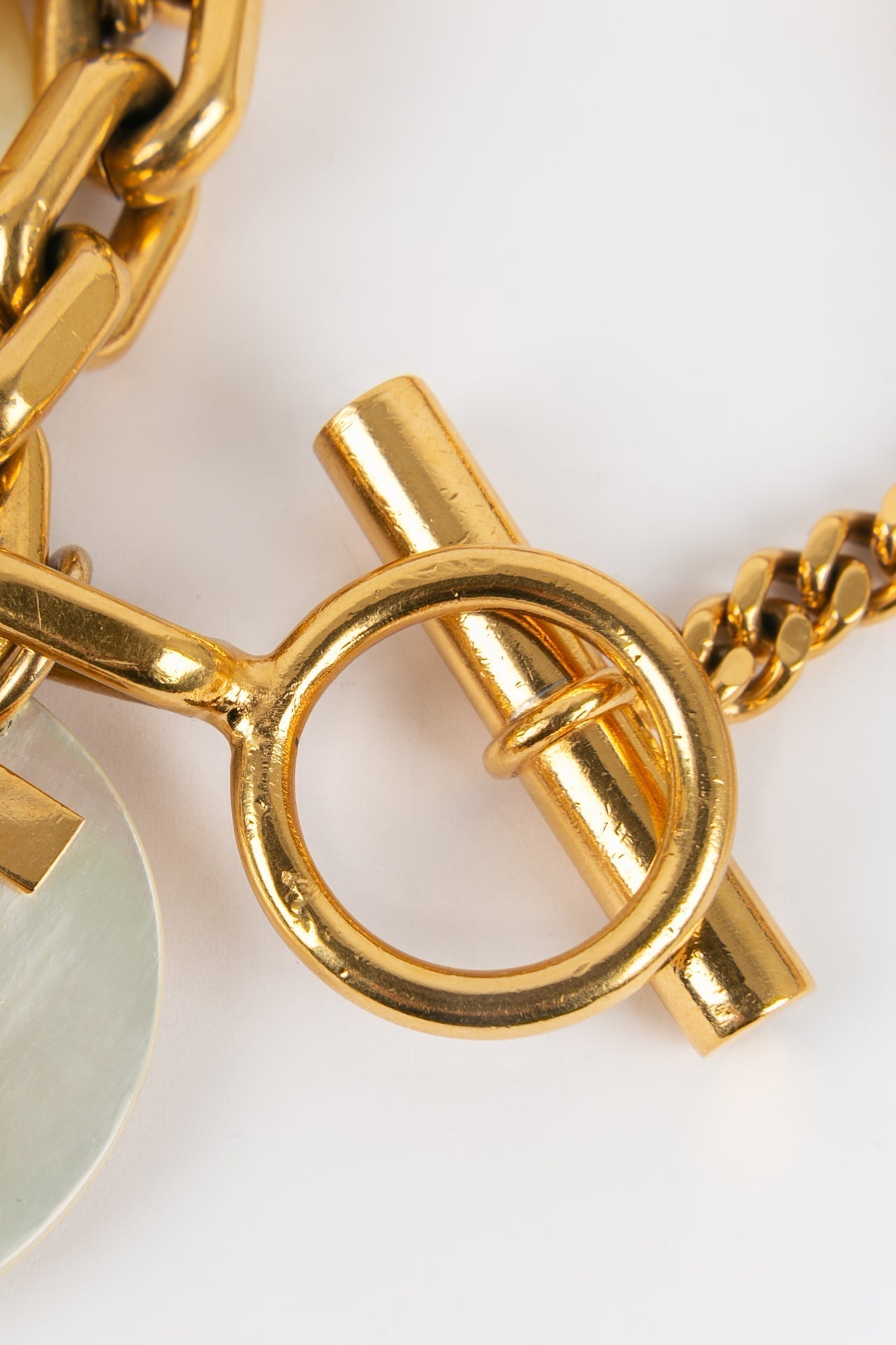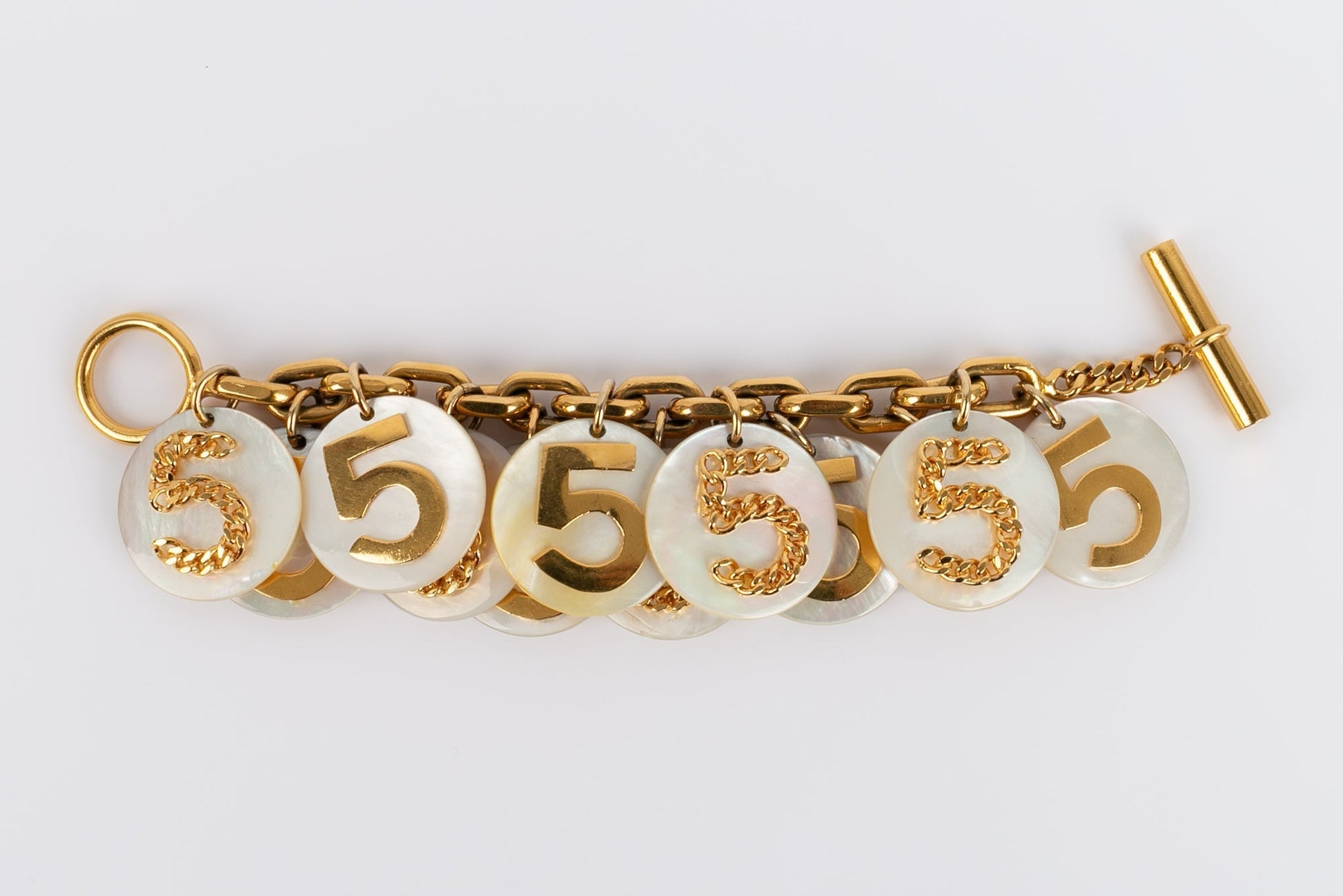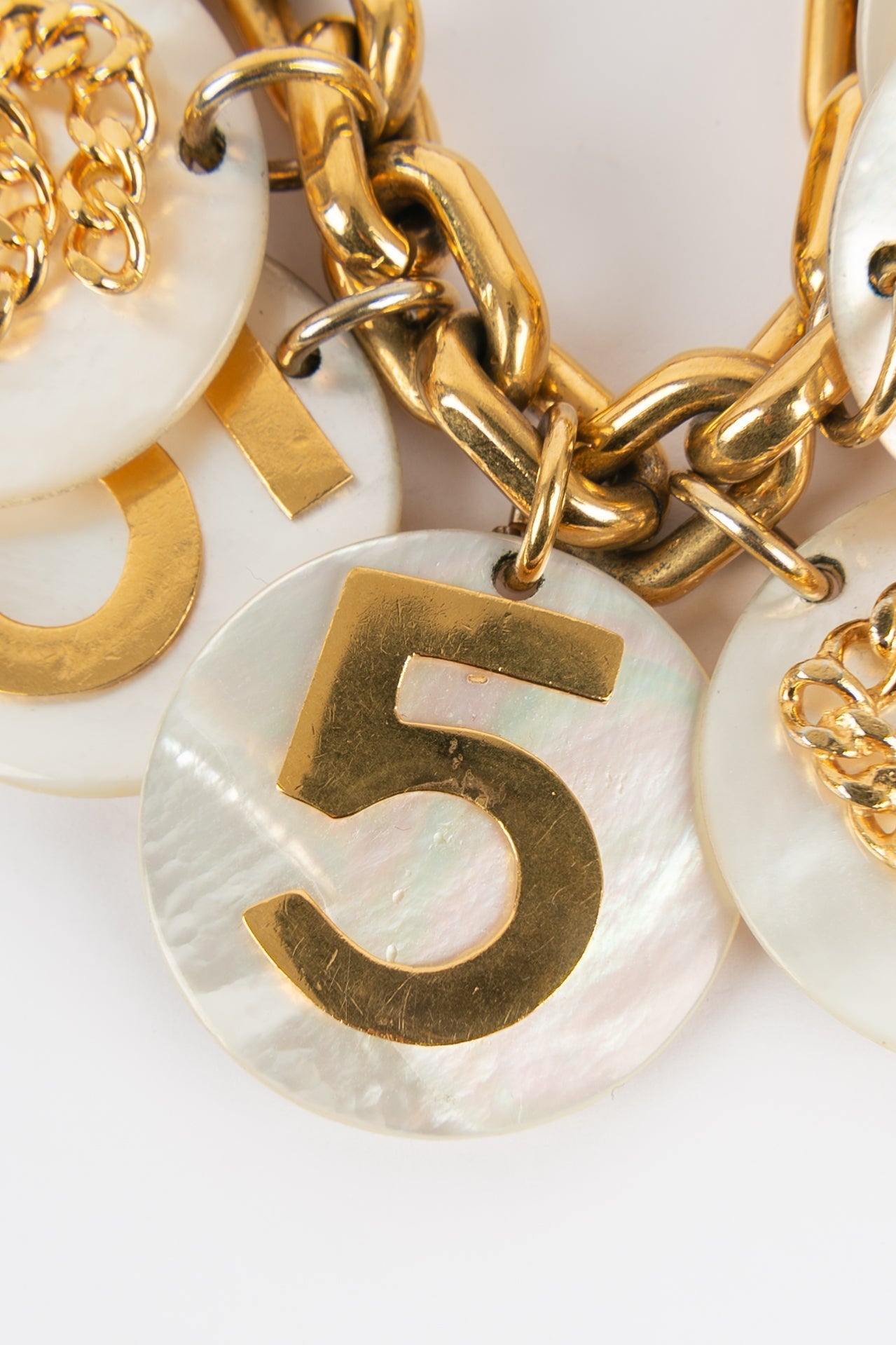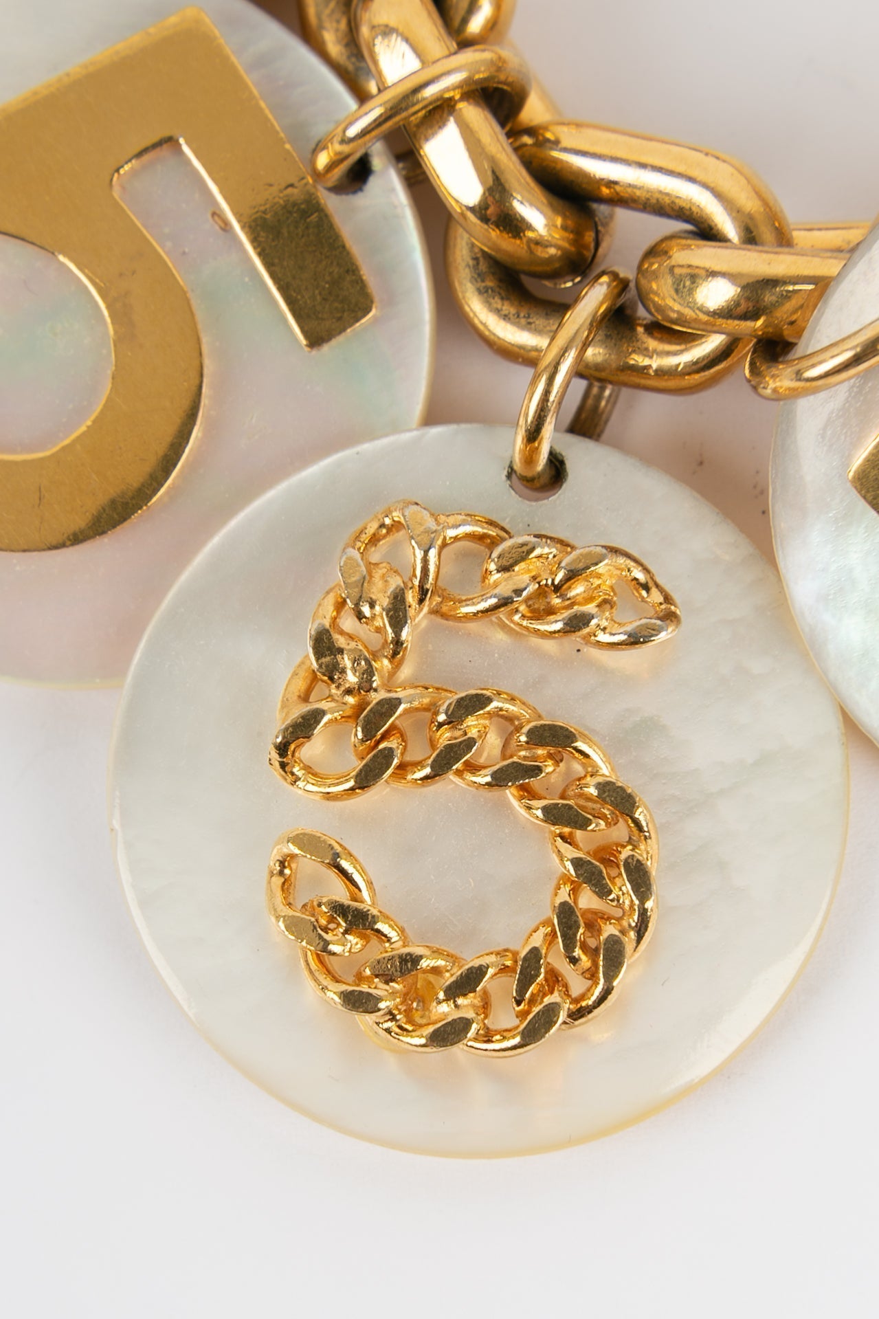 CHANEL - Iconique bracelet � breloques compos� de pastilles nacr�es. A signaler, le bracelet n'est pas sign�.