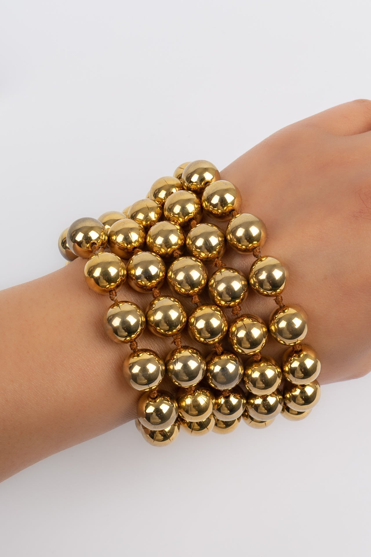 Note: Our Items are totally New High quality Brand Inspired Refurbished. Please make sure you are well aware of it before buying any of the Item. T&C's Apply in case of refunds.Please send us message on below chat to confirm availability. We will send the Refurbished Model in case you place an order with us. Enjoy Shopping.Always Send Us message to confirm availability before buying, In case of refund the transaction fee remains non refundable.�Thank�you. Bracelet souple compos� de cinq rang�es de perles dor�es. Collection 2cc8. A signaler, une partie des perles dor�es sont patin�es.