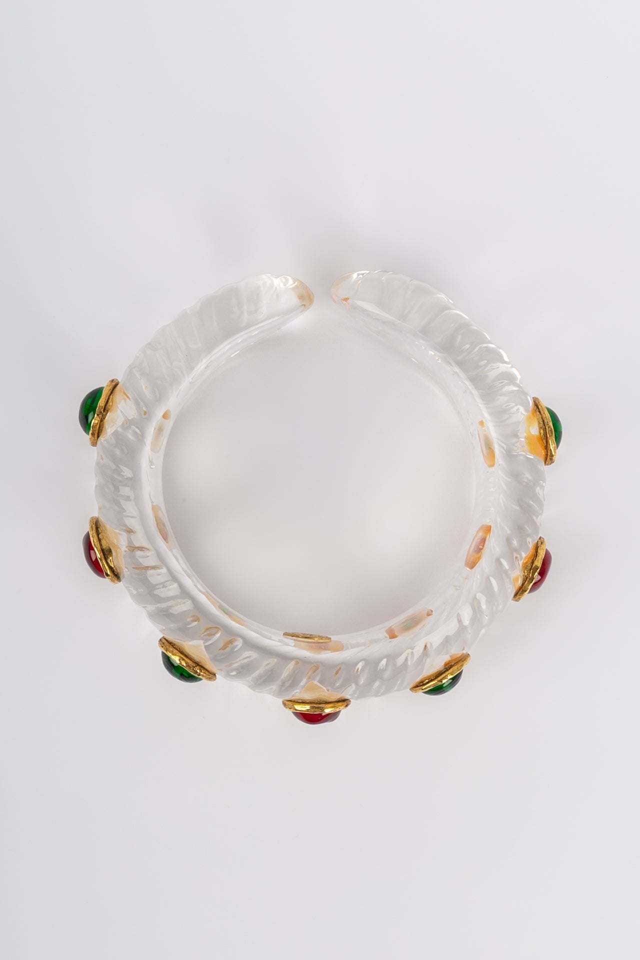 Note: Our Items are totally New High quality Brand Inspired Refurbished. Please make sure you are well aware of it before buying any of the Item. T&C's Apply in case of refunds.Please send us message on below chat to confirm availability. We will send the Refurbished Model in case you place an order with us. Enjoy Shopping.Always Send Us message to confirm availability before buying, In case of refund the transaction fee remains non refundable.�Thank�you. Bracelet rigide en lucite orn� de cabochons en p�te de verre de couleur.