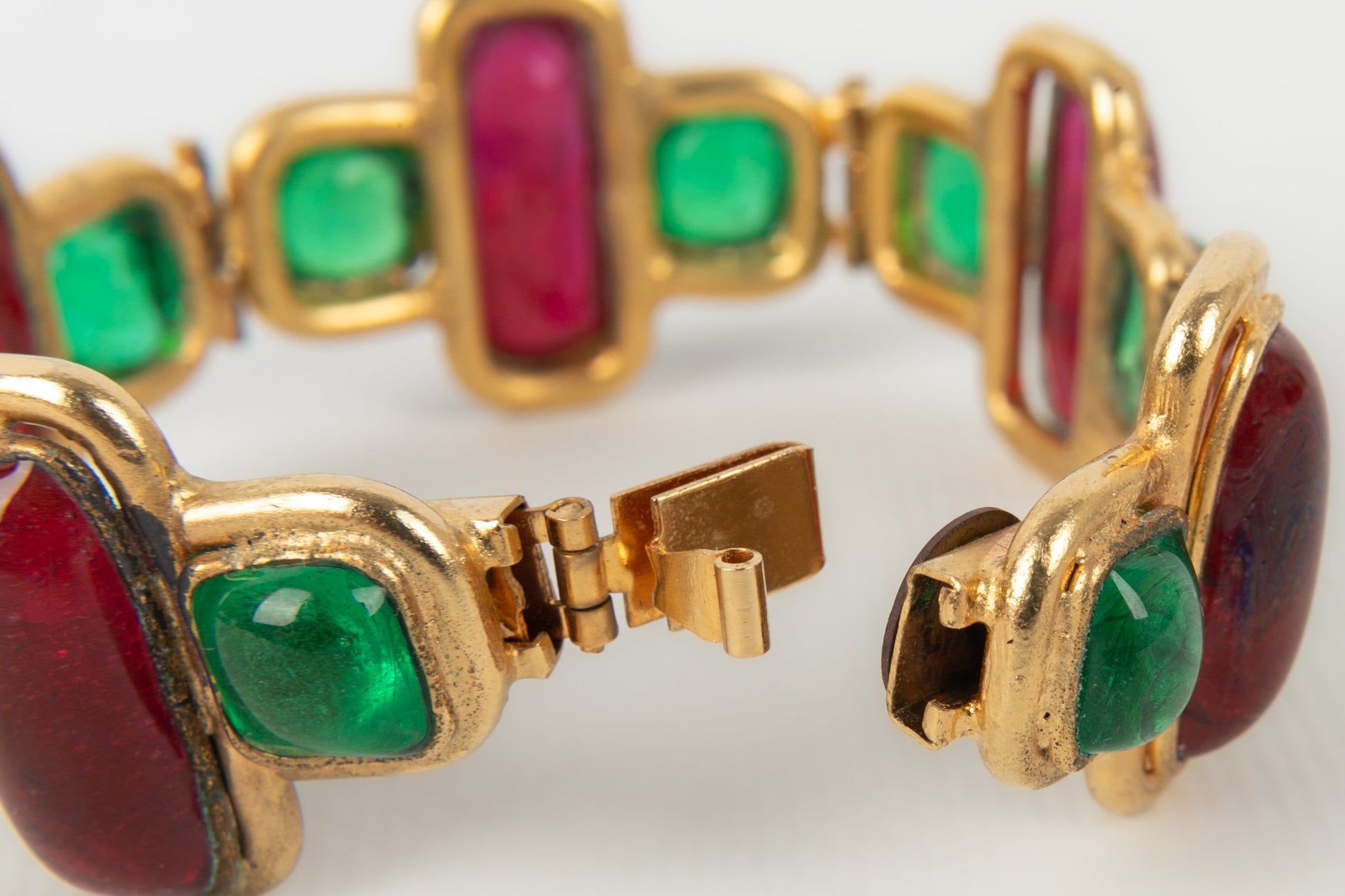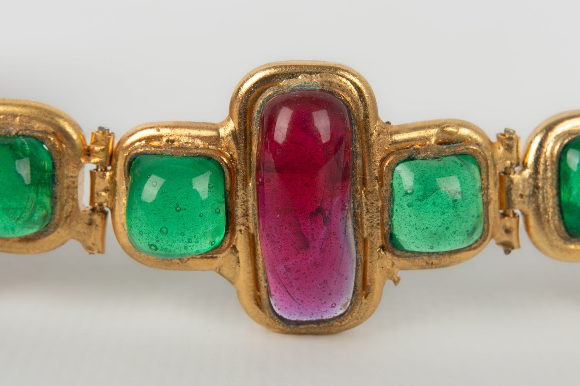 CHANEL - Bracelet en métal doré et pâte de verre. Travail de l'atelier Gripoix pour la maison Chanel.