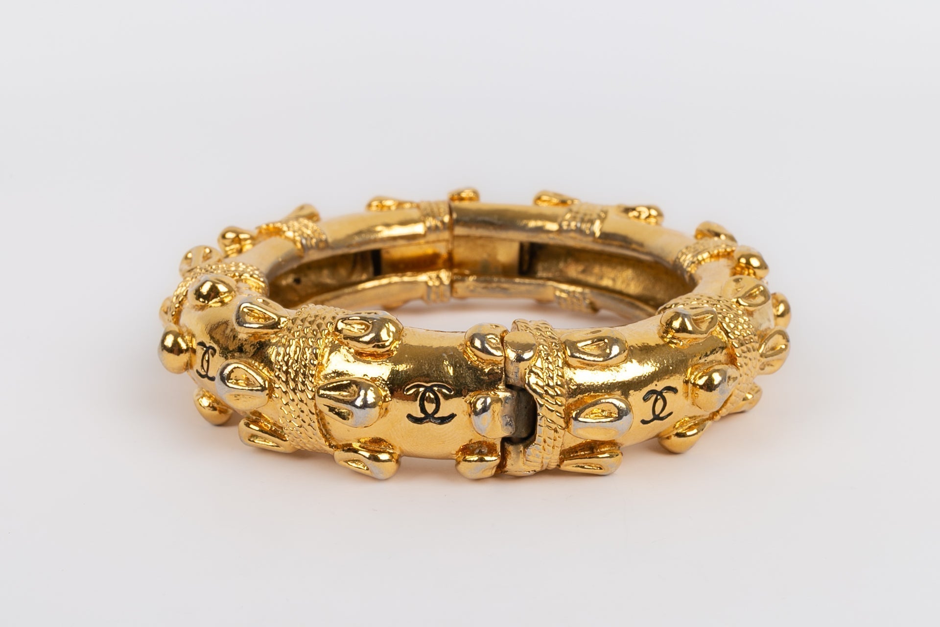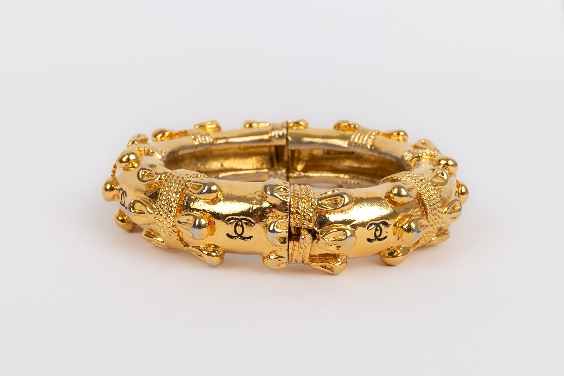 CHANEL - Bracelet jonc en m�tal dor�. A signaler, le m�tal dor� est par endroit patin�.