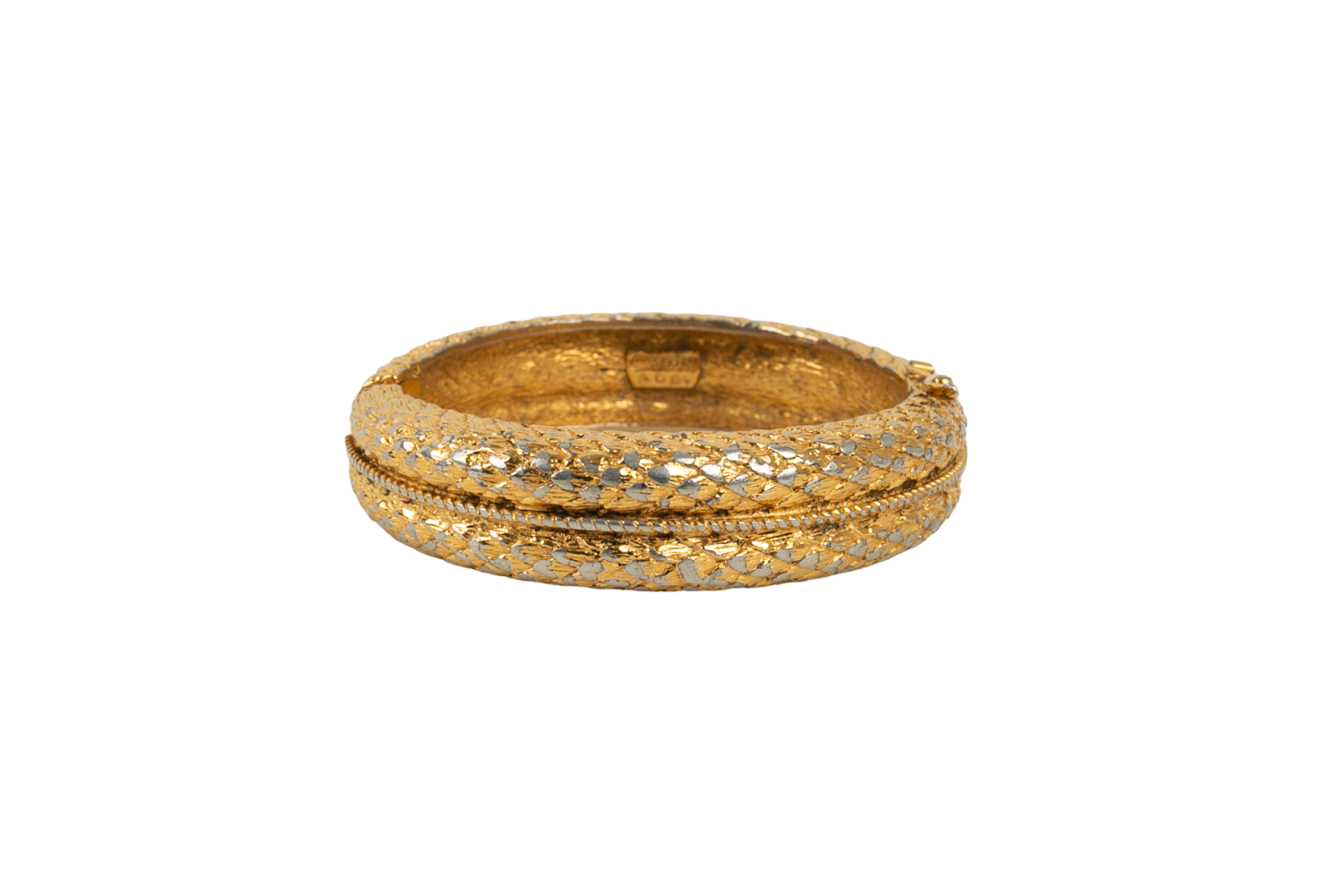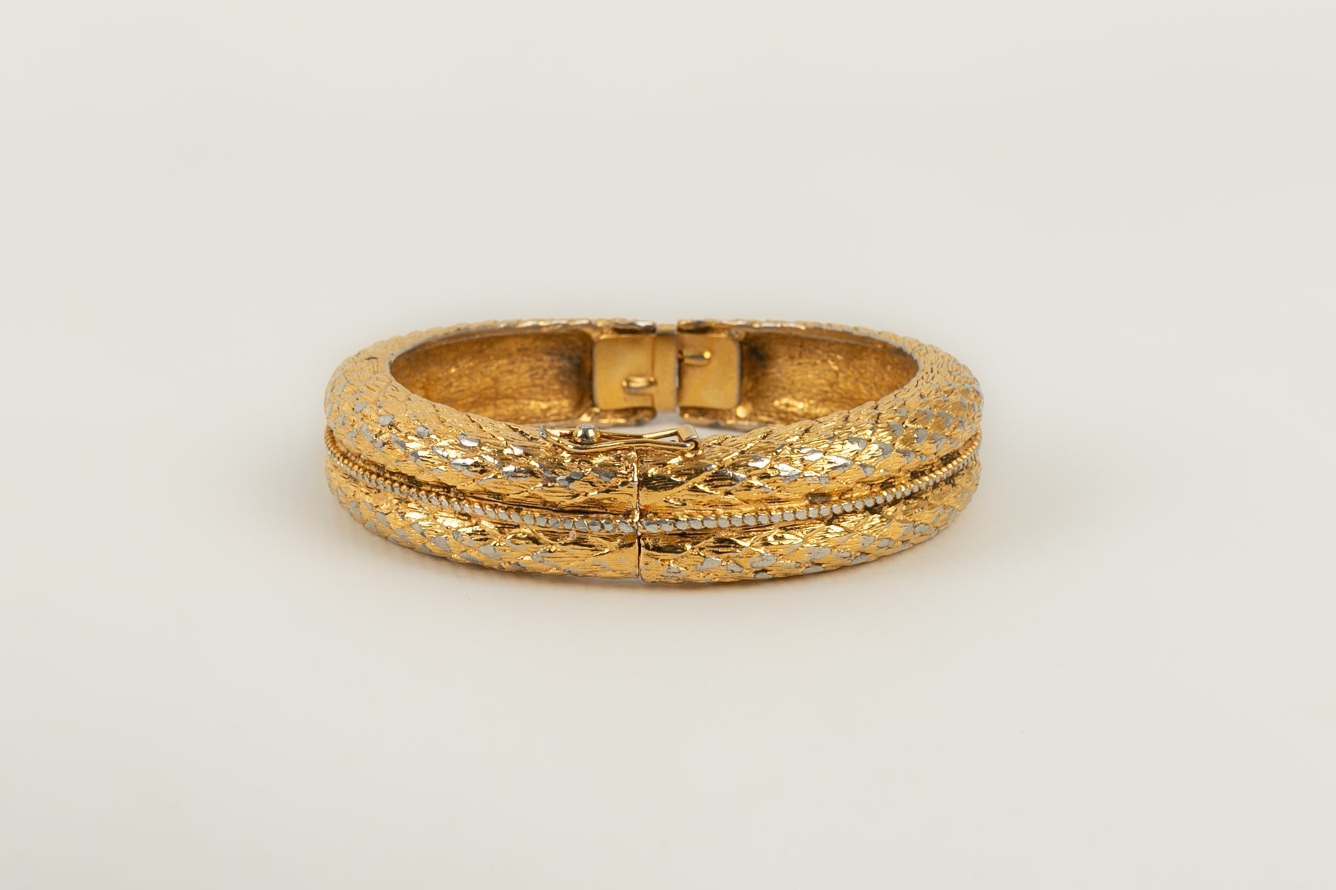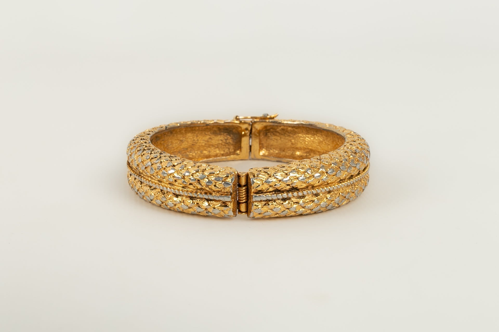 CHANEL - Bracelet jonc en m�tal dor�. Bijou datant des ann�es 1980.