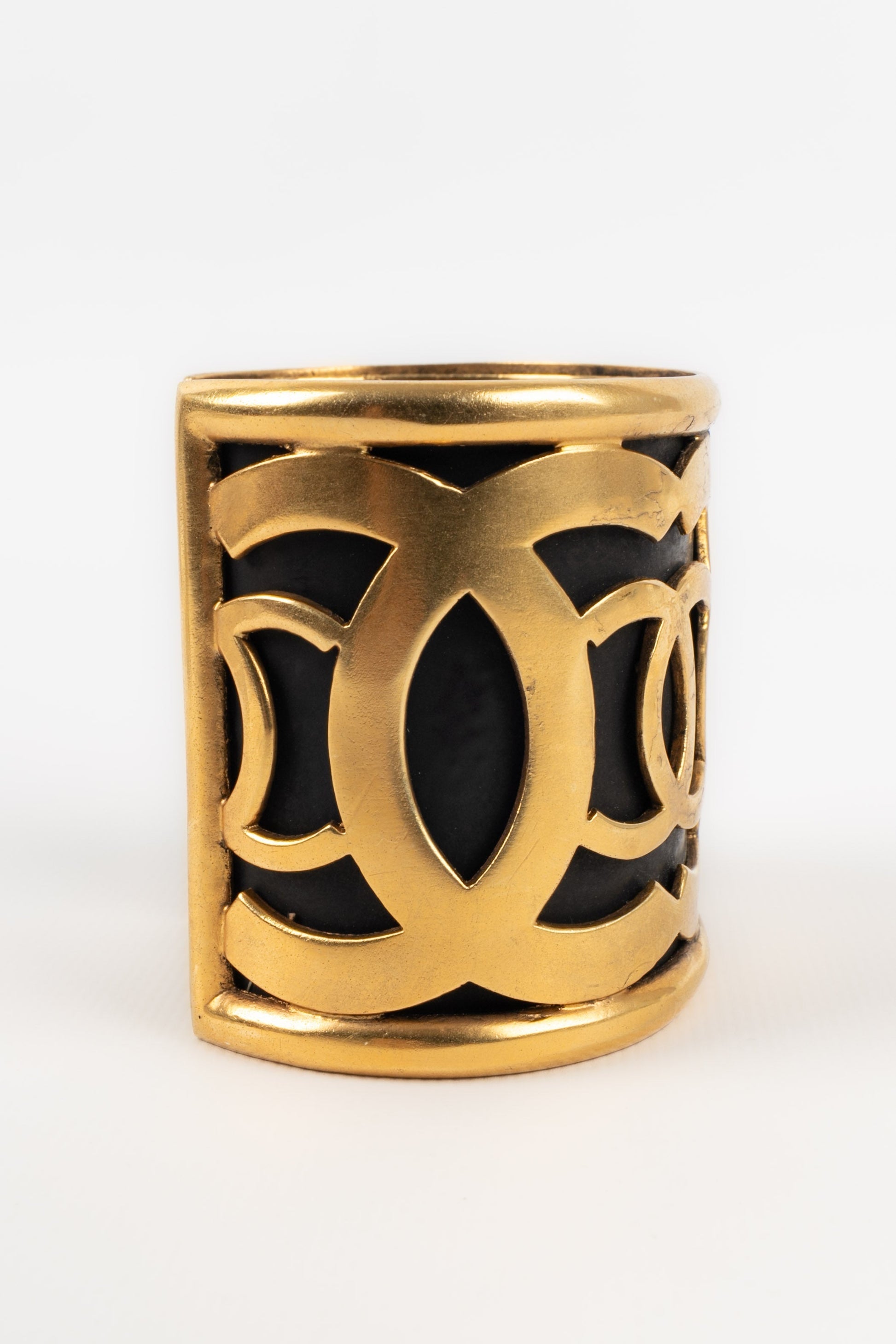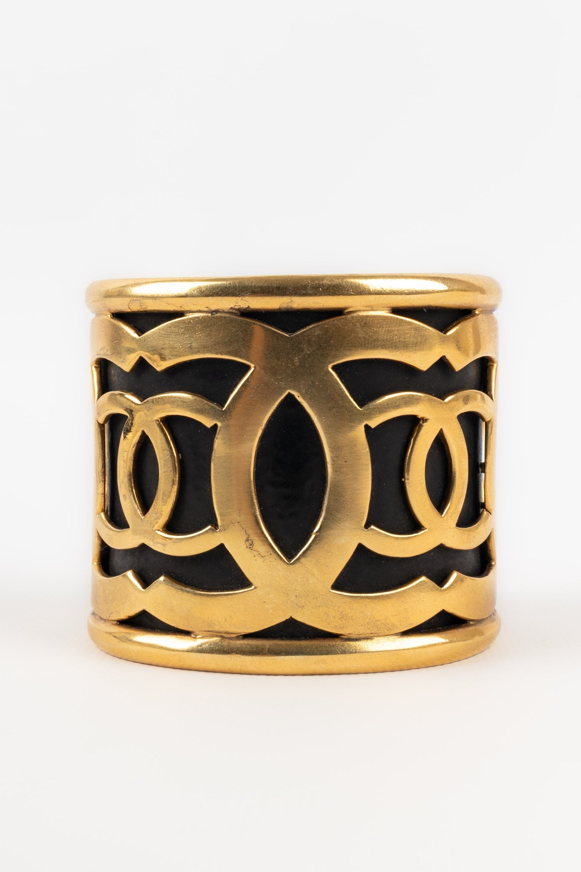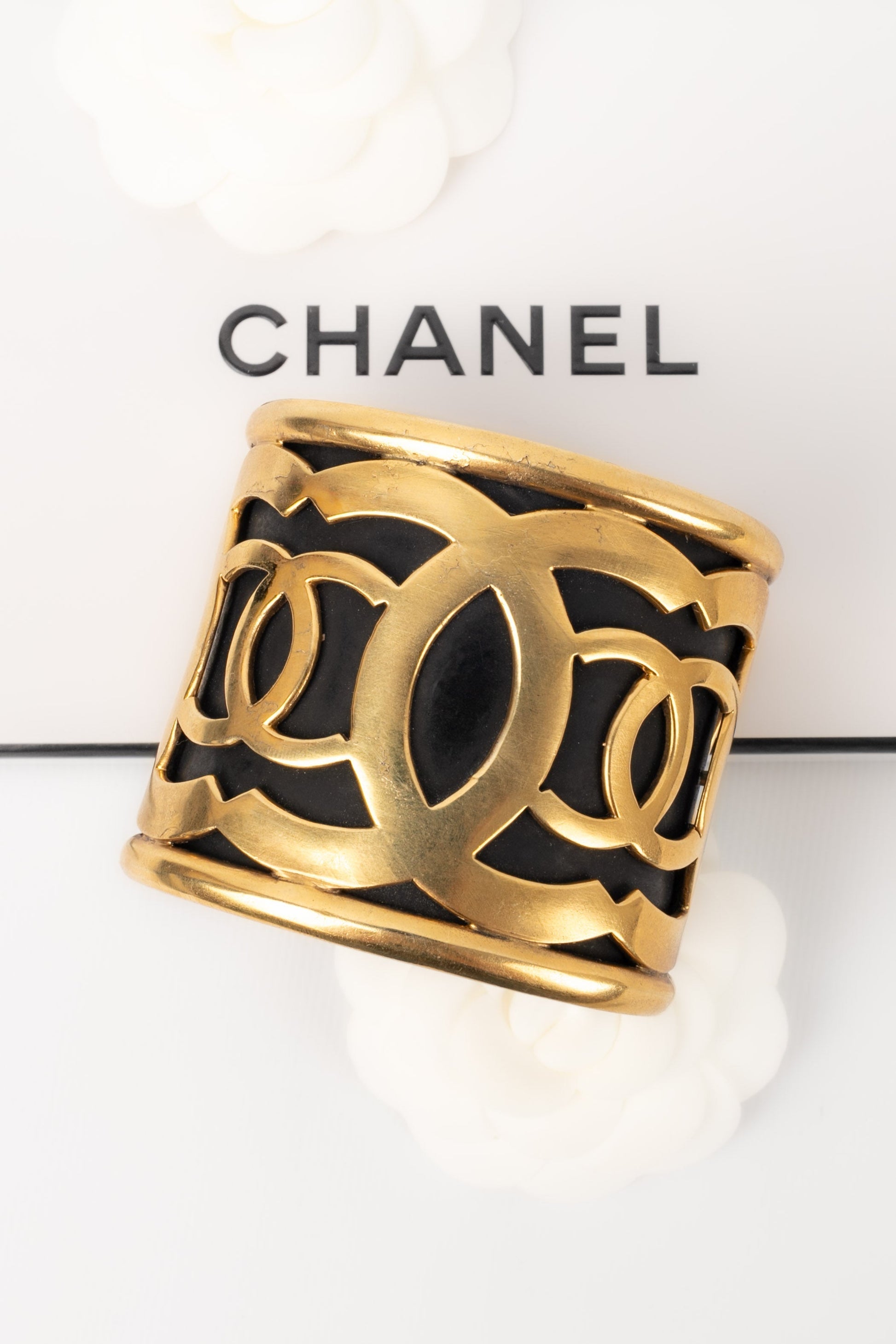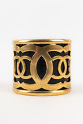 CHANEL - Manchette en m�tal dor� sur fond noir.