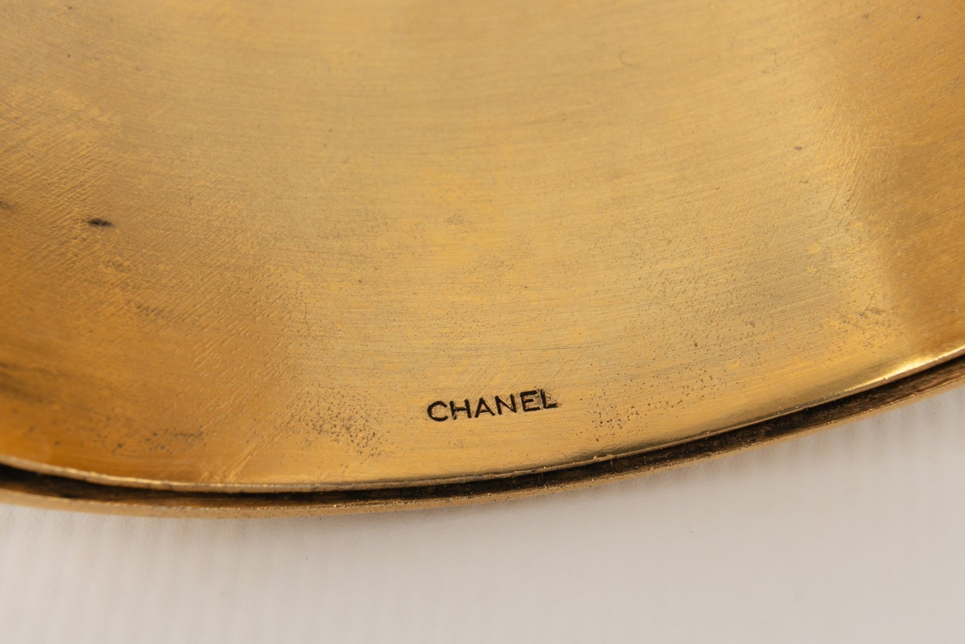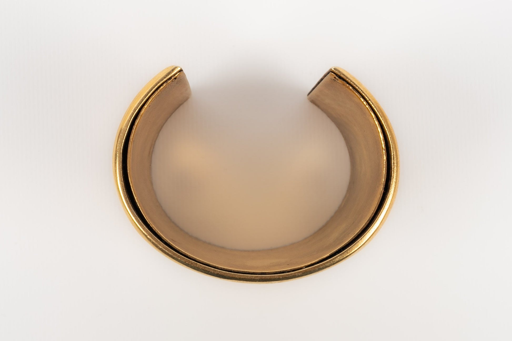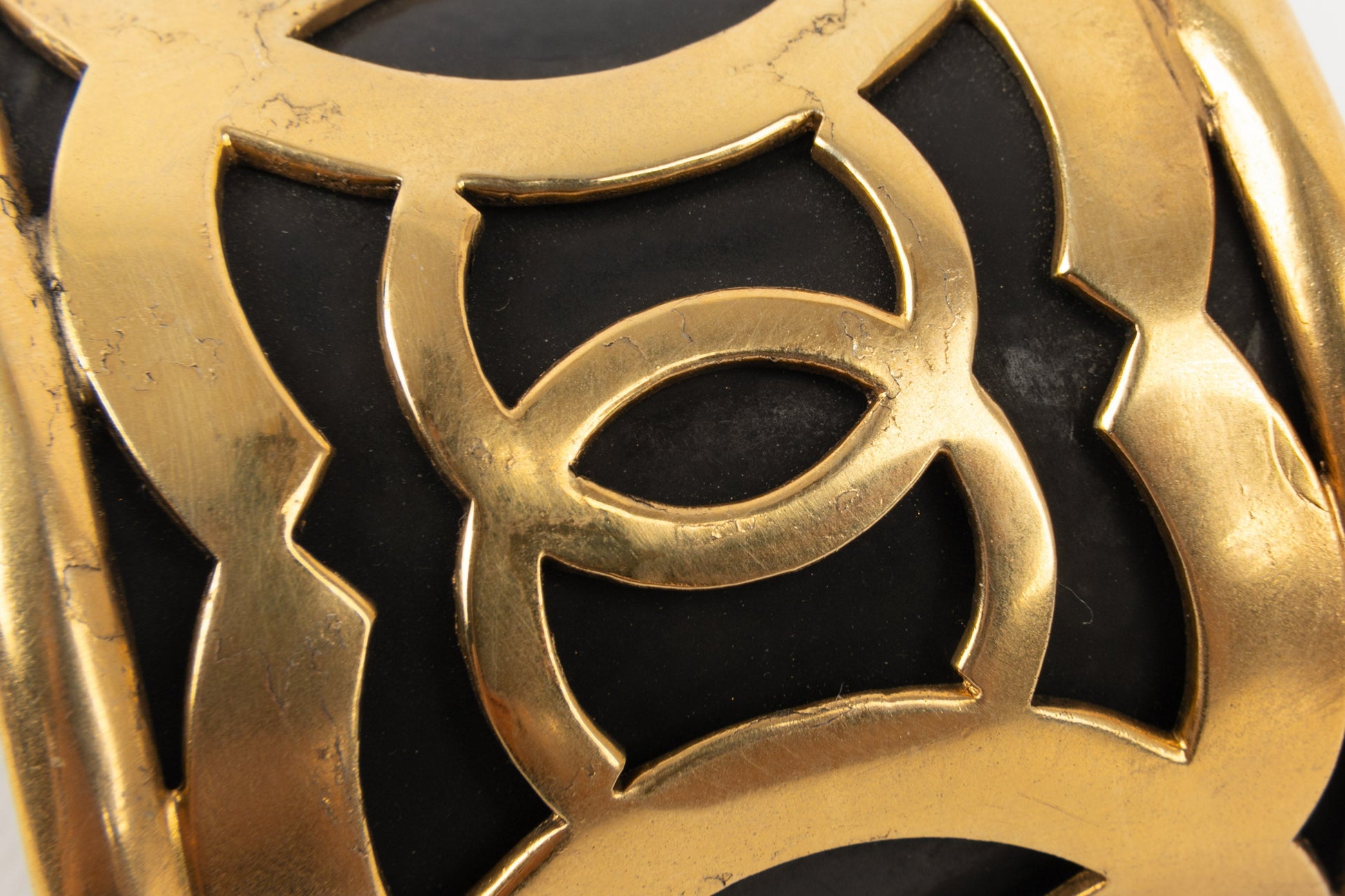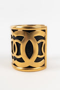 CHANEL - Manchette en m�tal dor� sur fond noir.
