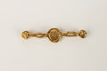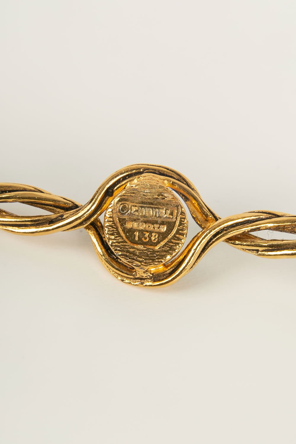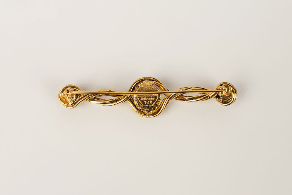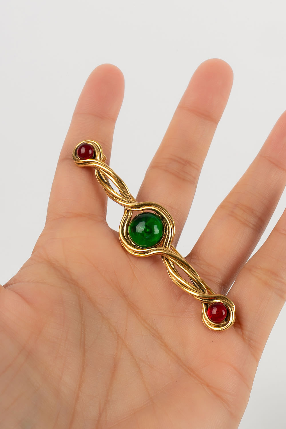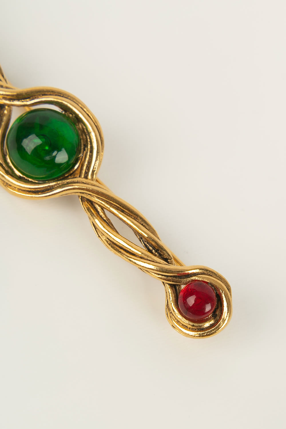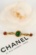CHANEL -Broche en m�tal dor� et cabochons en p�te de verre.