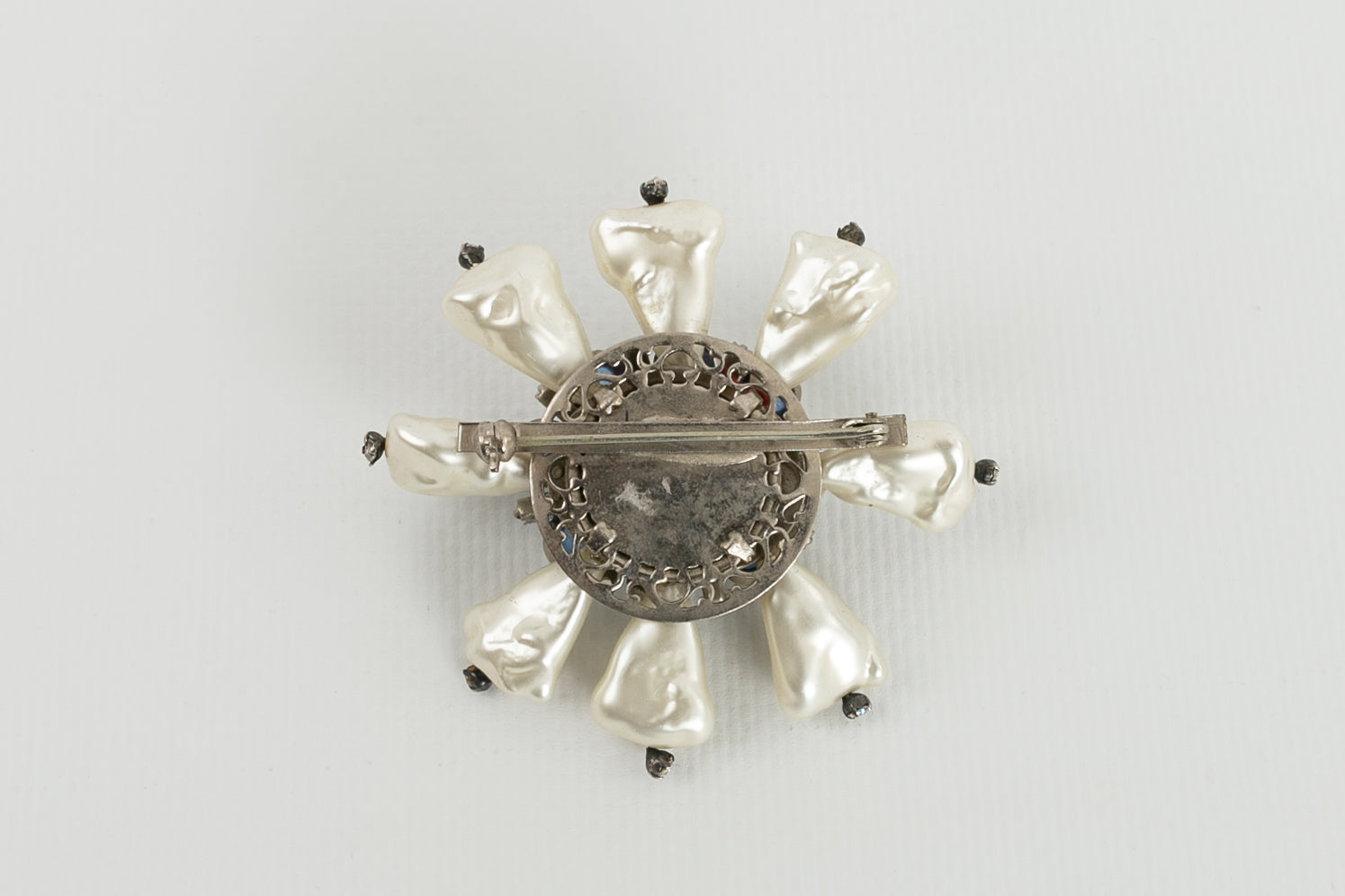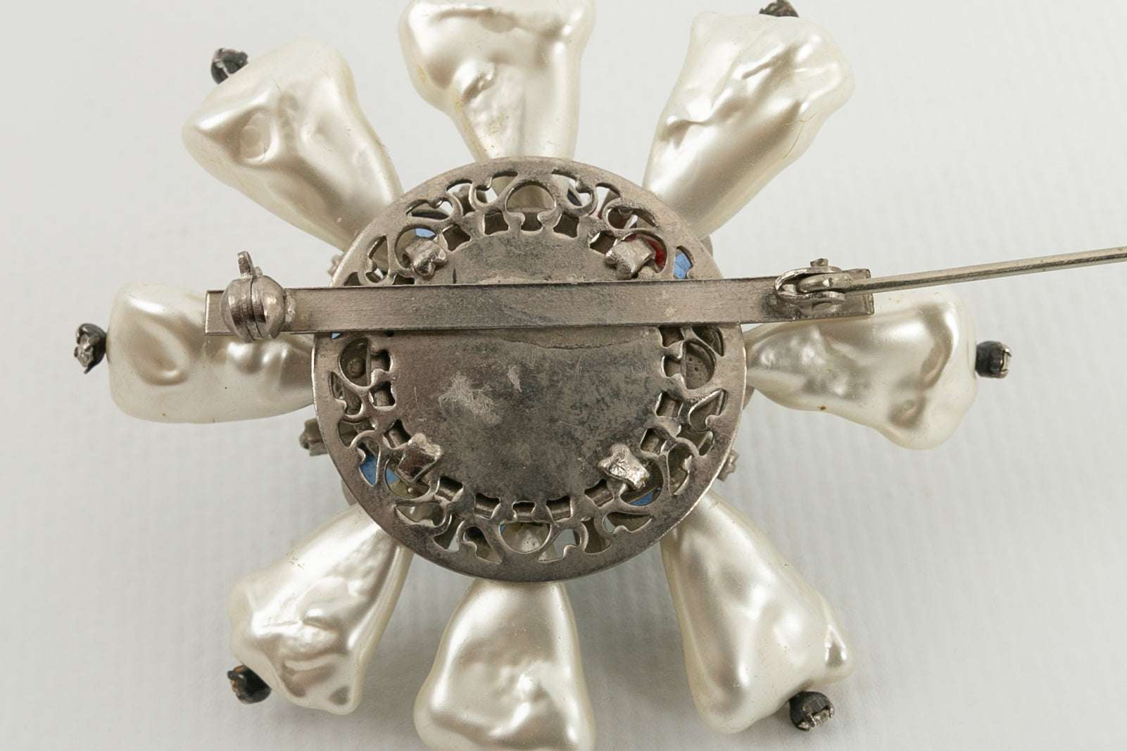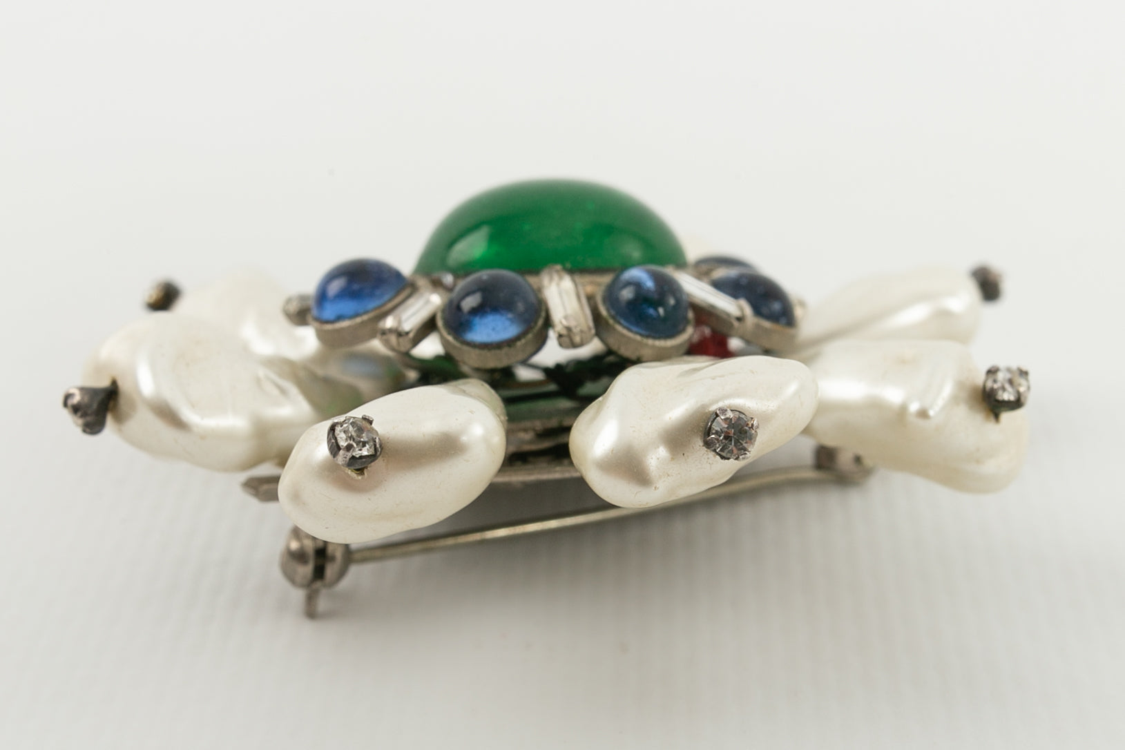 CHANEL (Non sign�) Broche en m�tal argent� et p�te de verre, d�cor�e de perles nacr�es.�Travail des ateliers Gripoix pour la Maison Chanel.