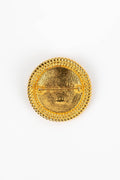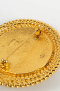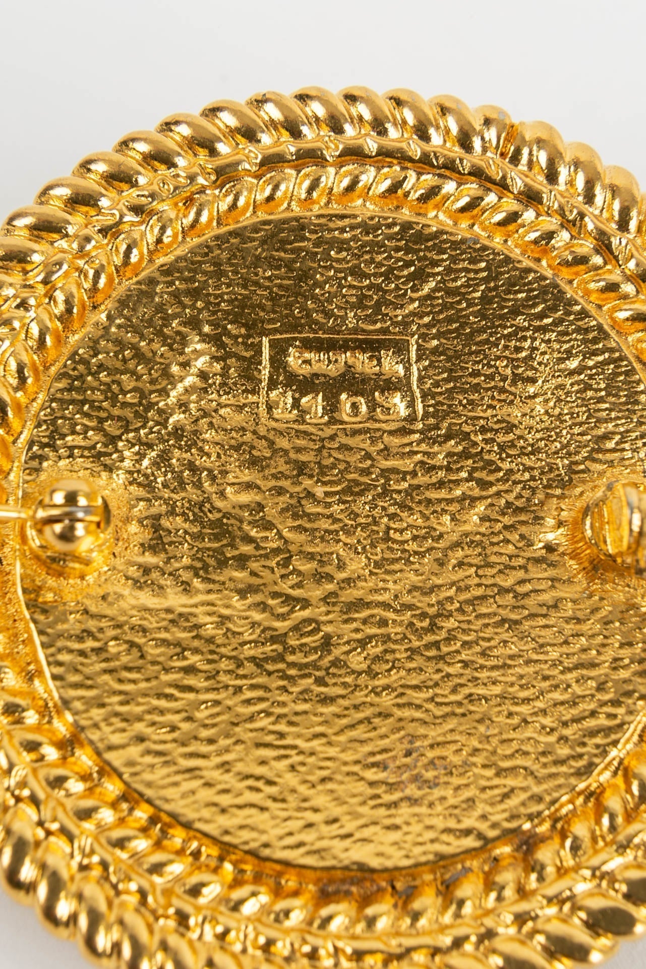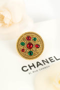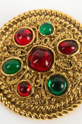CHANEL - Broche en m�tal dor� et p�te de verre color�e.