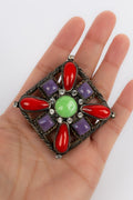 Note: Our Items are totally New High quality Brand Inspired Refurbished. Please make sure you are well aware of it before buying any of the Item. T&C's Apply in case of refunds.Please send us message on below chat to confirm availability. We will send the Refurbished Model in case you place an order with us. Enjoy Shopping.Always Send Us message to confirm availability before buying, In case of refund the transaction fee remains non refundable.�Thank�you. Broche pendentif en m�tal argent� fonc� et p�te de verre multicolore. Collection Printemps/Et� 1996.