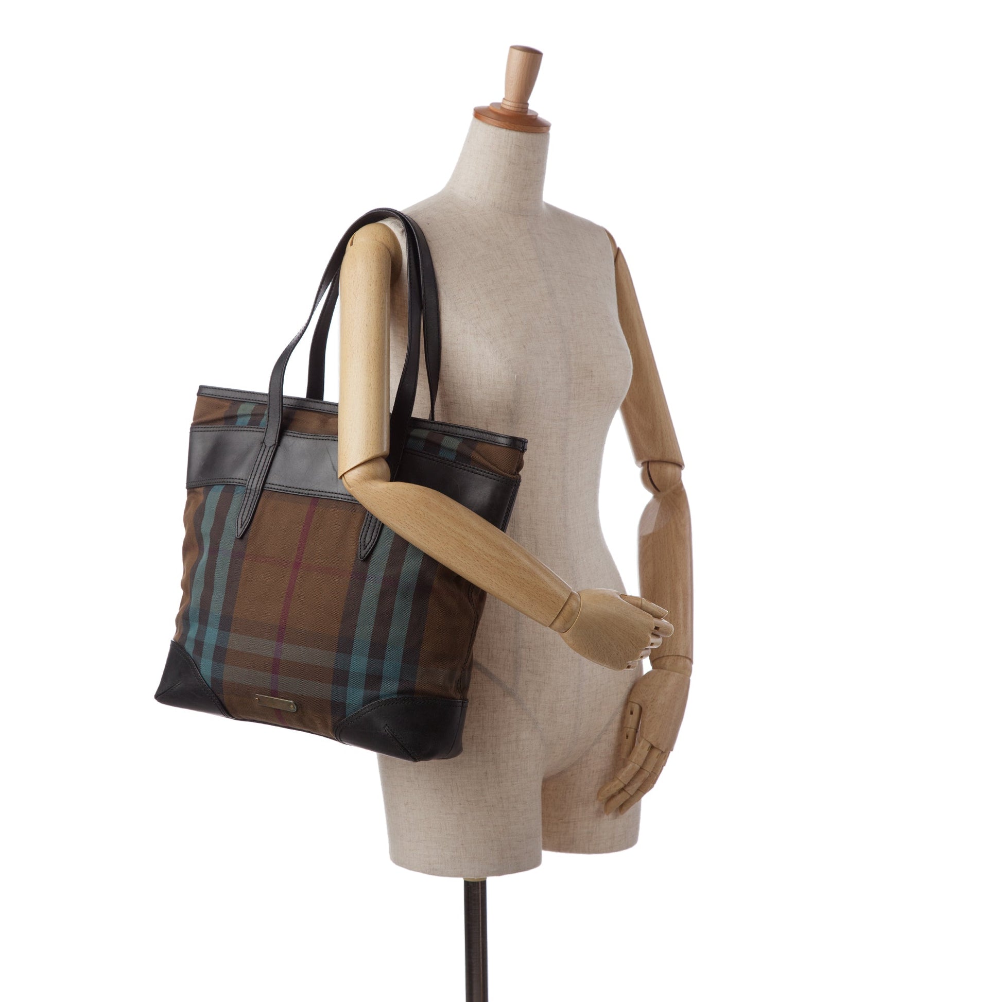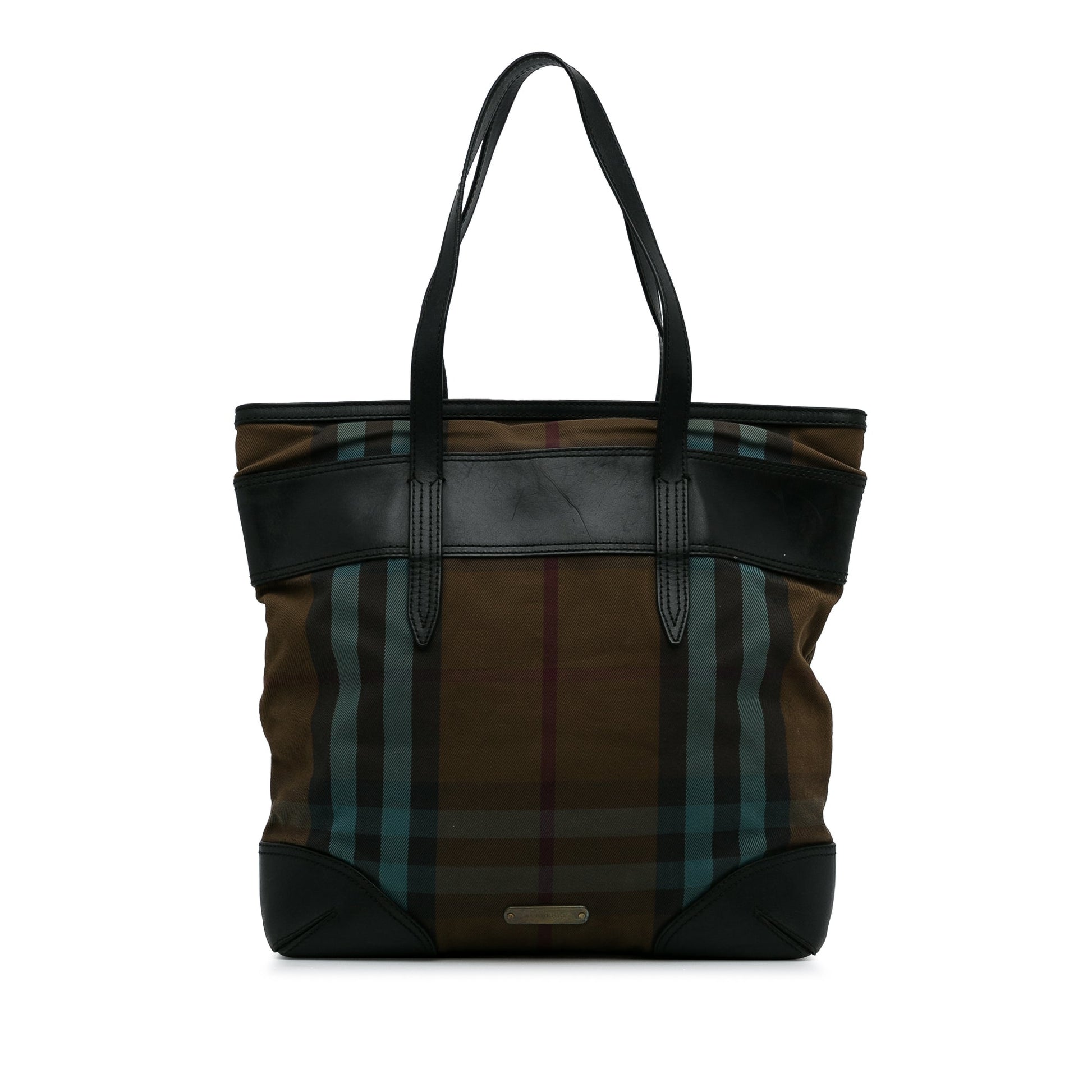 Brown Burberry Plaid Canvas Tote Bag