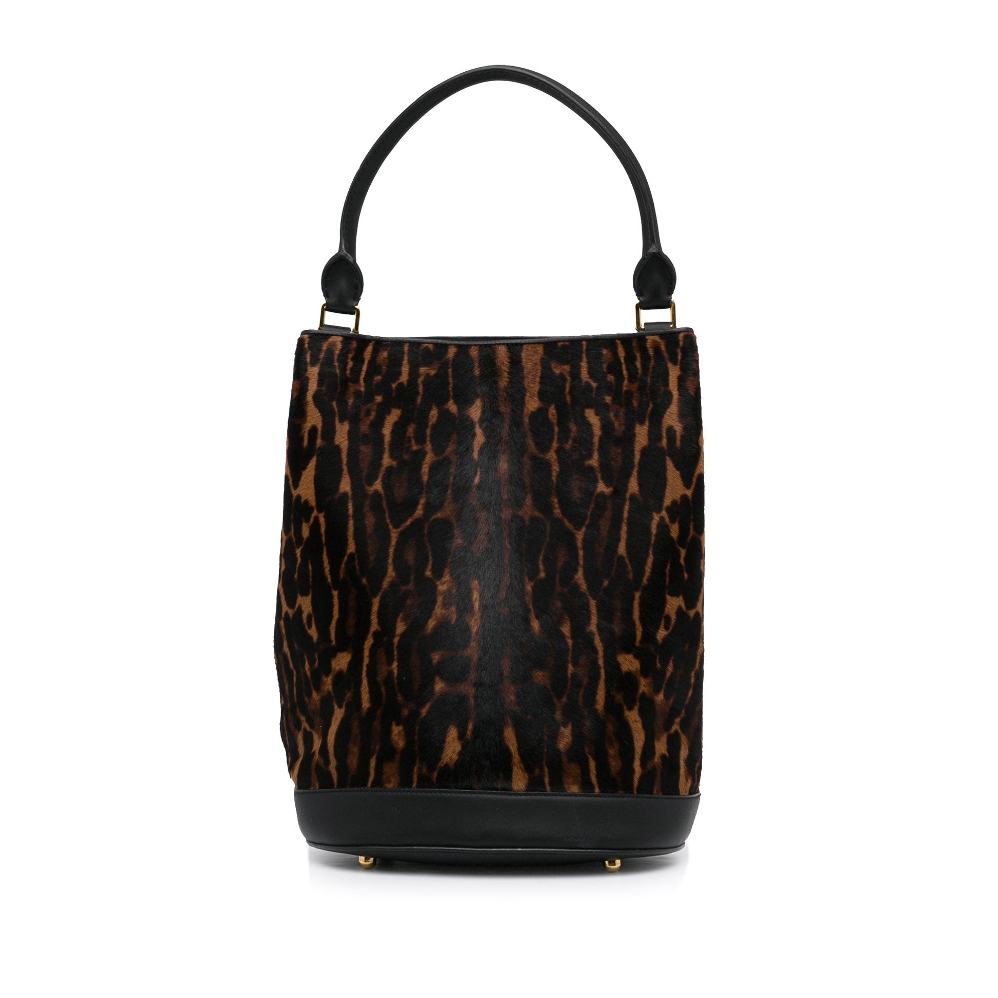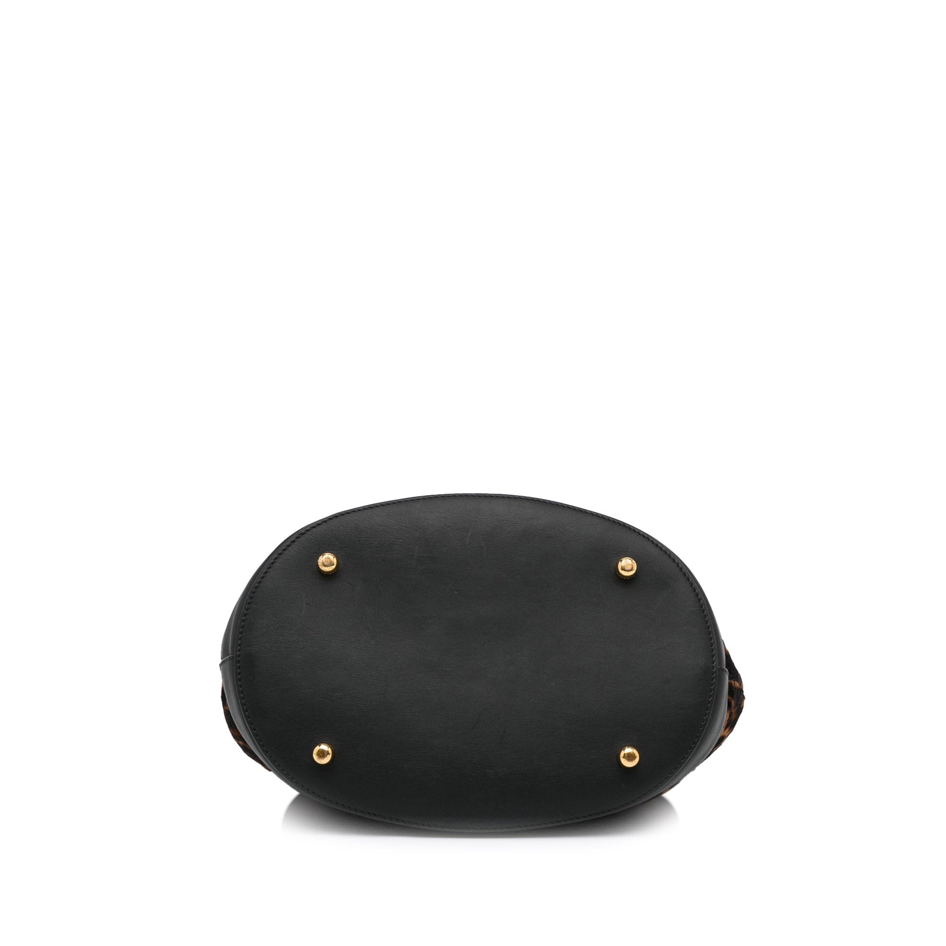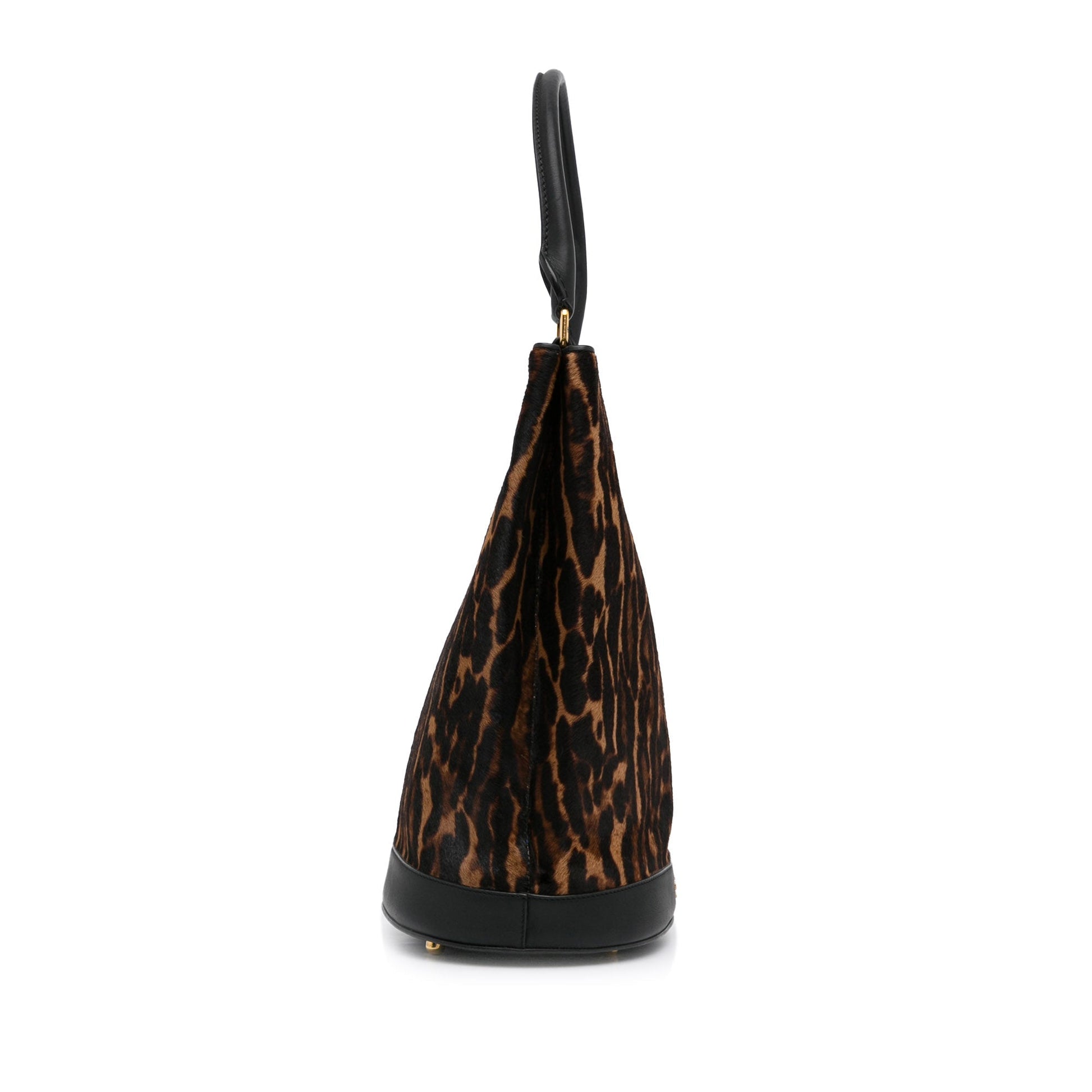 Product Details: Brown Burberry Pony Hair Tote Bag. This tote bag features a printed pony hair body, rolled leather handle, an open top with magnetic closure, and interior slip pocket. 10.2" L x 14.2" W x 7.5" D. Serial number ITGF&10SCA.