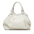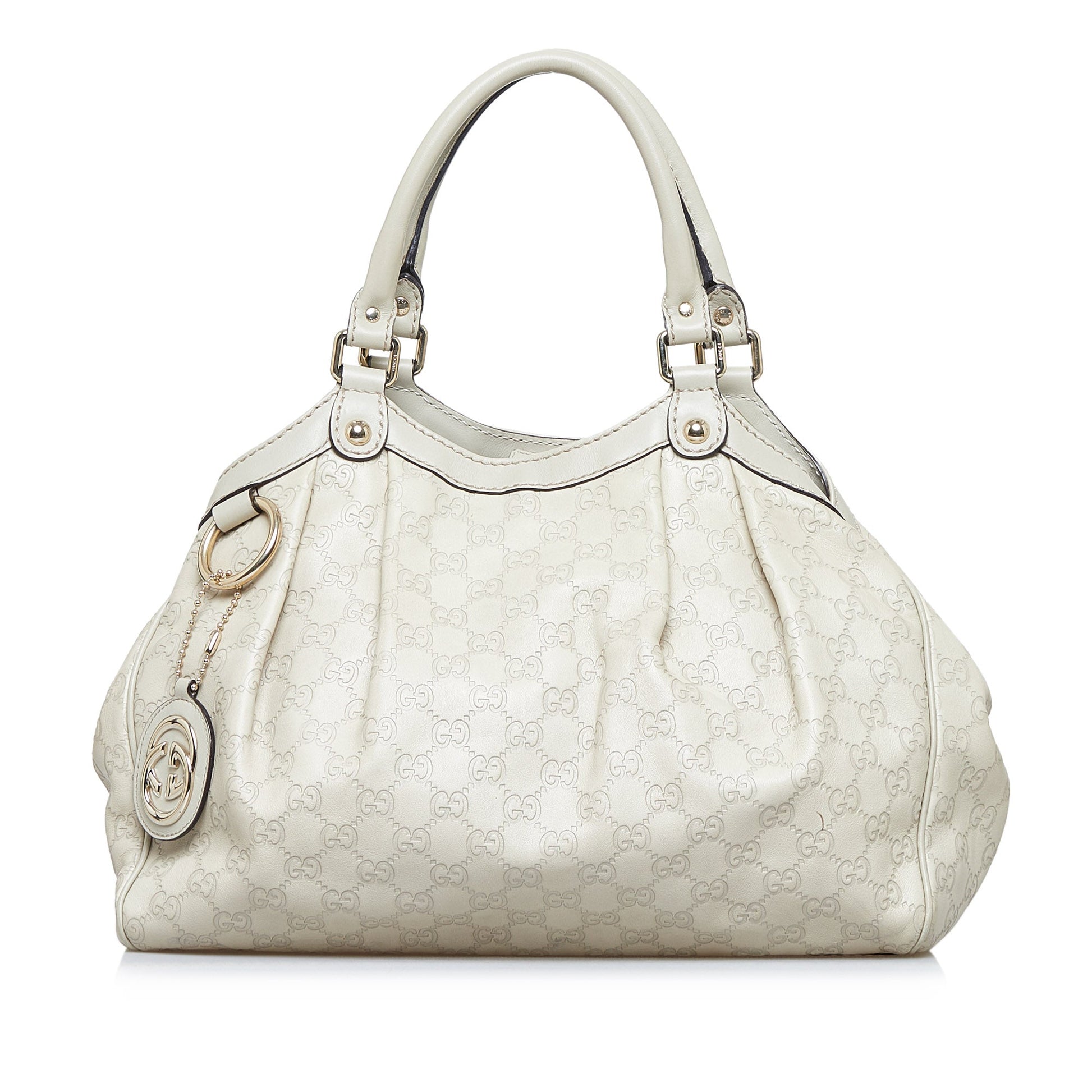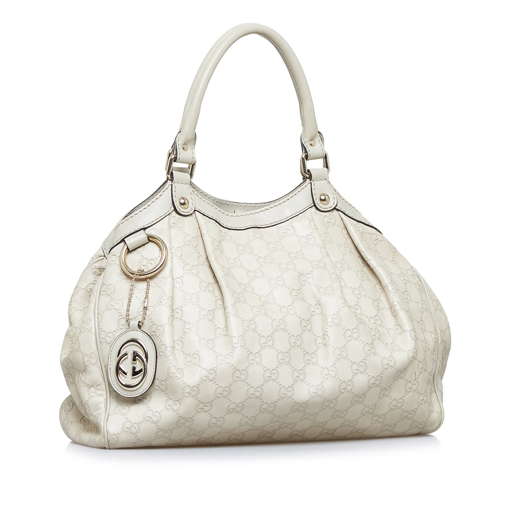 Product Details: Brown Gucci Guccissima Sukey Tote. The Sukey tote bag features a leather body, rolled handles, an open top with magnetic closure, and an interior zip pocket. 11.6" L x 13.4" W x 4.7" D, 6.3" drop. Serial number 211944.