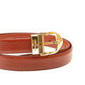 Product Details: Brown Louis Vuitton Epi Ceinture Belt. The Ceinture belt features an epi leather body with gold-tone hardware and a metal buckle closure. 41.3" L x 0.9" W x 0" D. Serial number CT1906.
