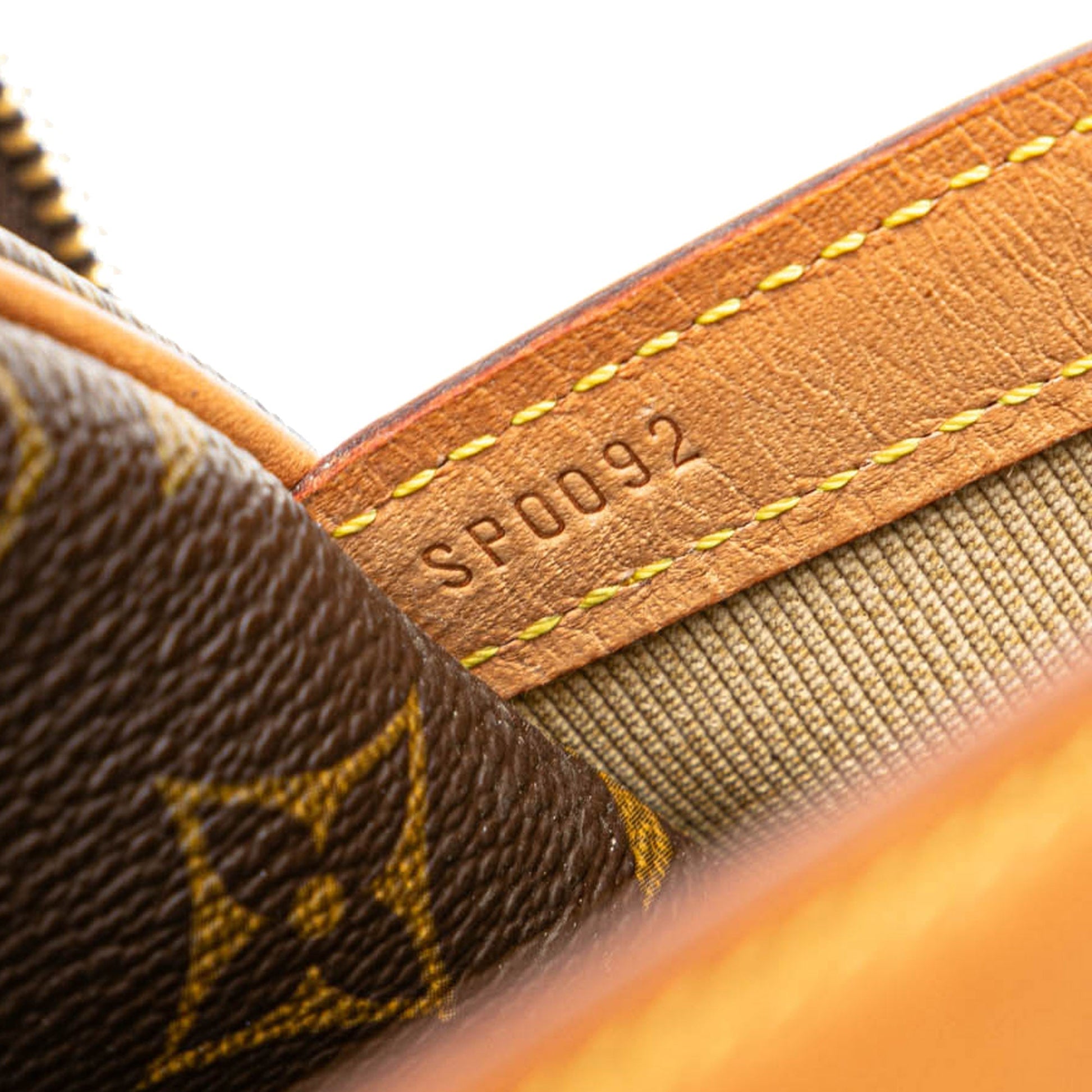 Product Details: Brown Louis Vuitton Monogram Reporter PM Crossbody Bag. The Reporter PM features a monogram canvas body with vachetta leather trim, an adjustable flat strap, double compartments with top zip closures, an exterior front slip pocket, and an interior slip pocket. 8.7" L x 10.2" W x 5.5" D. Serial number SP0092.