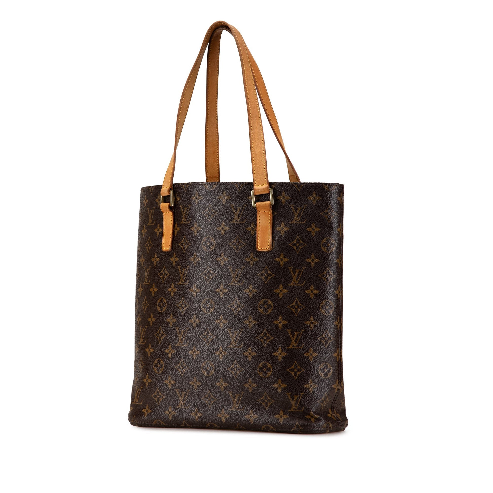 Product Details: Brown Louis Vuitton Monogram Vavin GM Tote Bag. The Vavin GM features a monogram canvas body, flat vachetta leather straps, interior compartments, and an interior zip pocket. 12.2" L x 11.4" W x 4.3" D. Serial number SR0035.