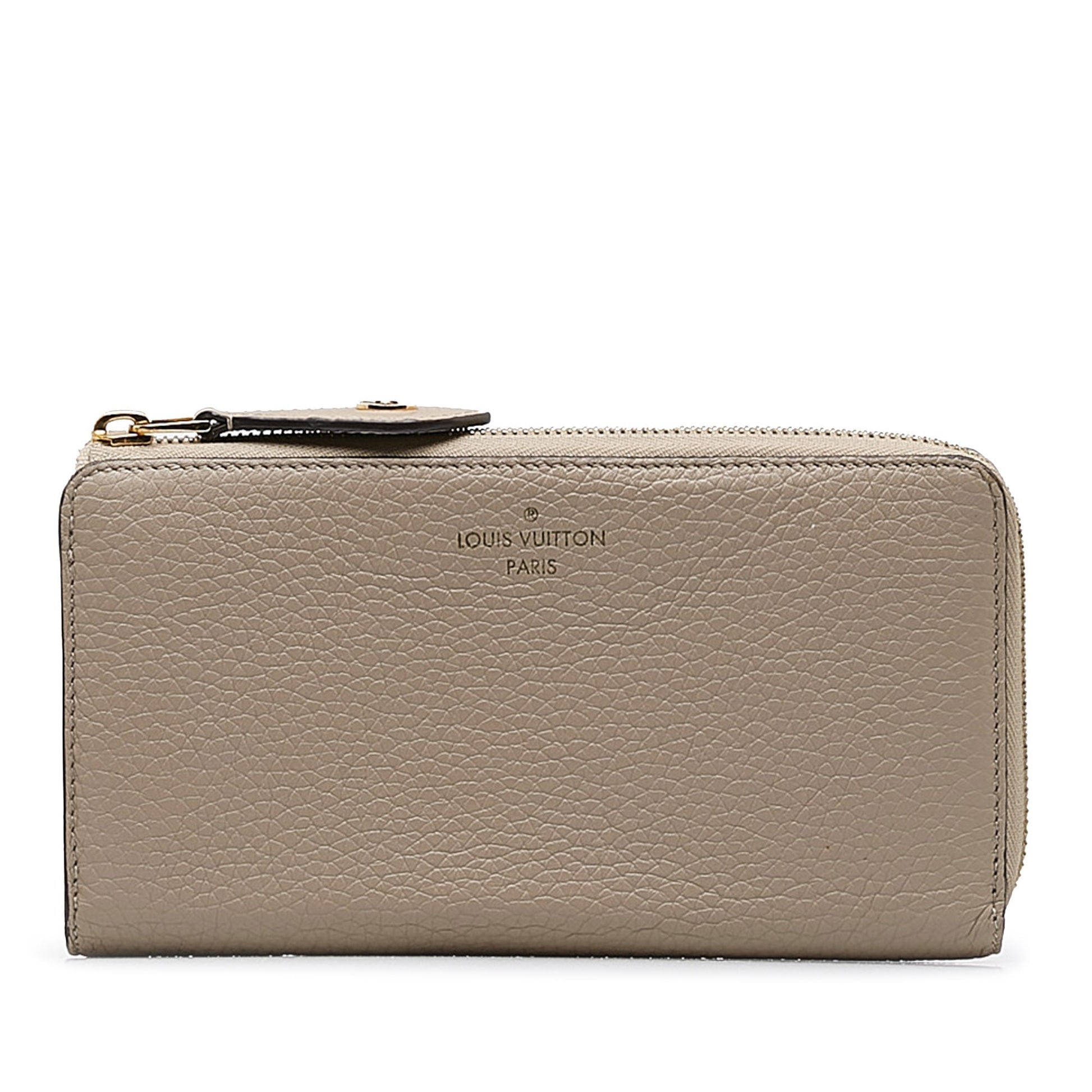 Product Details: Brown Louis Vuitton Taurillon Comete Wallet. This wallet features a leather body, a top zip-around closure, and interior zip and slip compartments. 4.1" L x 7.7" W x 1" D. Serial number MI1159.
