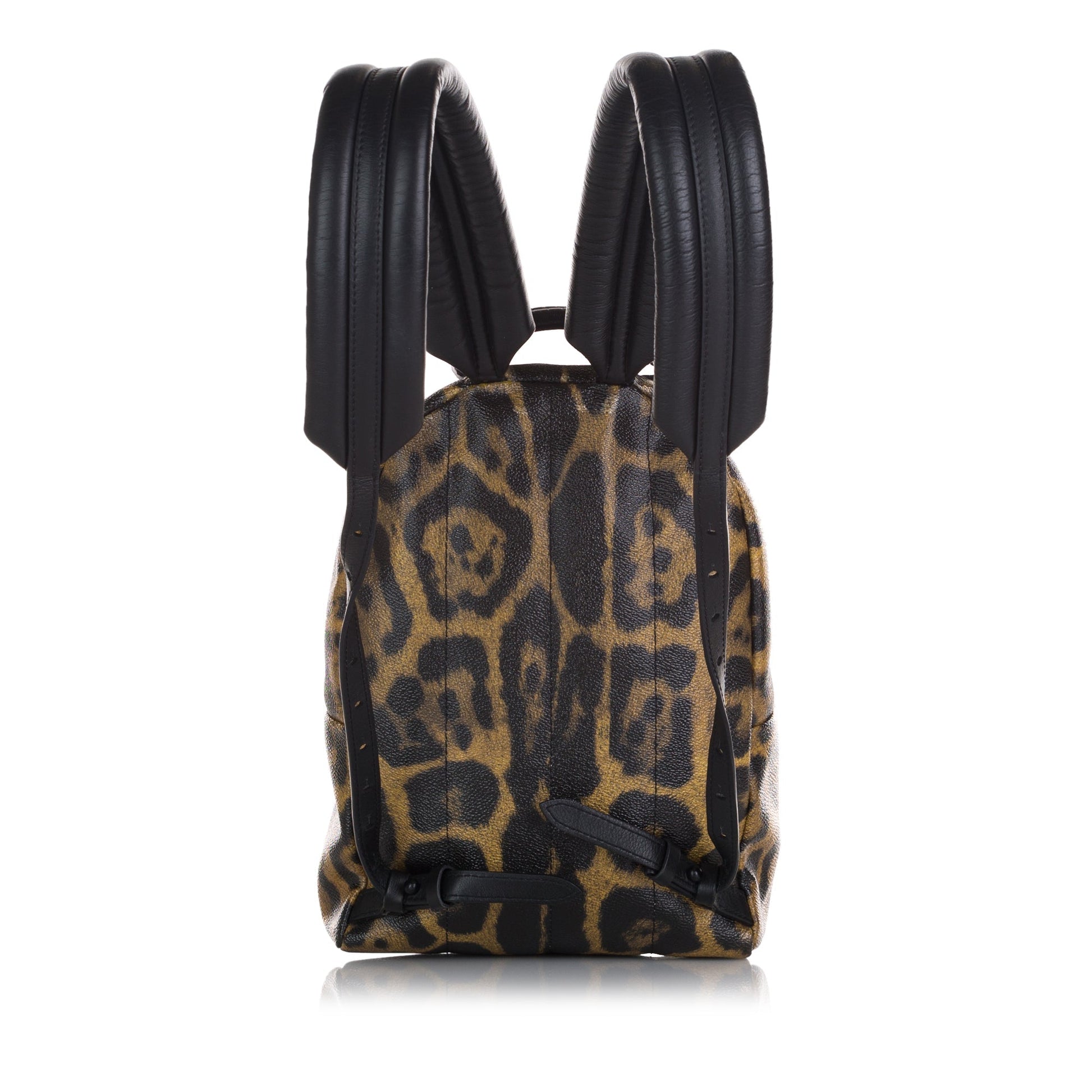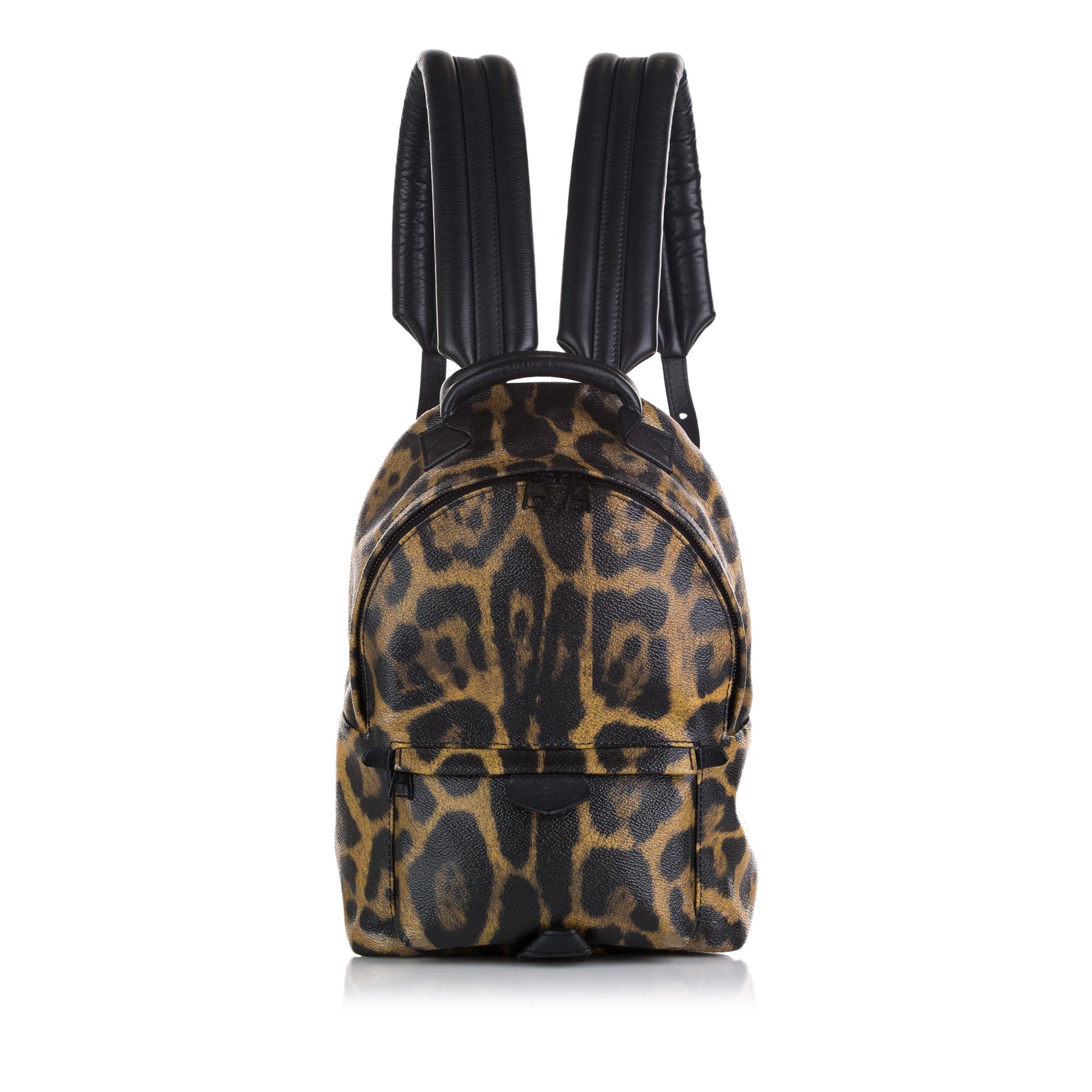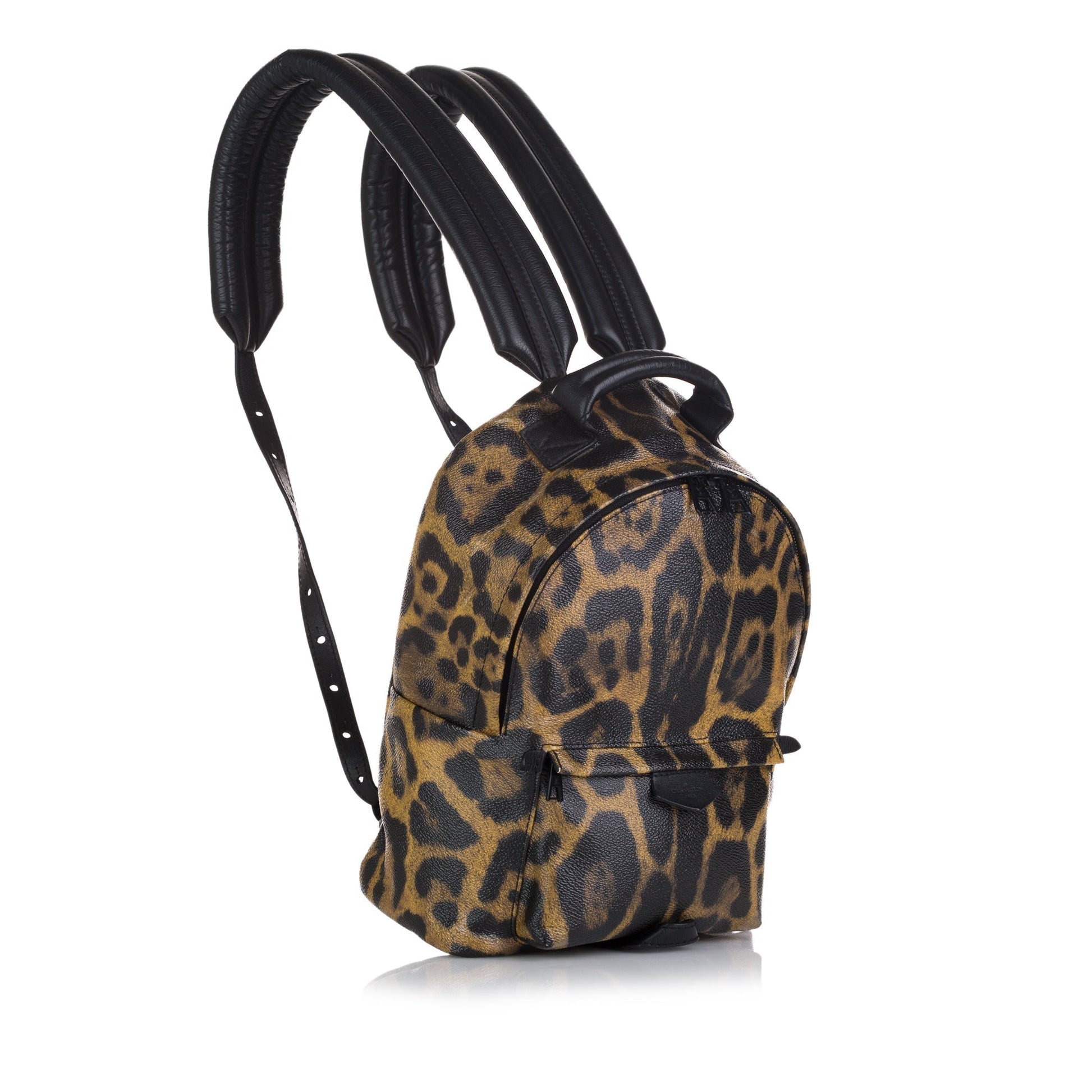 Product Details: Brown Louis Vuitton Wild Animal Palm Springs PM Backpack. The Wild Animal Palm Springs features a printed coated canvas body, a flat top handle, an adjustable flat back straps, a front zip closure, an exterior front zip pocket, and an interior slip pocket. 11.8" L x 8.1" W x 3.1" D, 3.9" drop. Serial number FL2166.
