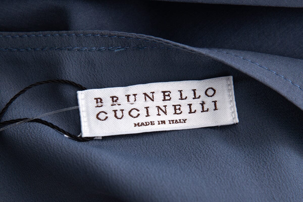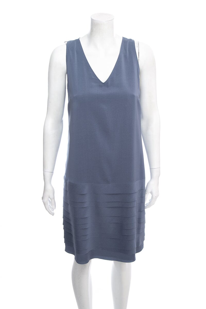 Brunello Cucinelli Grey Silk Sleeveless Dress with Ruffle Bottom SZ M